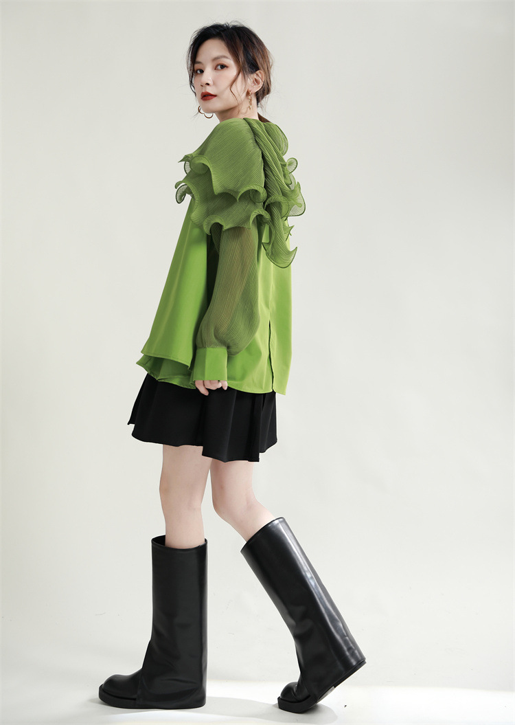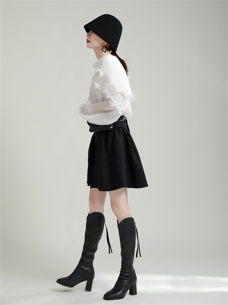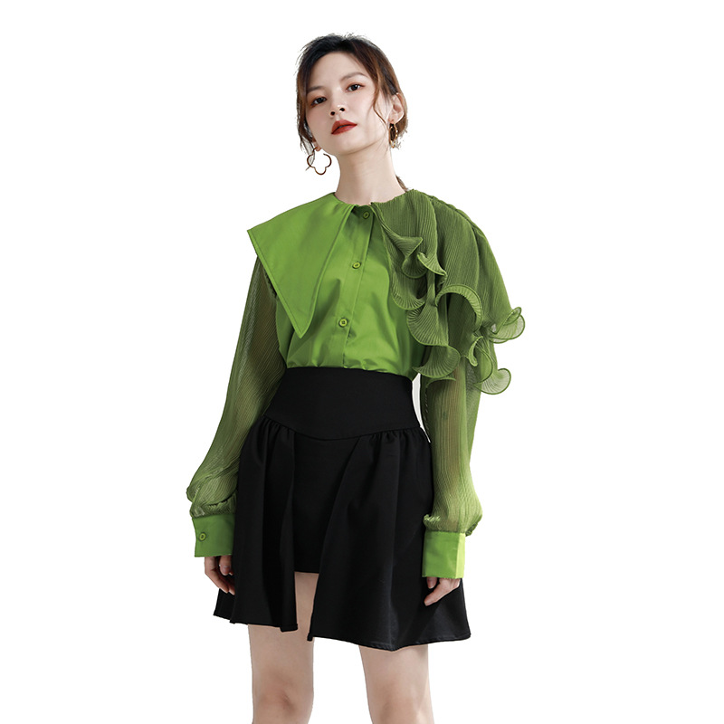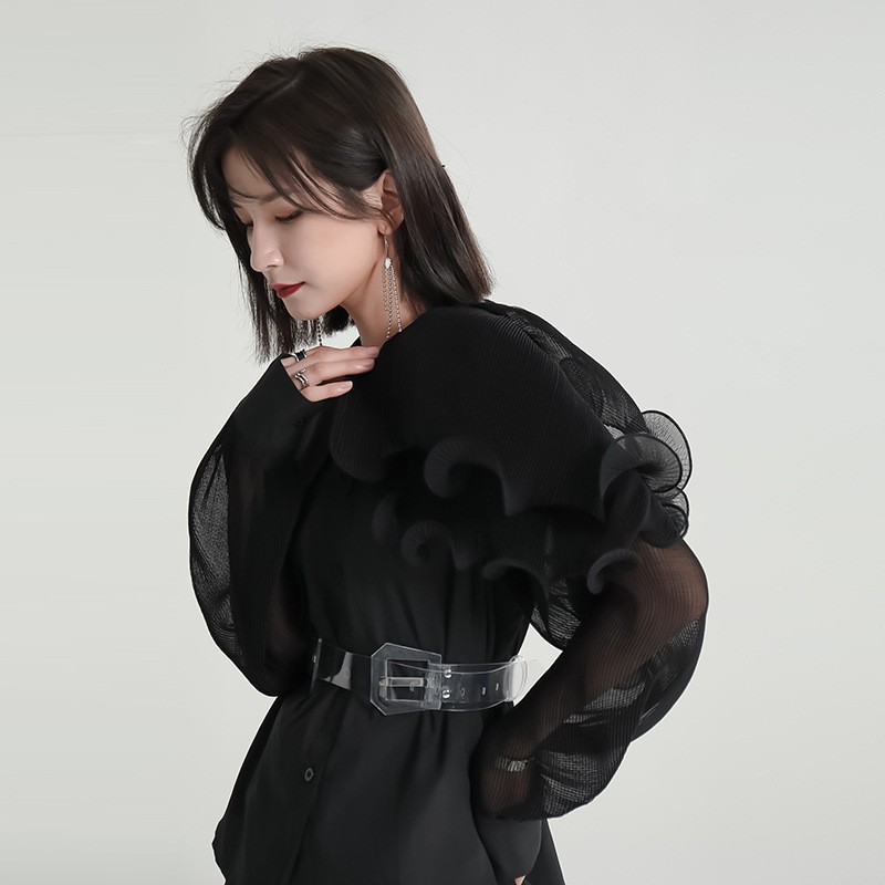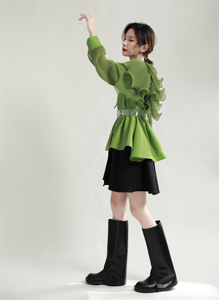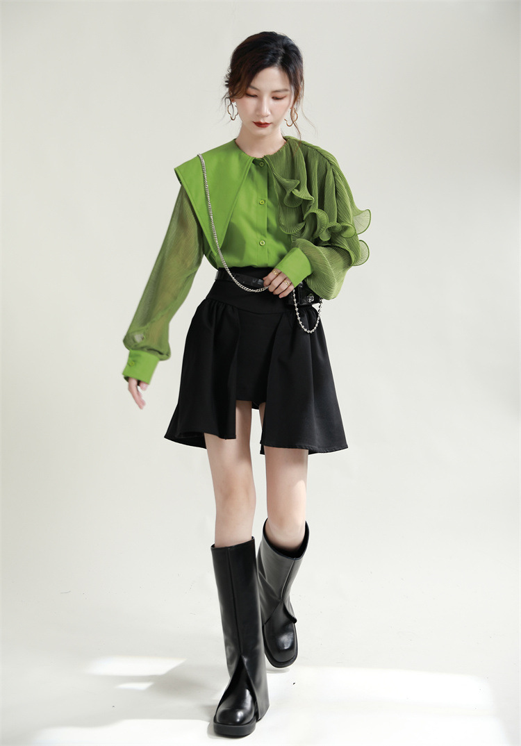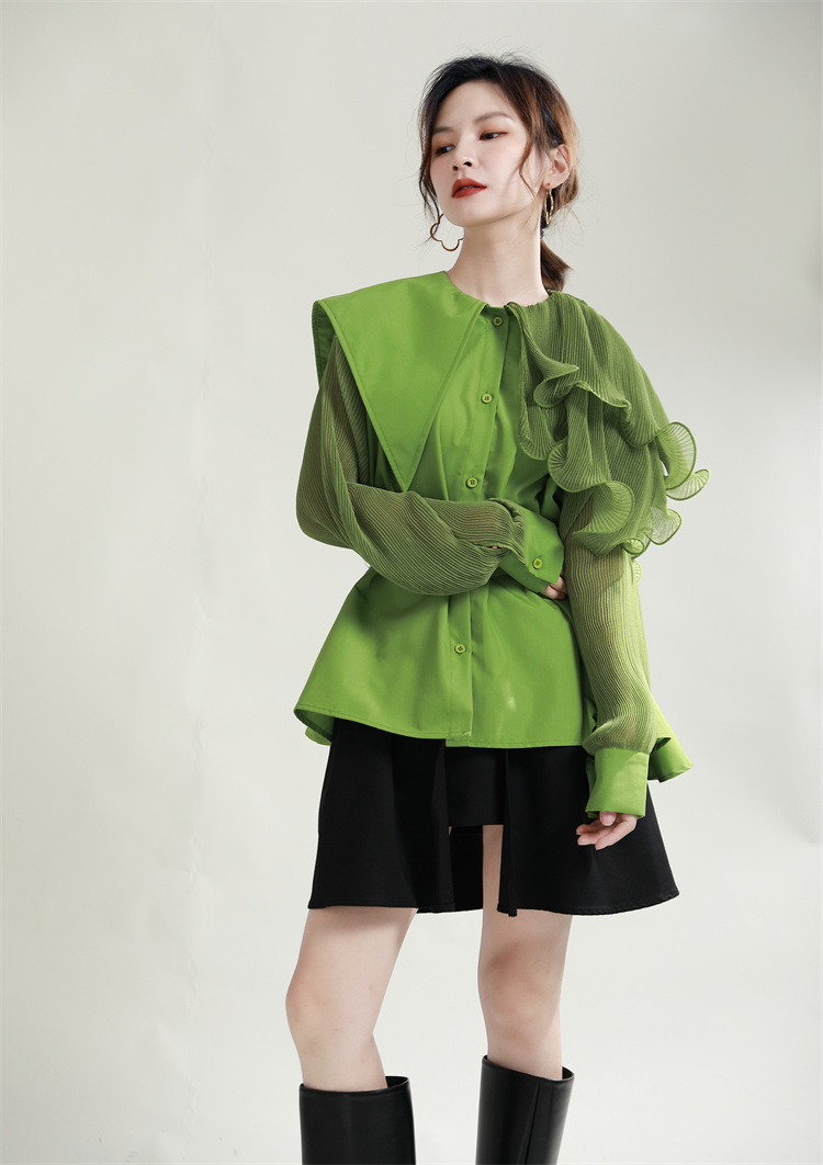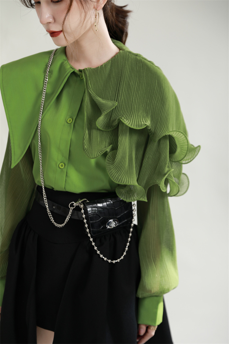 Áo kiểu dáng rộng tay dài, cổ bẻ với điểm nhấn là đường nhún tạo hình cánh sen cách điệu. Các mảng ghép phá cách kết hợp cùng thắt lưng đi kèm tôn lên vẻ nữ tính. Chất vải mềm mại mang đến sự thoải mái khi mặc. Phù hợp phối cùng quần ống rộng hoặc chân váy. Có thể mặc đi làm, đi chơi hoặc dự tiệc nhẹ. | Tên sản phẩm: Áo Sơ Mi Nữ Dài Tay Kín Cổ Hàng Mùa Xuân Thu Đông - Thời Trang Nữ | Mã sản phẩm: K6566 - Giá: 890.000đ | Mã nhà sản xuất: GUDOR-G03Hình ảnh sản phẩm