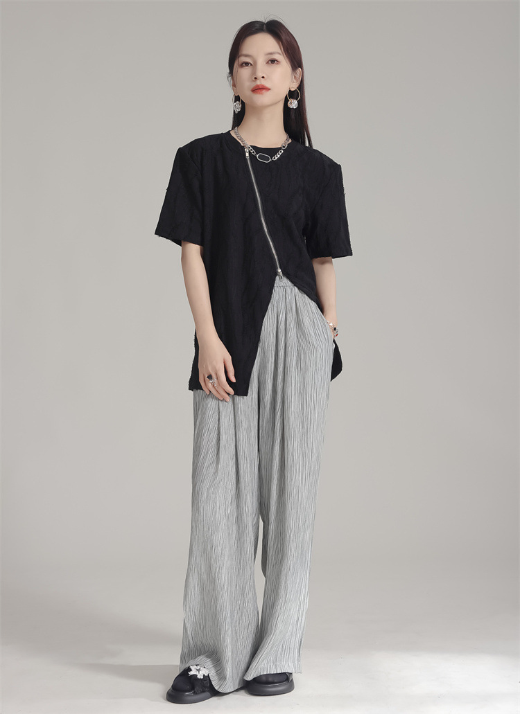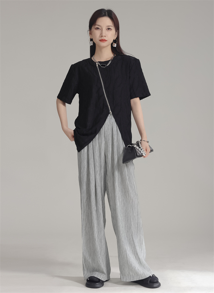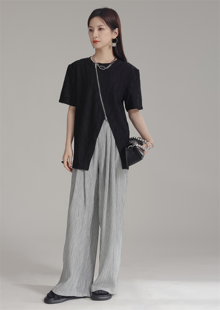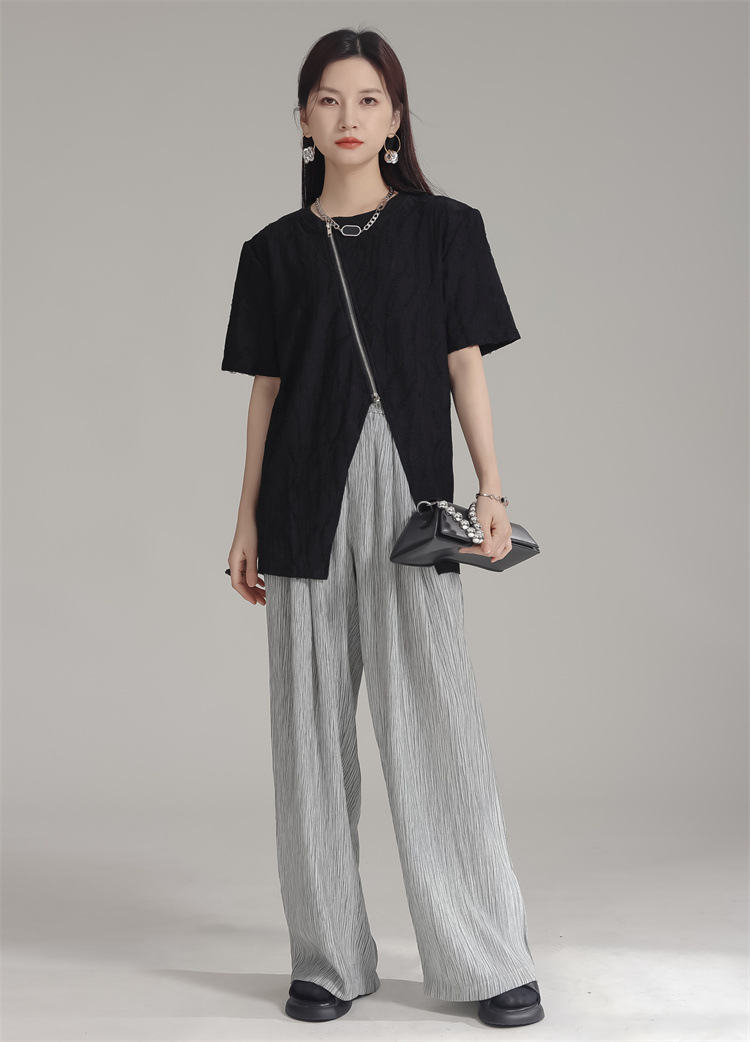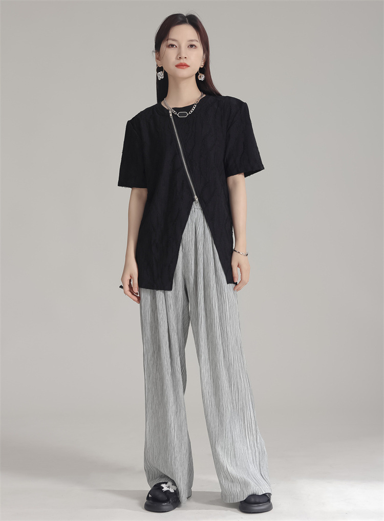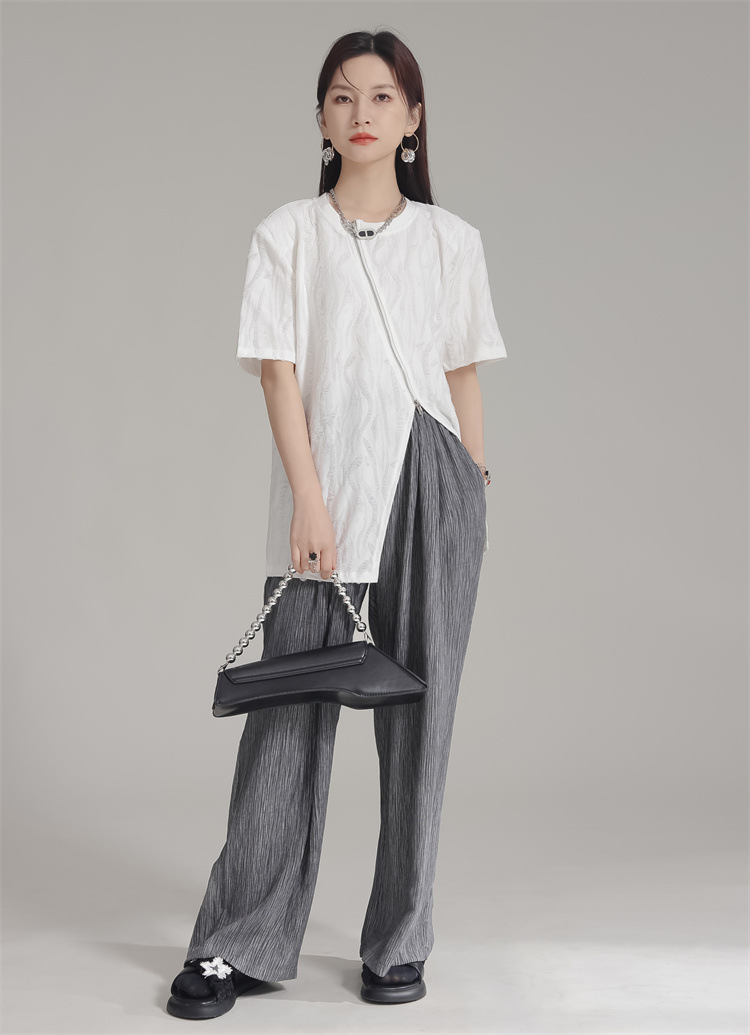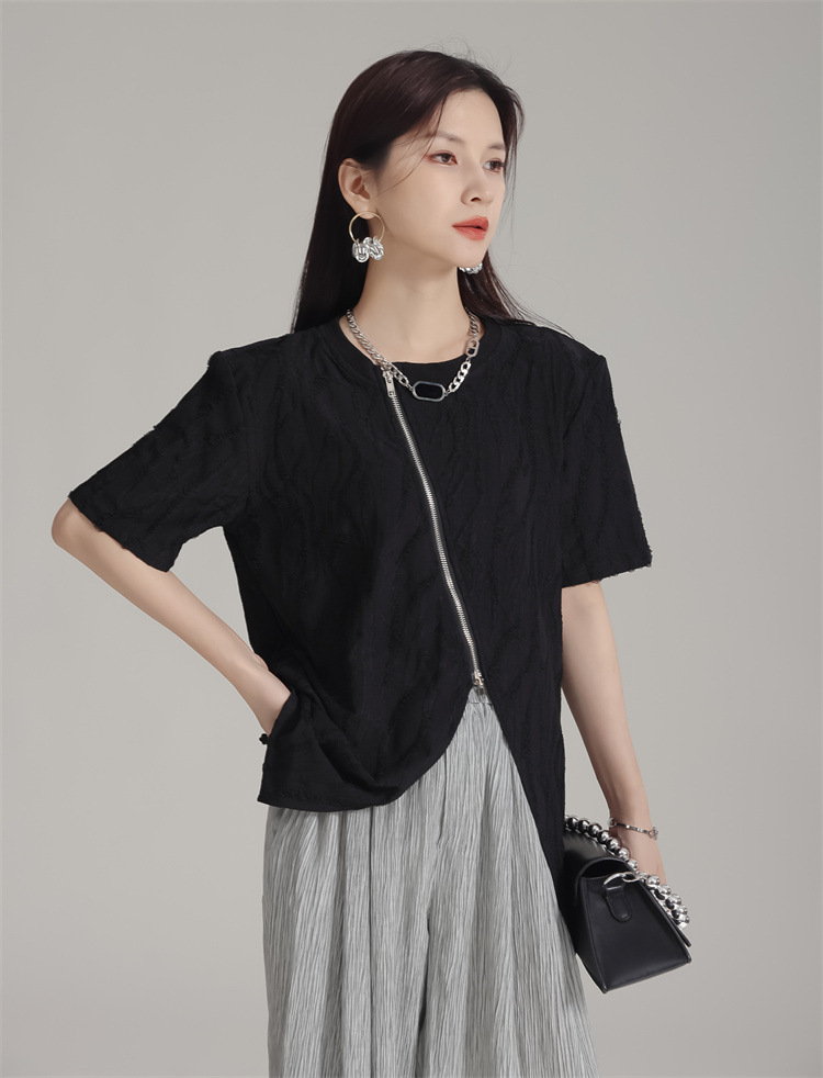 Áo ngắn tay nữ với thiết kế đường kéo mở phía dưới tạo điểm nhấn độc đáo. Chất vải mềm mại, form dáng rộng rãi thoải mái, phù hợp cho mùa hè. Kiểu áo có đường cắt xẻ kèm họa tiết sóng uốn lượn không đều, mang đến vẻ ngoại hình trẻ trung, năng động. Dễ dàng phối cùng quần shorts hoặc chân váy để tạo nên những bộ trang phục hàng ngày. | Tên sản phẩm: Áo Thun Nữ Ngắn Tay Hàng Mùa Hè - Thời Trang Nữ | Mã sản phẩm: K6585 - Giá: 880.000đ | Mã nhà sản xuất: GUDOR-G03Hình ảnh sản phẩm