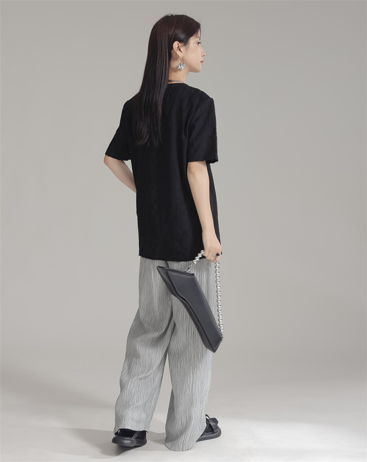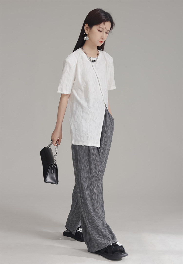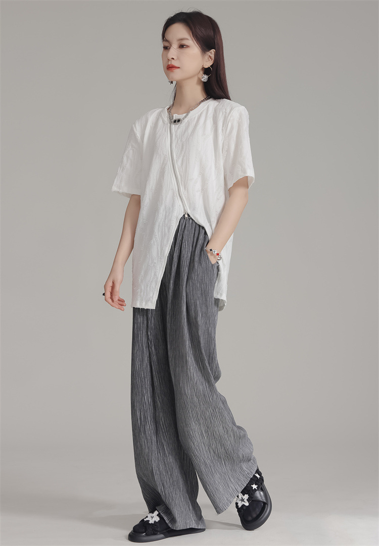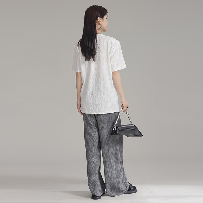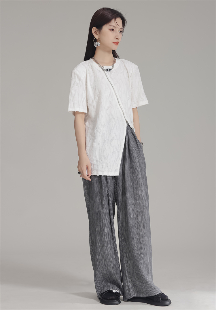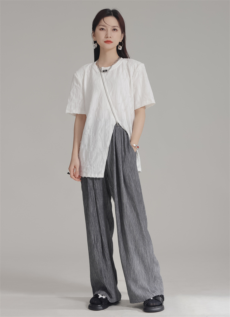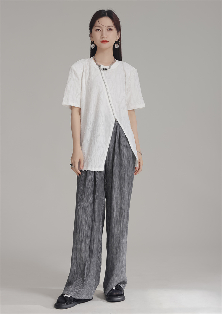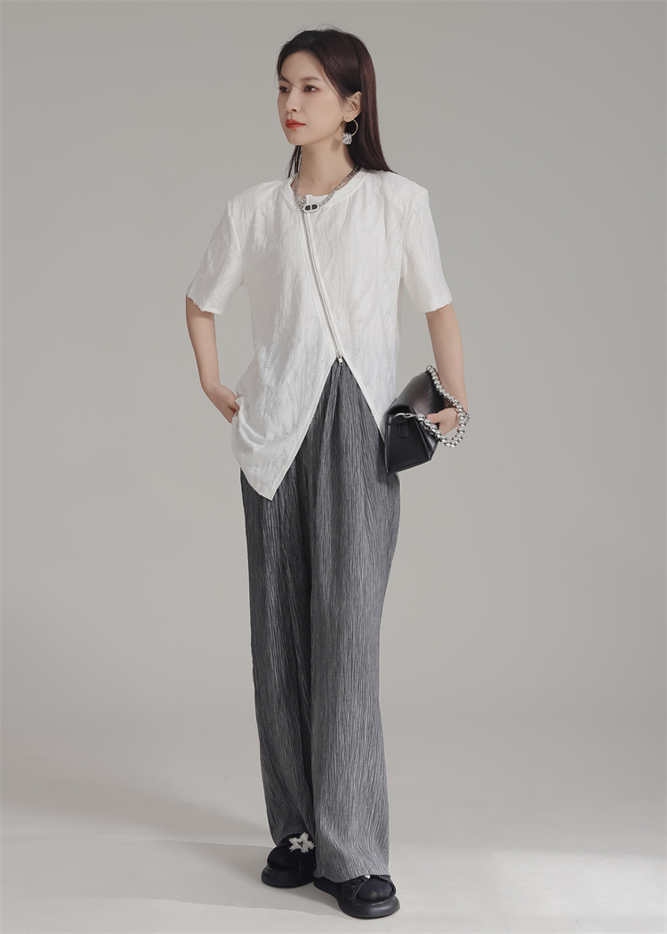 Áo ngắn tay nữ với thiết kế đường kéo mở phía dưới tạo điểm nhấn độc đáo. Chất vải mềm mại, form dáng rộng rãi thoải mái, phù hợp cho mùa hè. Kiểu áo có đường cắt xẻ kèm họa tiết sóng uốn lượn không đều, mang đến vẻ ngoại hình trẻ trung, năng động. Dễ dàng phối cùng quần shorts hoặc chân váy để tạo nên những bộ trang phục hàng ngày. | Tên sản phẩm: Áo Thun Nữ Ngắn Tay Hàng Mùa Hè - Thời Trang Nữ | Mã sản phẩm: K6585 - Giá: 880.000đ | Mã nhà sản xuất: GUDOR-G03Hình ảnh sản phẩm