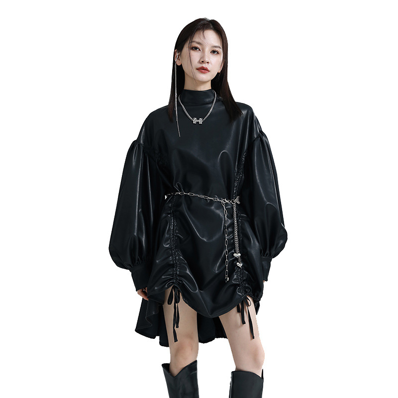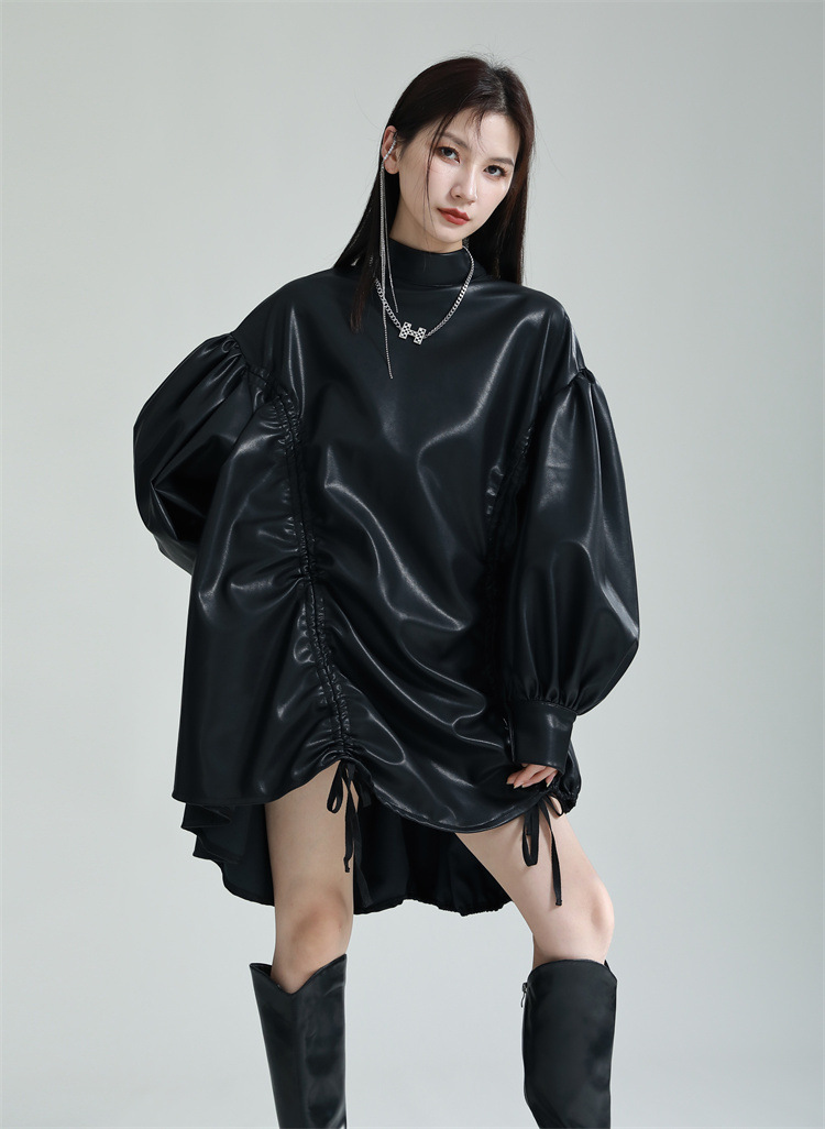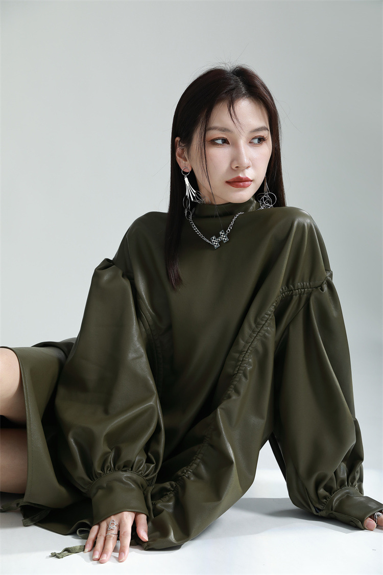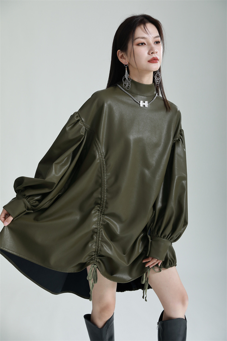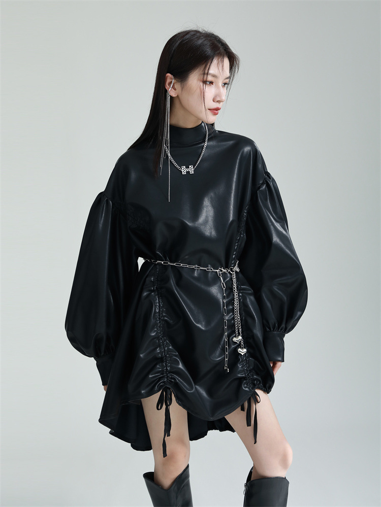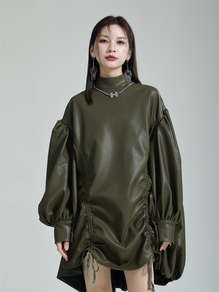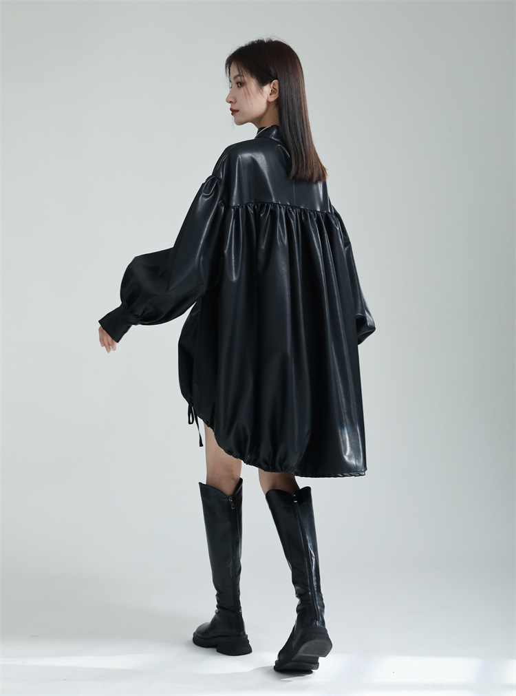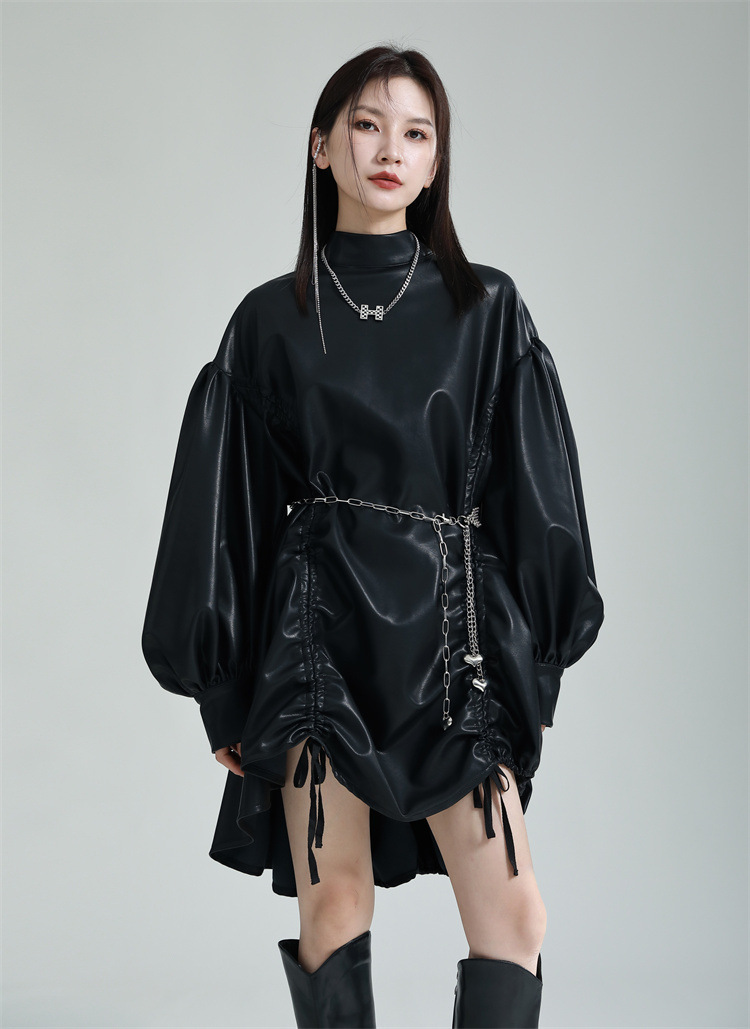 Chiếc đầm dáng áo choàng với cổ dựng đứng và dây rút tạo đường nét không đối xứng, mang phong cách riêng biệt. Tay áo phồng nhẹ ở v rồi thon dần về phía cổ tay, tạo điểm nhấn thanh thoát. Chất liệu da tổng hợp mềm mại giúp tôn dáng người mặc. Sản phẩm phù hợp để phối cùng giày bốt và túi xách có thiết kế mạnh mẽ, dùng cho các dịp dạo phố hoặc gặp gỡ bạn bè. | Tên sản phẩm: Váy Đầm Liền Thân Nữ - Thời Trang Nữ | Mã sản phẩm: K6641 - Giá: 1.070.000đ | Mã nhà sản xuất: GUDOR-G03Hình ảnh sản phẩm