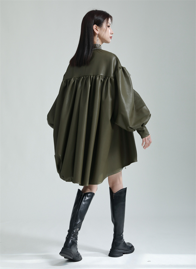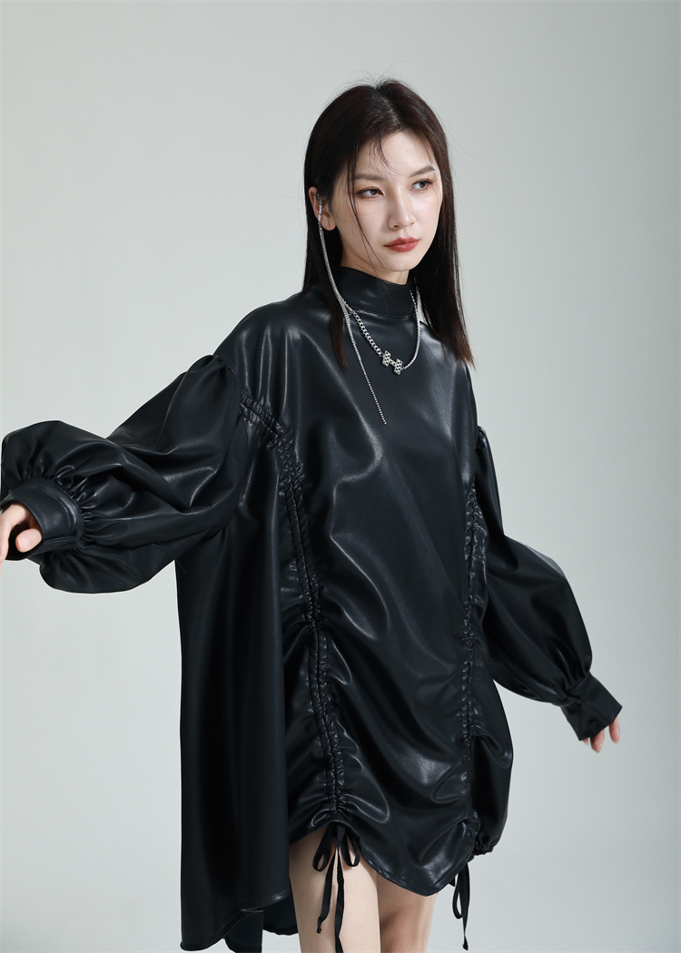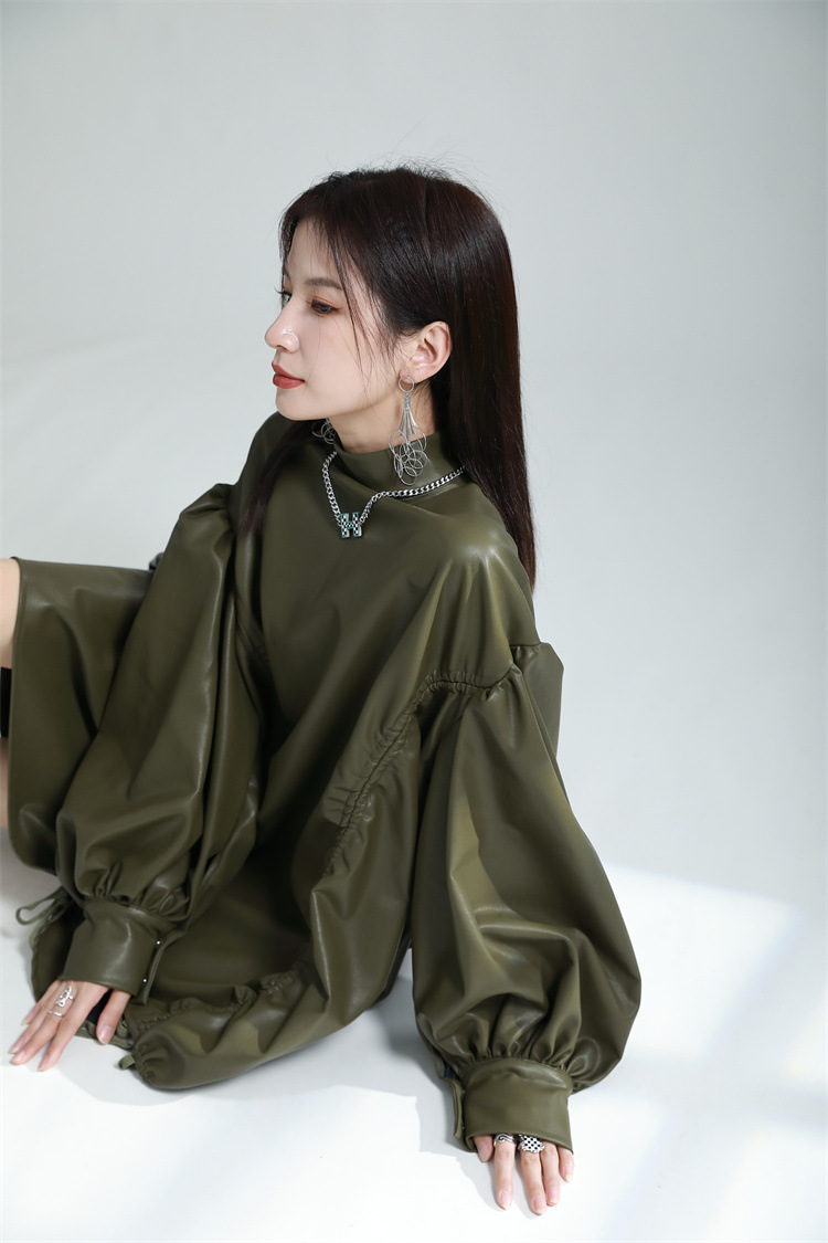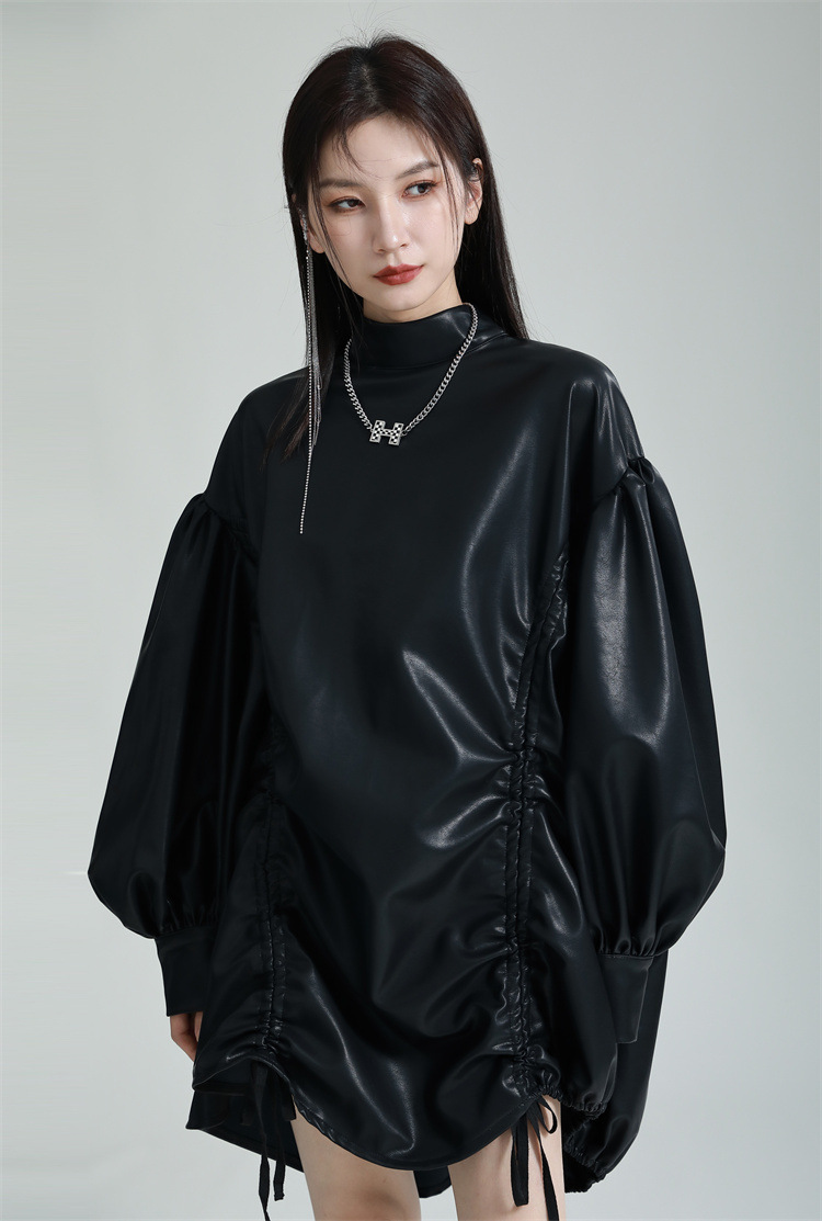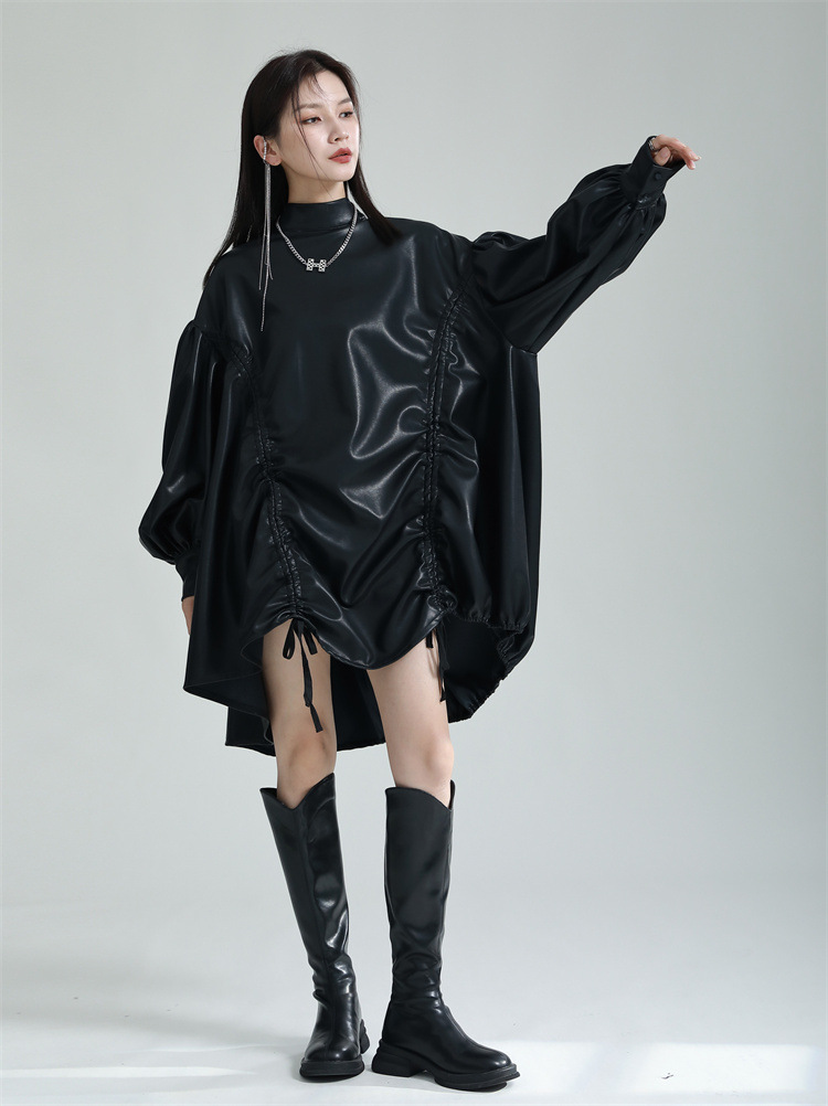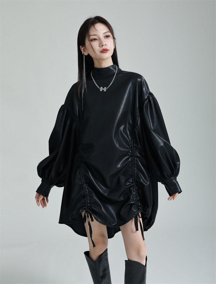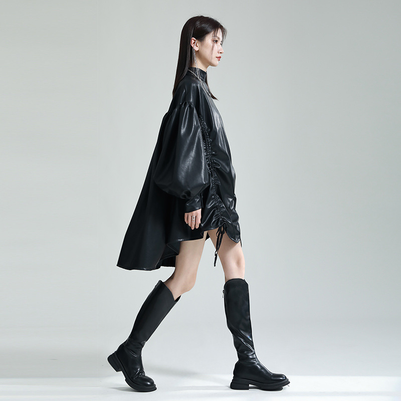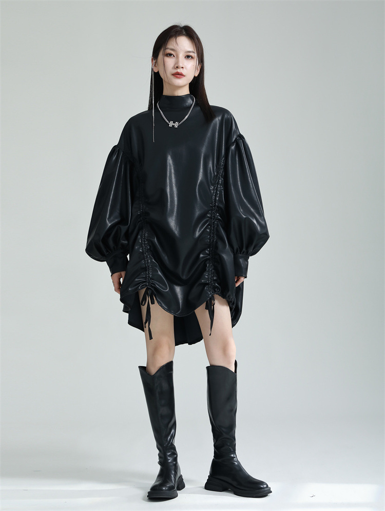 Chiếc đầm dáng áo choàng với cổ dựng đứng và dây rút tạo đường nét không đối xứng, mang phong cách riêng biệt. Tay áo phồng nhẹ ở v rồi thon dần về phía cổ tay, tạo điểm nhấn thanh thoát. Chất liệu da tổng hợp mềm mại giúp tôn dáng người mặc. Sản phẩm phù hợp để phối cùng giày bốt và túi xách có thiết kế mạnh mẽ, dùng cho các dịp dạo phố hoặc gặp gỡ bạn bè. | Tên sản phẩm: Váy Đầm Liền Thân Nữ - Thời Trang Nữ | Mã sản phẩm: K6641 - Giá: 1.070.000đ | Mã nhà sản xuất: GUDOR-G03Hình ảnh sản phẩm