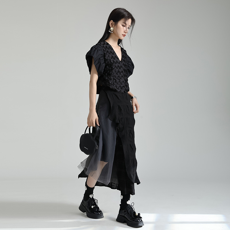Chiếc váy này có điểm nhấn đặc biệt ở phần thiết kế ghép nối bằng vải mạng kết hợp vải xếp ly, tạo nên những đường nét đầy ấn tượng. Tông màu chủ đạo là sự kết hợp giữa đen và xám. Kiểu dáng chữ A giúp tôn lên vóc dáng và rất phù hợp cho các bạn gái có chiều cao khiêm tốn. Phong cách kết hợp giữa nữ tính và cá tính. Có thể mặc khi đi chơi, dạo phố. Phối cùng áo thun hoặc áo ba lỗ đều rất hợp. | Tên sản phẩm: Chân Váy Đầm Nữ Lưới Mỏng - Thời Trang Nữ | Mã sản phẩm: K6655 - Giá: 1.000.000đ | Mã nhà sản xuất: GUDOR-G03Hình ảnh sản phẩm