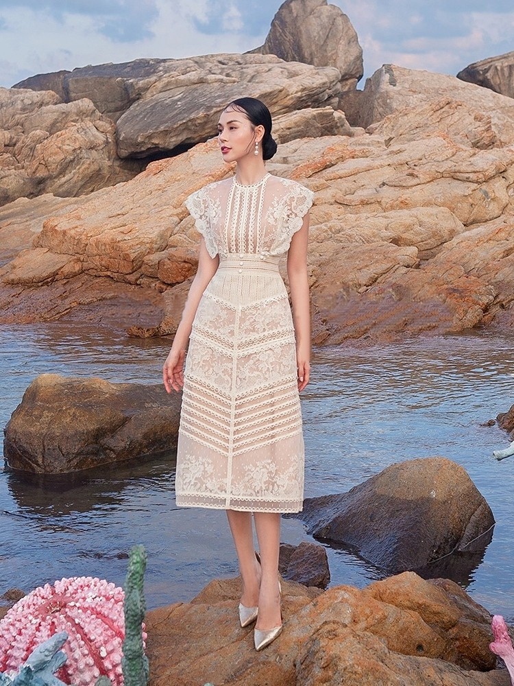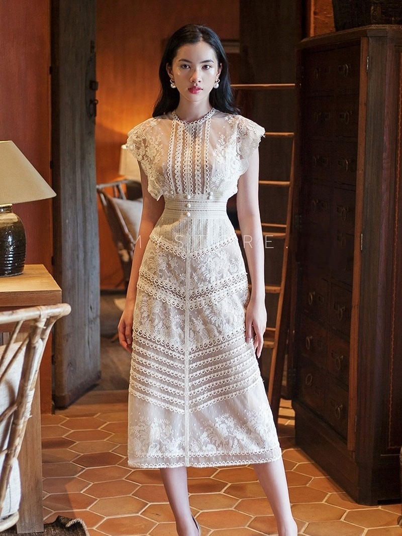Chiếc đầm này có chất ren thêu kỳ công tạo nên những họa tiết hoa lá tinh xảo. Tay áo thiết kế kiểu cánh bay phóng khoáng, giúp tôn lên vẻ đẹp dịu dàng và nữ tính. Form đầm ôm nhẹ cơ thể, phù hợp cho nhiều dịp gặp mặt. Sản phẩm dễ dàng phối cùng giày cao gót và túi xách nhỏ. Bạn chỉ cần giặt nhẹ nhàng và phơi nơi thoáng mát để giữ dáng áo bền đẹp. | Tên sản phẩm: Váy Đầm Liền Thân Nữ Chất Liệu Ren Thêu Họa Tiết Hoa - Thời Trang Nữ | Mã sản phẩm: K6683 - Giá: 3.380.000đ | Mã nhà sản xuất: FORYCT-G06Hình ảnh sản phẩm