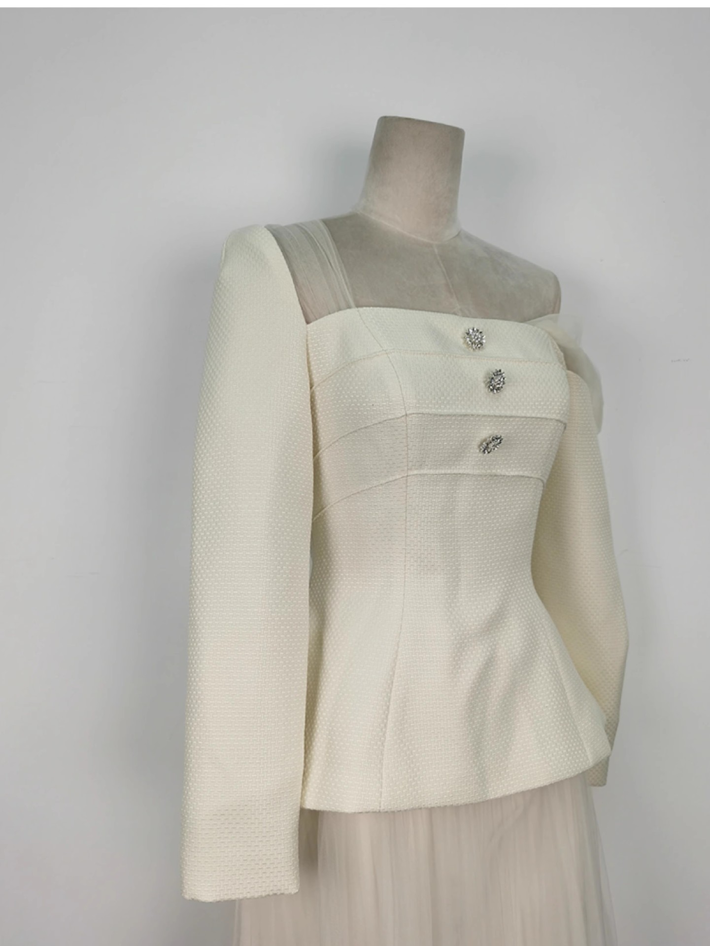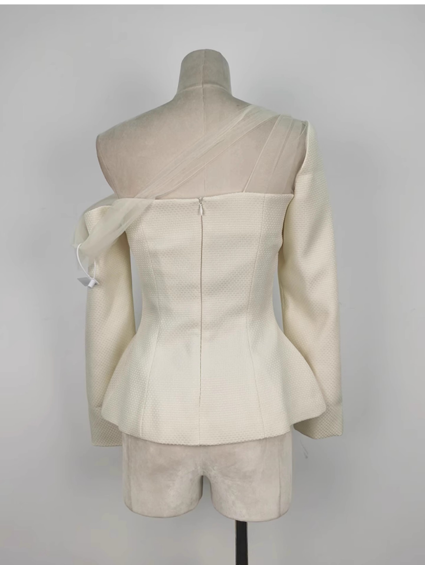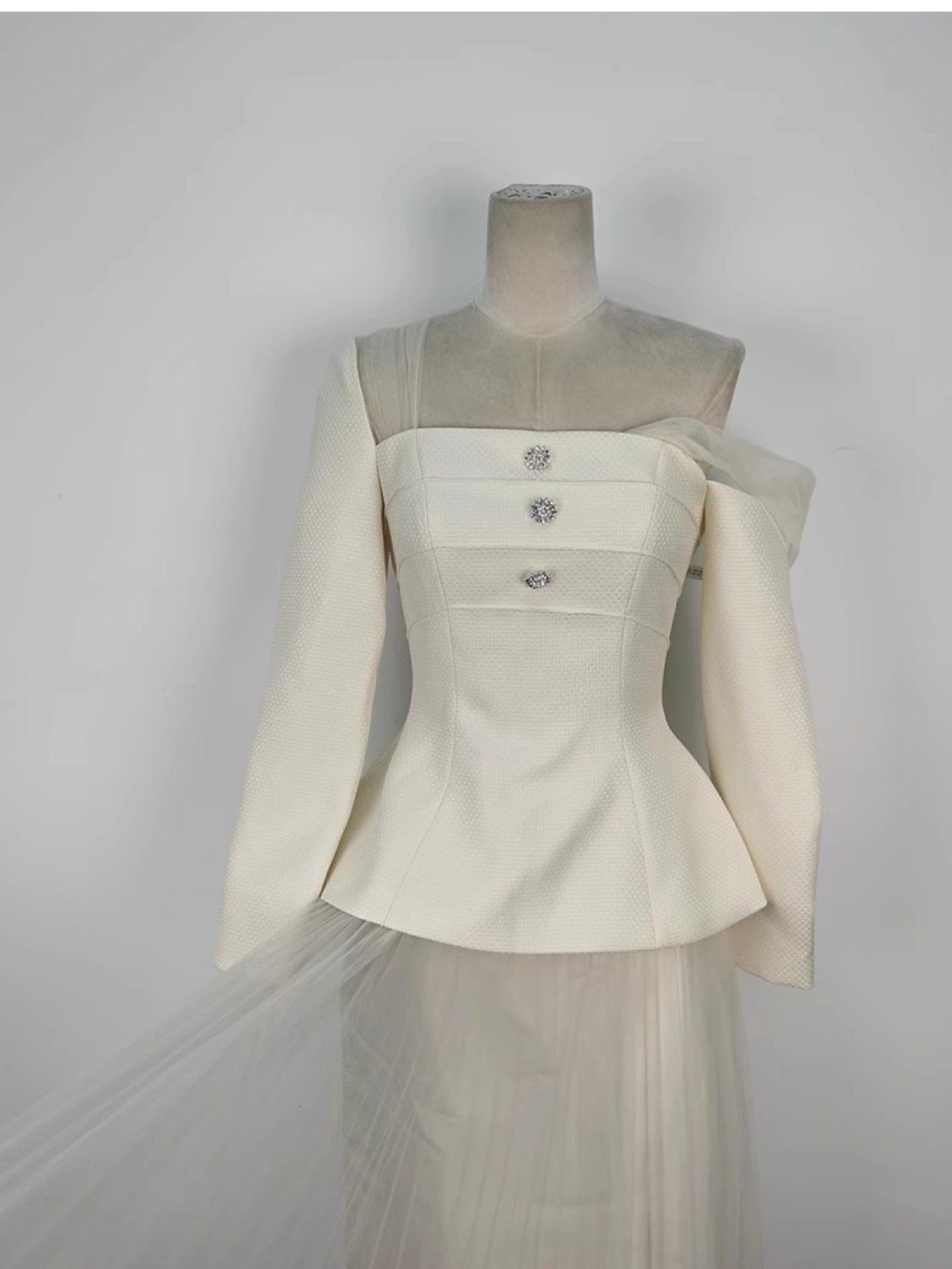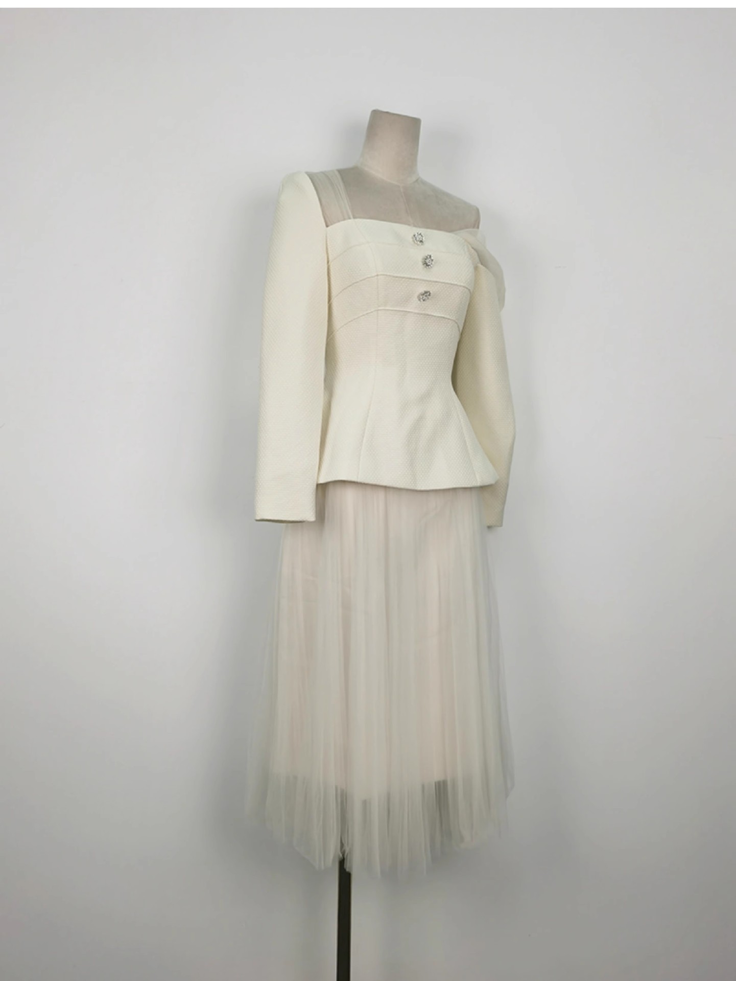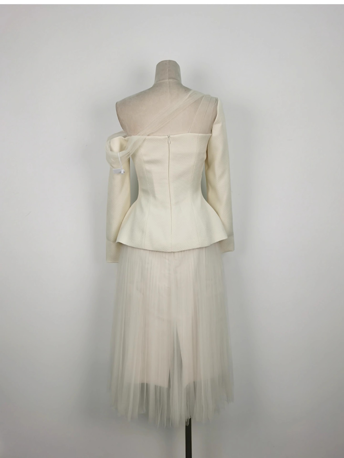 Bộ trang phục này gồm áo tay dài và chân váy, mang phong cách thiết kế hiện đại. Áo có phần v được khoét lệch tạo điểm nhấn. Chân váy xếp lớp với phần viền lưới mỏng nhẹ nhàng, tạo dáng thanh thoát. Bộ này phù hợp mặc đi làm hoặc dự tiệc nhẹ. Có thể phối cùng giày cao gót và túi xách nhỏ để hoàn thiện bộ trang phục. | Tên sản phẩm: Đồ Bộ Nữ Dài Tay Lưới Mỏng - Thời Trang Nữ | Mã sản phẩm: K6687 - Giá: 1.730.000đ | Mã nhà sản xuất: FORYCT-G05Hình ảnh sản phẩm