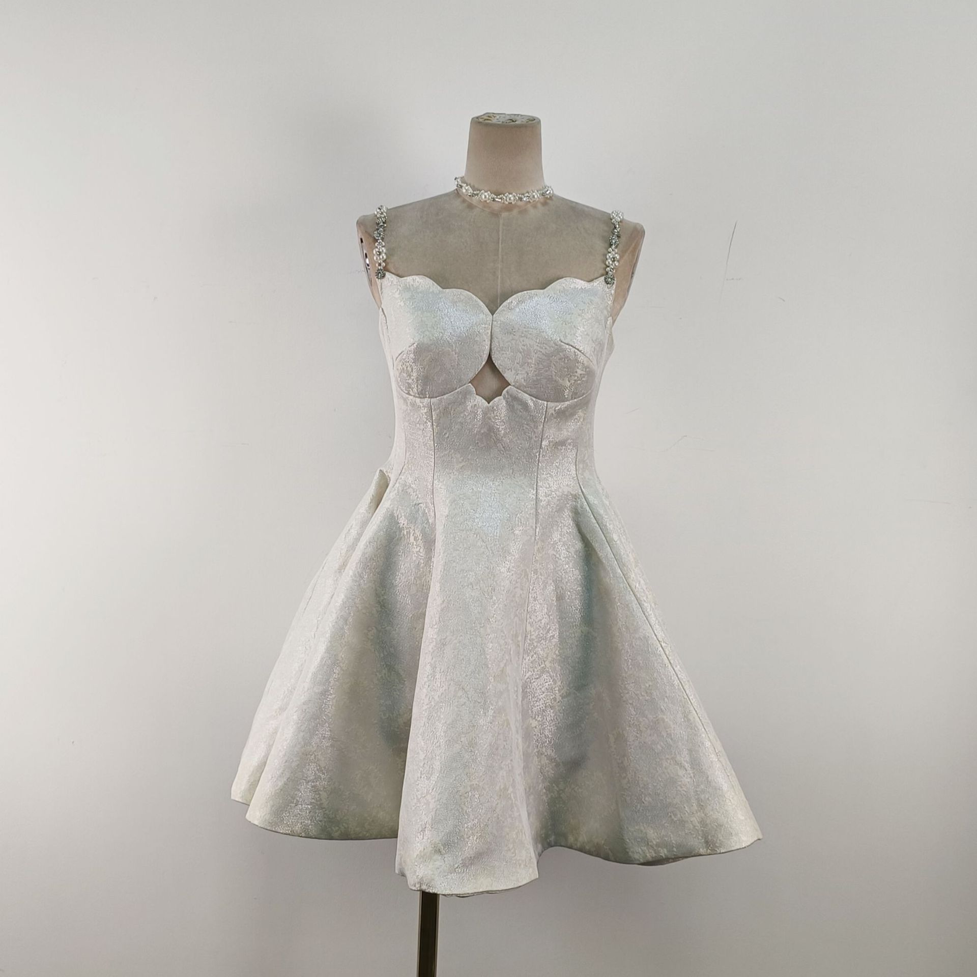Chiếc váy ngắn hai dây này có điểm nhấn là những đường viền lấp lánh tinh tế dọc theo thân váy. Thiết kế ôm nhẹ cơ thể, giúp tôn lên những đường nét của người mặc. Chất vải mềm mại mang lại cảm giác dễ chịu. Sản phẩm phù hợp để mặc trong các buổi tiệc hoặc sự kiện. Bạn có thể giặt nhẹ và phơi khô trong bóng mát để giữ form váy và độ sáng của các chi tiết. | Tên sản phẩm: Áo Hai Dây Nữ Hai Dây Hở Vai - Thời Trang Nữ | Mã sản phẩm: K6694 - Giá: 2.940.000đ | Mã nhà sản xuất: FORYCT-G06Hình ảnh sản phẩm