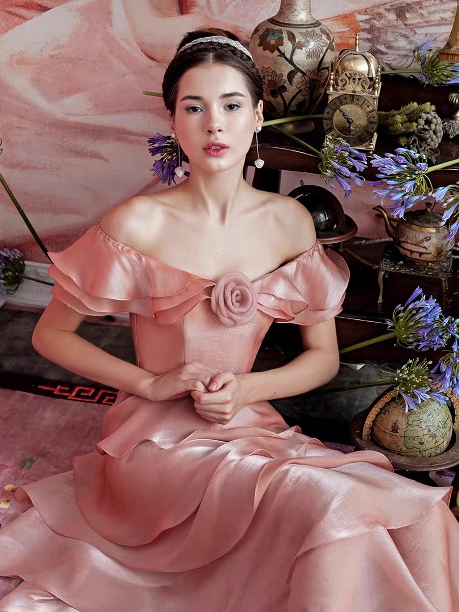 Váy dạ hội có thiết kế cổ khoét v độc đáo, tôn dáng người mặc. Chất liệu vải mềm mại, màu hồng nhẹ nhàng kết hợp cùng các tầng viền xếp lớp như cánh sen, tạo nên vẻ đẹp nữ tính và thanh thoát. Sản phẩm phù hợp cho các buổi tiệc, sự kiện. Mặc cùng giày cao gót và phụ kiện tinh tế để hoàn thiện bộ trang phục. | Tên sản phẩm: Váy Đầm Liền Thân Dự Tiệc Nữ - Thời Trang Nữ | Mã sản phẩm: K6697 - Giá: 2.760.000đ | Mã nhà sản xuất: FORYCT-G06Hình ảnh sản phẩm