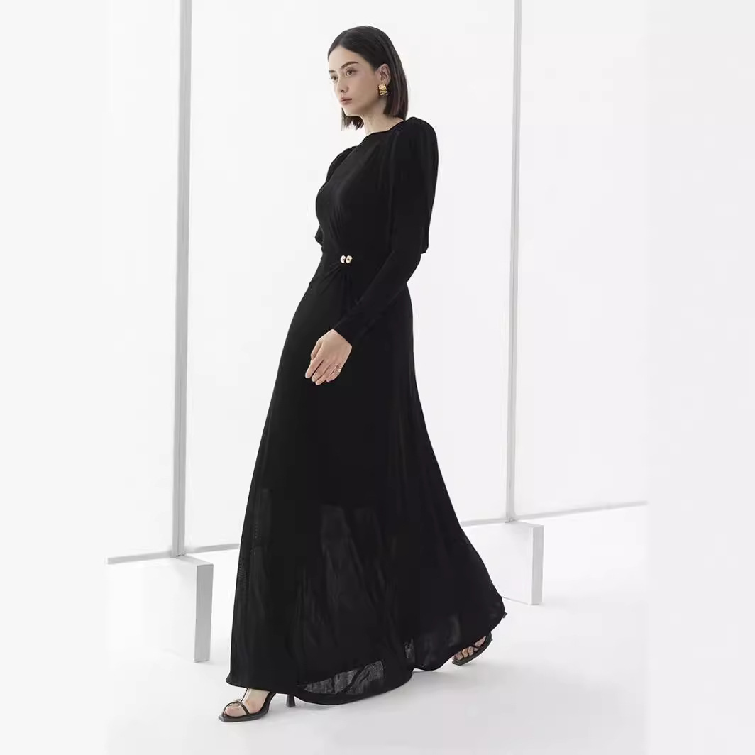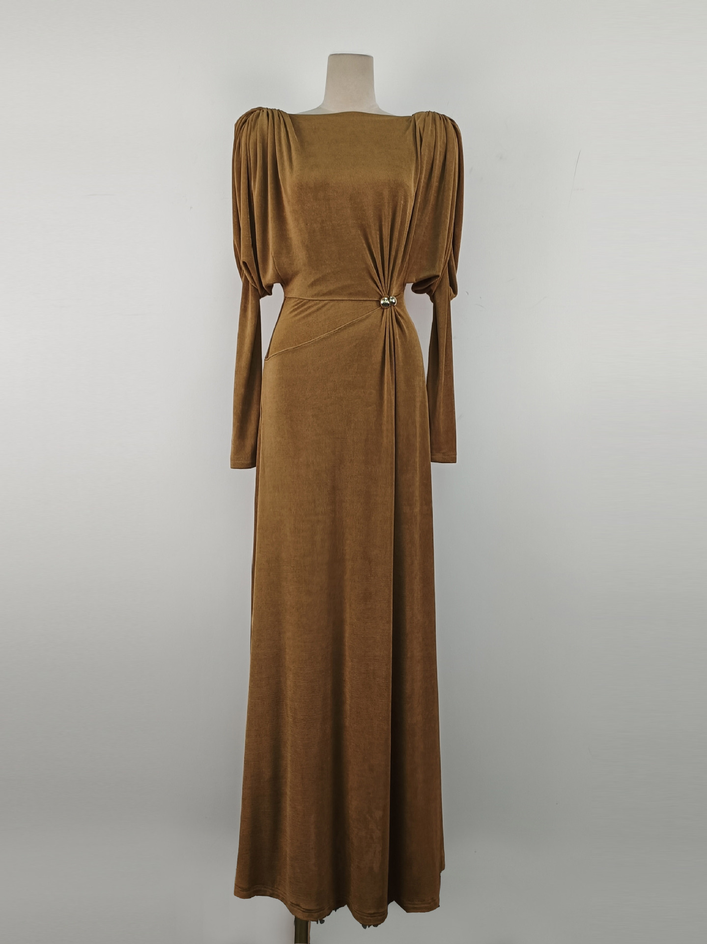 Chiếc đầm dáng dài với điểm nhấn là nút thắt trang nhã phía trước, tạo nên nét duyên dáng và thanh lịch. Chất vải mềm mại có đường nhăn tự nhiên giúp tôn dáng và dễ dàng vận động. Kiểu dáng phù hợp cho nhiều dịp, từ làm việc đến các buổi gặp mặt thường ngày. Mặc cùng giày bệt hoặc giày có qu để hoàn thiện bộ trang phục. | Tên sản phẩm: Váy Đầm Liền Thân Dáng Dài Nữ - Thời Trang Nữ | Mã sản phẩm: K6726 - Giá: 3.190.000đ | Mã nhà sản xuất: FORYCT-G06Hình ảnh sản phẩm