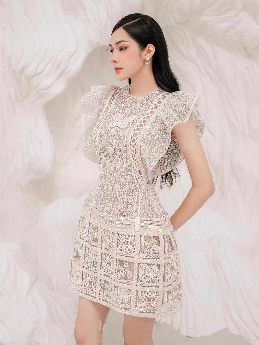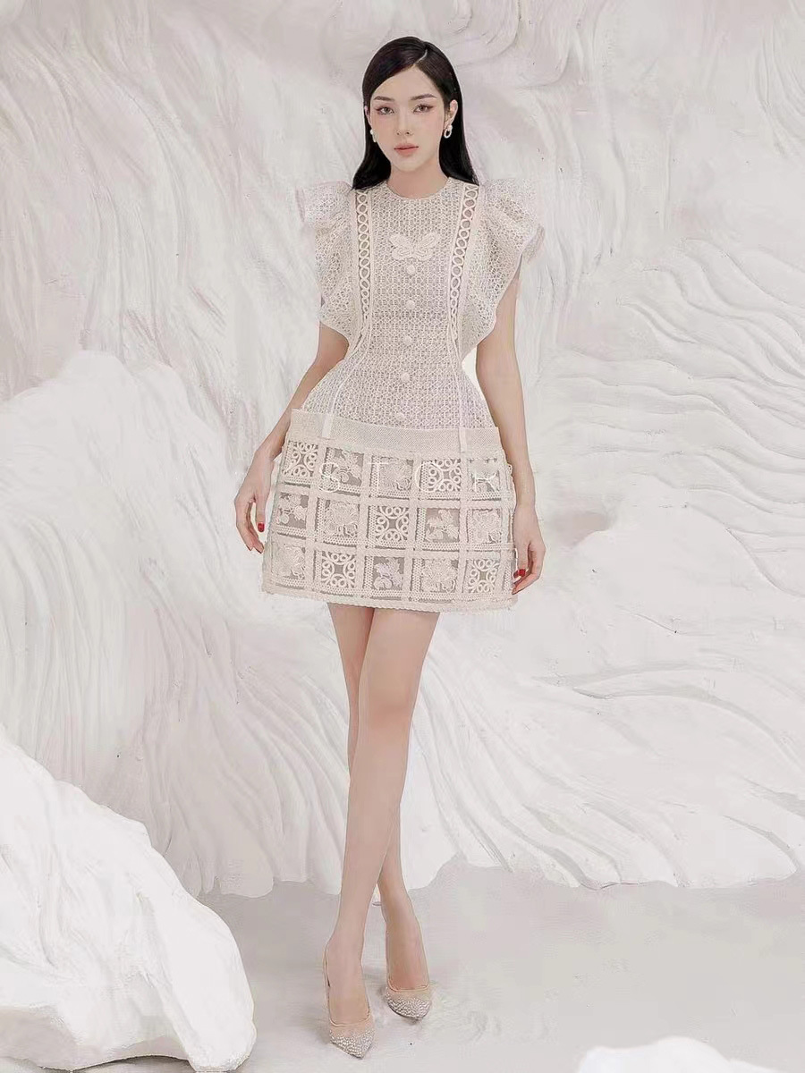 Chiếc đầm ngắn này có điểm nhấn đặc biệt ở phần tay áo phồng nhẹ và đường viền xòe mềm mại ở gấu váy. Chất liệu ren được kết hợp cùng những đường thêu tinh xảo, tạo nên vẻ đẹp tỉ mỉ và nữ tính. Kiểu dáng phù hợp cho nhiều dịp đi chơi, dạo phố hay gặp gỡ bạn bè. Bạn có thể mặc cùng giày búp bê hoặc giày qu hậu để hoàn thiện bộ trang phục. | Tên sản phẩm: Váy Đầm Liền Thân Nữ Chất Liệu Ren Thêu Họa Tiết Hoa - Thời Trang Nữ | Mã sản phẩm: K6742 - Giá: 3.330.000đ | Mã nhà sản xuất: FORYCT-G06Hình ảnh sản phẩm