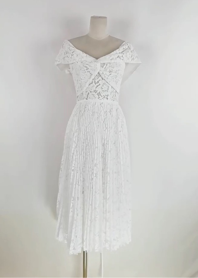 Chiếc đầm này có phần cổ khoét thẳng và tay áo phồng nhẹ nhàng tôn dáng. Chất vải ren trắng mềm mại, kết hợp cùng phần chân váy xòe rộng tạo nên sự thướt tha, nữ tính. Sản phẩm phù hợp cho nhiều dịp như dạo phố, hẹn hò hay dự tiệc. Bạn chỉ cần mặc vào và kéo khóa là đã có một set đồ hoàn chỉnh, giúp bạn tự tin tỏa sáng. | Tên sản phẩm: Váy Đầm Liền Thân Nữ Chất Liệu Ren - Thời Trang Nữ | Mã sản phẩm: K6760 - Giá: 2.760.000đ | Mã nhà sản xuất: FORYCT-G06Hình ảnh sản phẩm