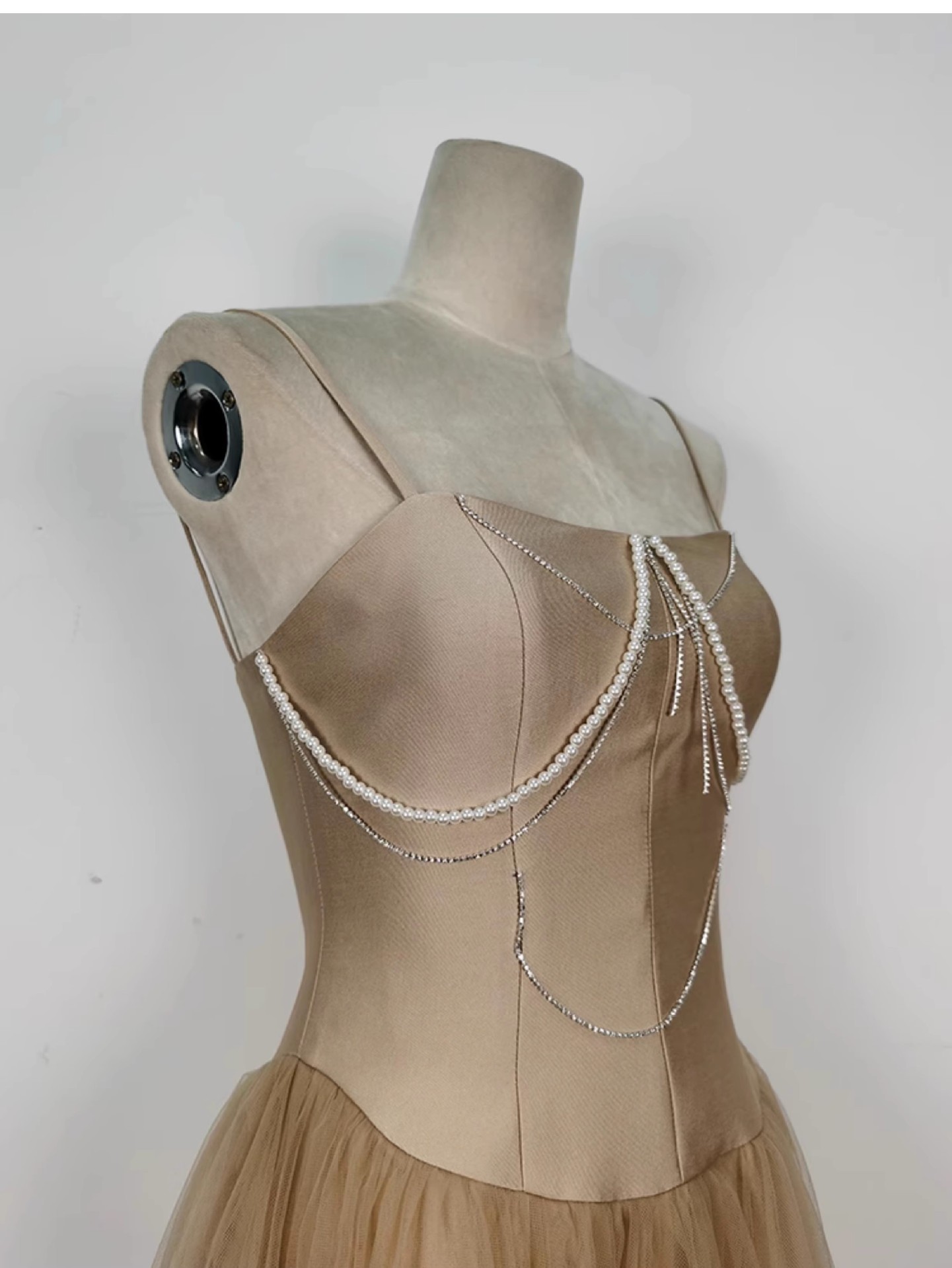 Chiếc đầm này có phần áo dạng dây chuyền kết hạt ngọc tr tinh xảo, phối cùng thân váy kết hợp vải mỏng nhẹ và chất liệu chính. Thiết kế ôm sát, tôn dáng với phần eo được may đo khéo léo, giúp tạo đường nét thanh thoát. Kiểu dáng không tay, phù hợp cho những buổi tiệc hoặc sự kiện. Mặc cùng giày cao gót để hoàn thiện set đồ. | Tên sản phẩm: Váy Đầm Liền Thân Nữ Lưới Mỏng - Thời Trang Nữ | Mã sản phẩm: K6811 - Giá: 2.550.000đ | Mã nhà sản xuất: FORYCT-G06Hình ảnh sản phẩm