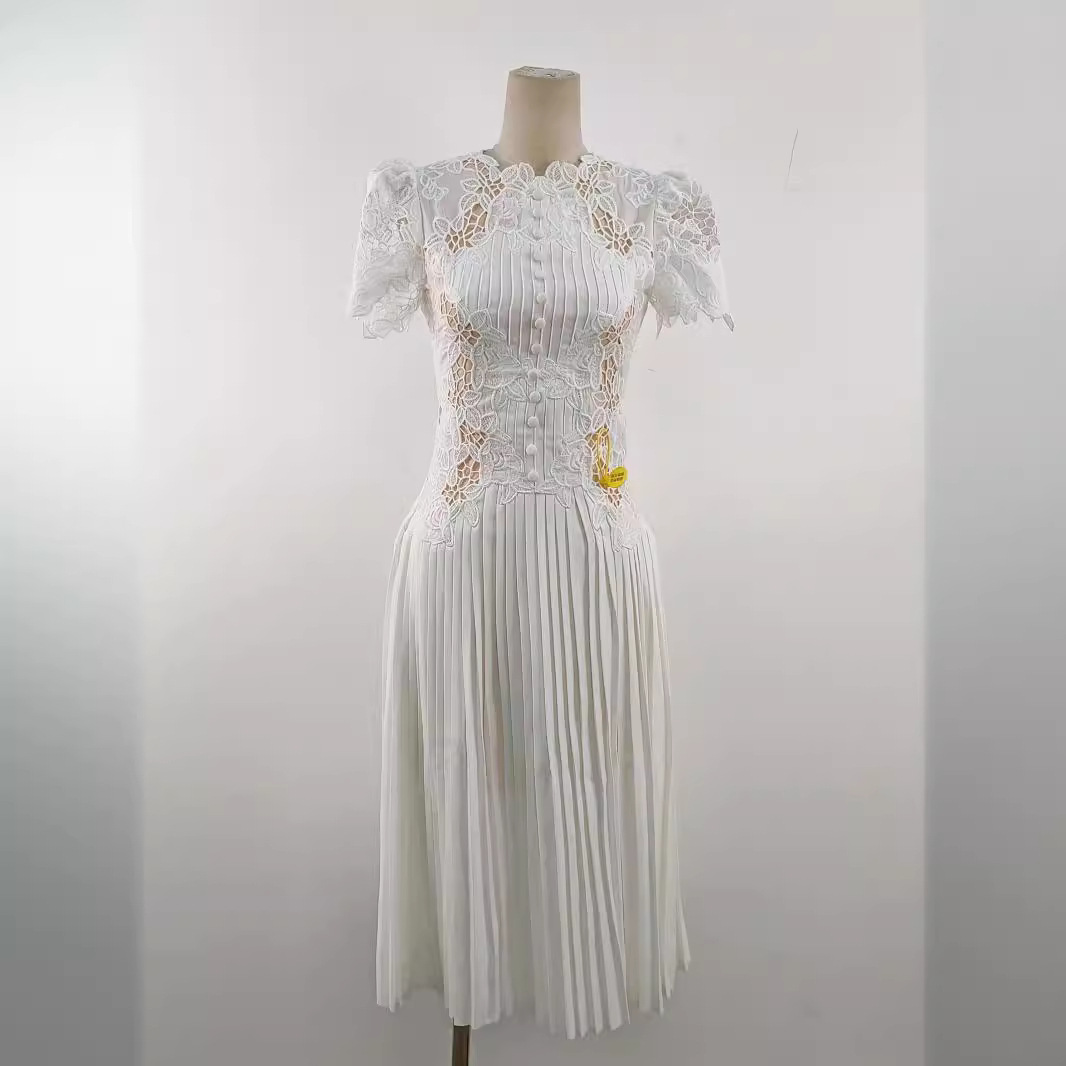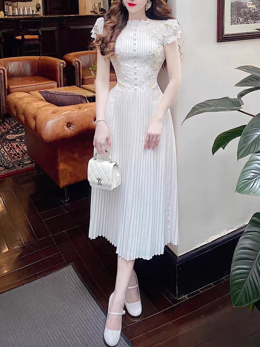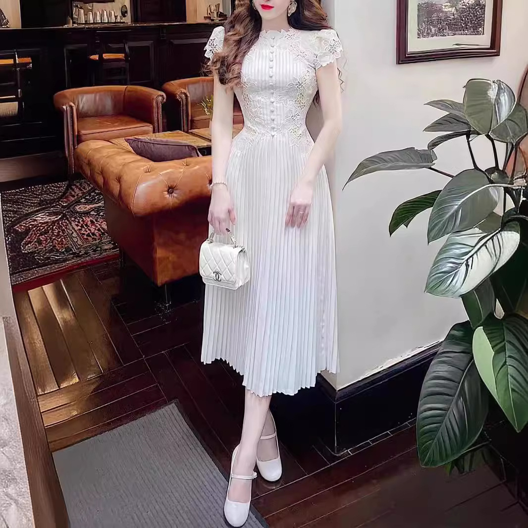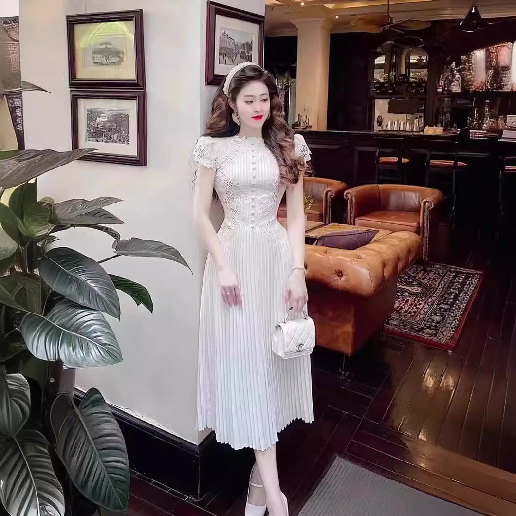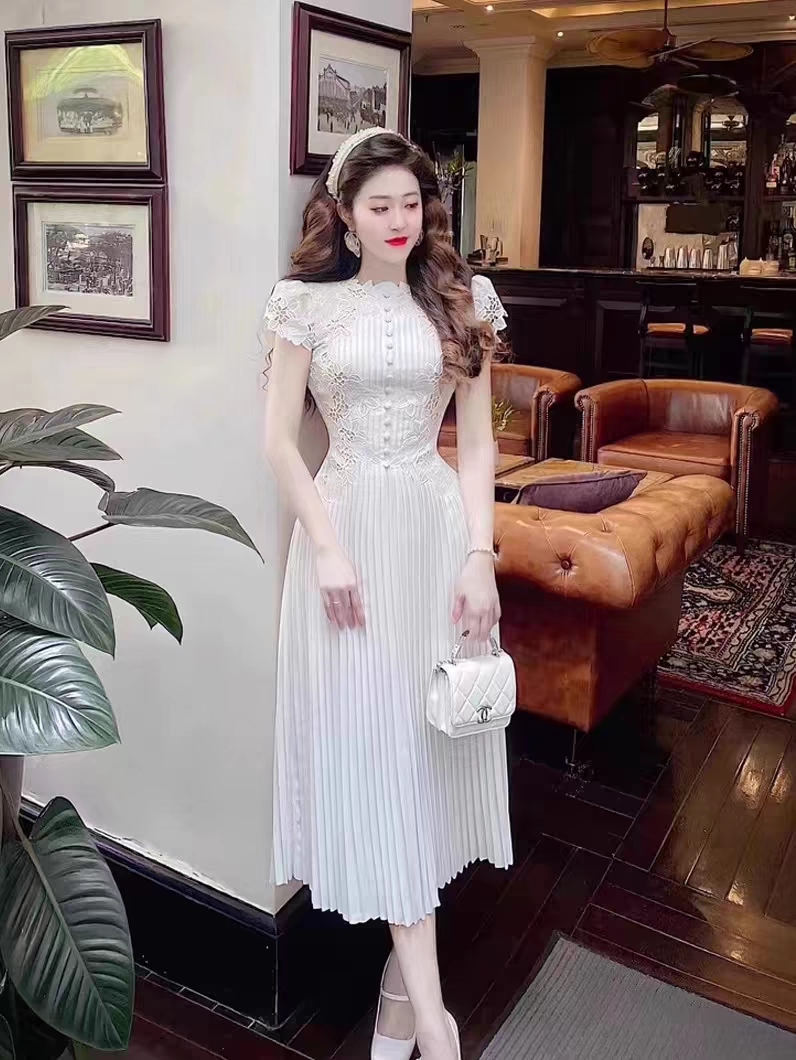 Chiếc đầm này kết hợp họa tiết ren hoa tinh xảo cùng phần thân xếp ly, tạo nên vẻ đẹp dịu dàng và nữ tính. Thiết kết ôm nhẹ ở eo giúp tôn dáng người mặc. Chất vải mềm mại, thoáng mát với tay ngắn và độ dài vừa phải, phù hợp cho nhiều dịp khác nhau. Có thể mặc đi làm, dự tiệc hoặc dạo phố. Sản phẩm dễ dàng phối cùng giày cao gót hay balo tùy thích. | Tên sản phẩm: Váy Đầm Liền Thân Dáng Dài Nữ Chất Liệu Ren Ngắn Tay Họa Tiết Hoa - Thời Trang Nữ | Mã sản phẩm: K6820 - Giá: 2.960.000đ | Mã nhà sản xuất: FORYCT-G06Hình ảnh sản phẩm