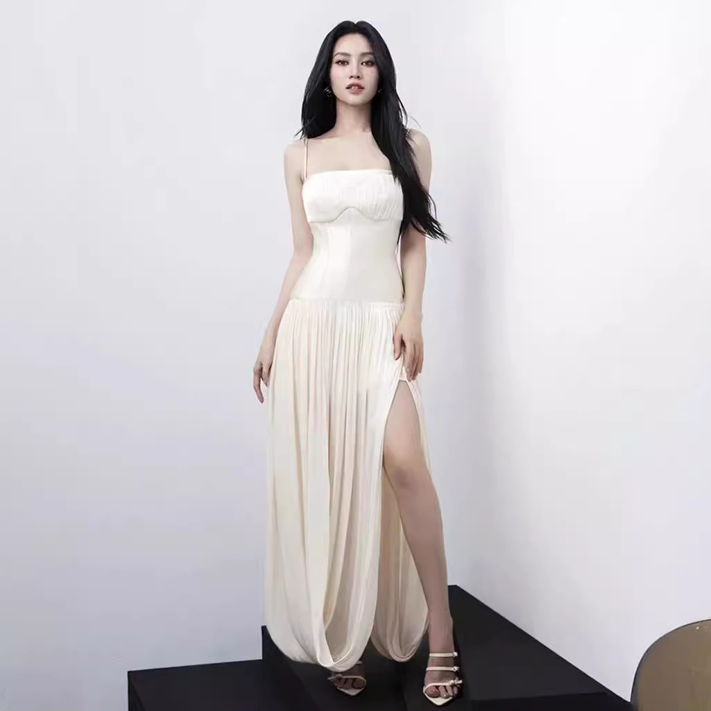 Chiếc váy dáng dài với thiết kế hai dây và tà xẻ nhẹ nhàng. Chất vải mềm mại tạo thành những nếp gấp xếp tự nhiên, giúp tôn lên đường nét cơ thể một cách tinh tế. Kiểu dáng này phù hợp cho nhiều dịp khác nhau. Có thể mặc một mình hoặc kết hợp cùng áo khoác mỏng bên ngoài. Sản phẩm mang đến vẻ ngoại hình thanh thoát và nhẹ nhàng cho người mặc. | Tên sản phẩm: Áo Hai Dây Nữ Hai Dây Hở Vai - Thời Trang Nữ | Mã sản phẩm: K6826 - Giá: 2.770.000đ | Mã nhà sản xuất: FORYCT-G06Hình ảnh sản phẩm