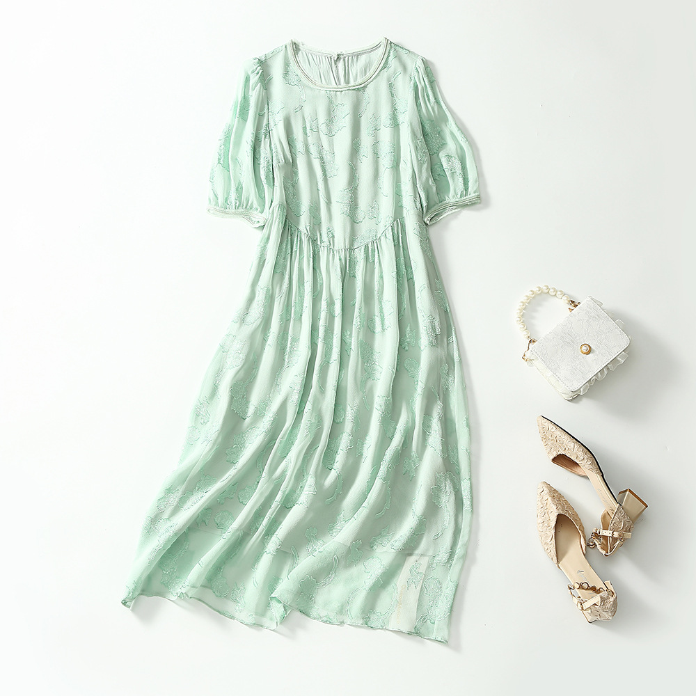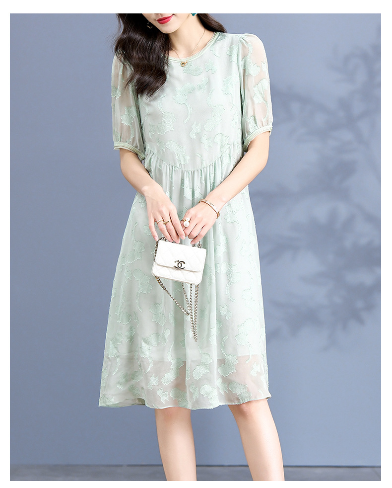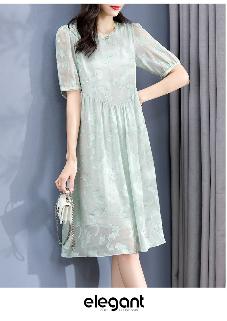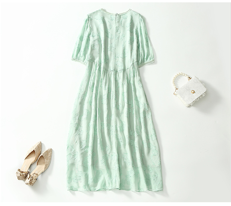 Chiếc đầm dành cho nữ, được làm từ chất liệu tơ lụa mỏng nhẹ và thoáng mát, phù hợp cho thời tiết ấm áp. Điểm nổi bật là những họa tiết được cắt tỉa và thêu một cách tinh tế trên nền vải. Thiết kế ôm nhẹ qua eo, tạo dáng thanh thoát và giúp tôn lên những đường nét cơ thể. Sản phẩm dễ dàng phối cùng giày sandal và túi xách để tạo nên một vẻ ngoài nhẹ nhàng, duyên dáng cho những dịp gặp gỡ hàng ngày. | Tên sản phẩm: Váy Đầm Liền Thân Nữ Chất Liệu Lụa Tơ Tằm Họa Tiết Hoa Hàng Mùa Hè - Thời Trang Nữ | Mã sản phẩm: K6977 - Giá: 3.010.000đ | Mã nhà sản xuất: SHDA-G06Hình ảnh sản phẩm