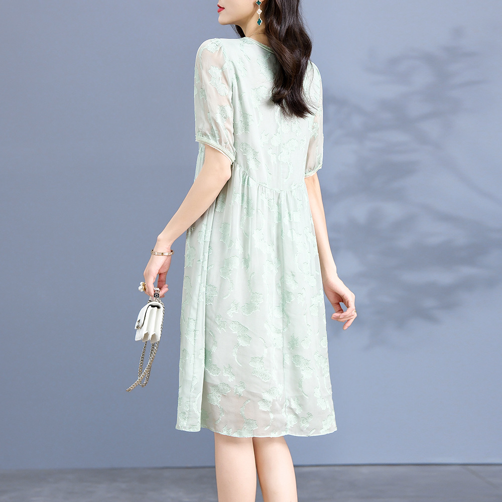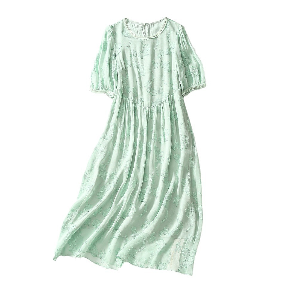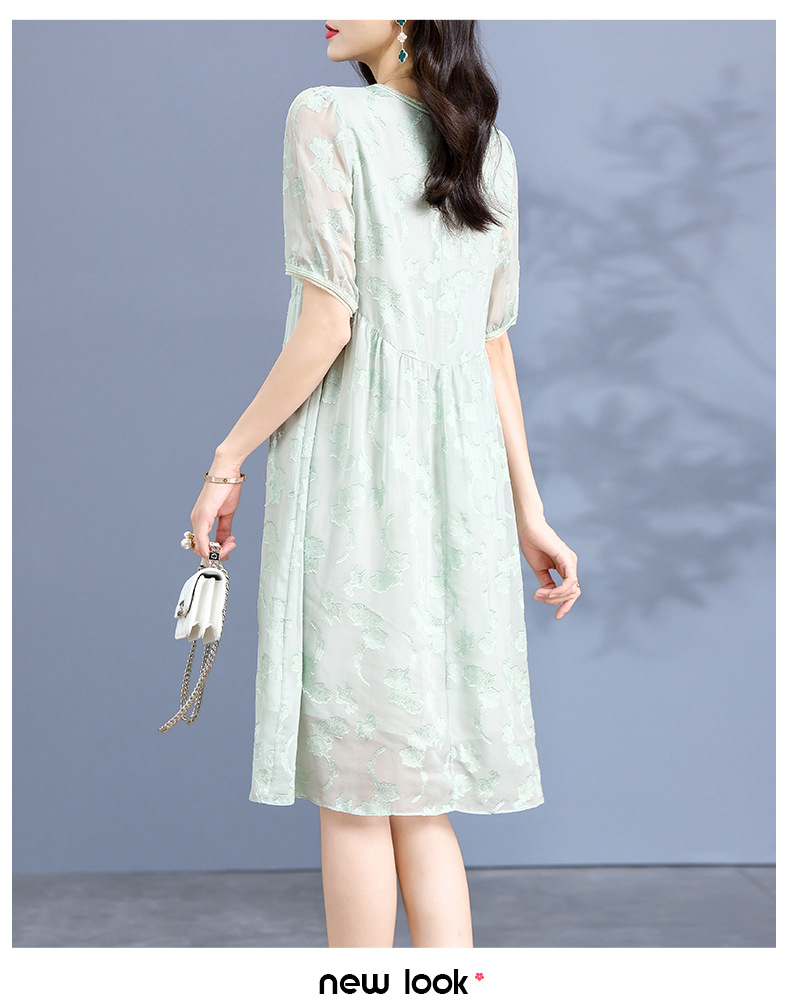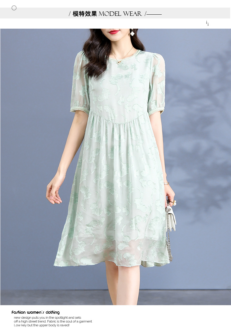 Chiếc đầm dành cho nữ, được làm từ chất liệu tơ lụa mỏng nhẹ và thoáng mát, phù hợp cho thời tiết ấm áp. Điểm nổi bật là những họa tiết được cắt tỉa và thêu một cách tinh tế trên nền vải. Thiết kế ôm nhẹ qua eo, tạo dáng thanh thoát và giúp tôn lên những đường nét cơ thể. Sản phẩm dễ dàng phối cùng giày sandal và túi xách để tạo nên một vẻ ngoài nhẹ nhàng, duyên dáng cho những dịp gặp gỡ hàng ngày. | Tên sản phẩm: Váy Đầm Liền Thân Nữ Chất Liệu Lụa Tơ Tằm Họa Tiết Hoa Hàng Mùa Hè - Thời Trang Nữ | Mã sản phẩm: K6977 - Giá: 3.010.000đ | Mã nhà sản xuất: SHDA-G06Hình ảnh sản phẩm