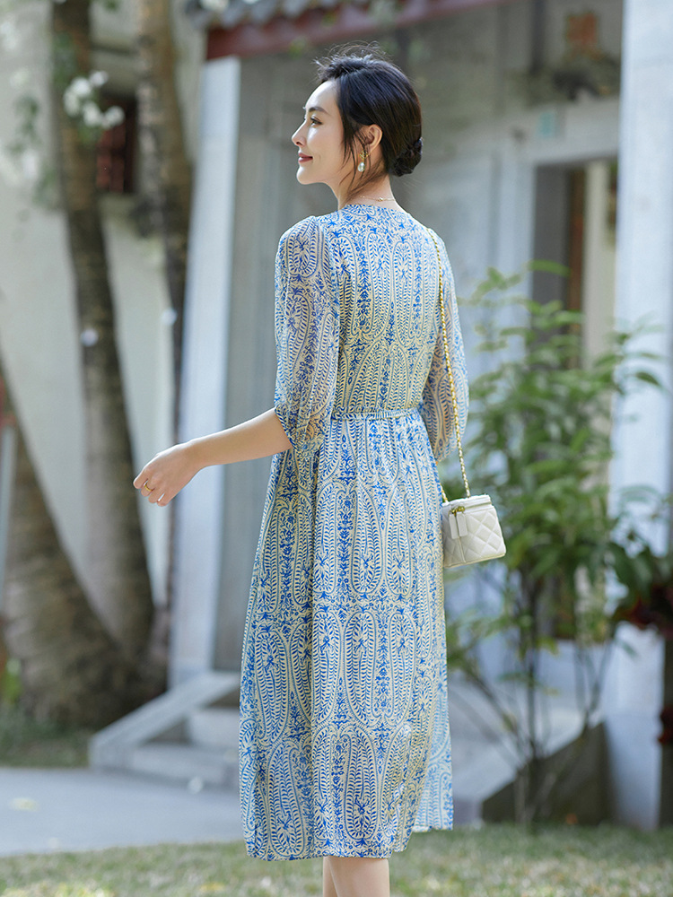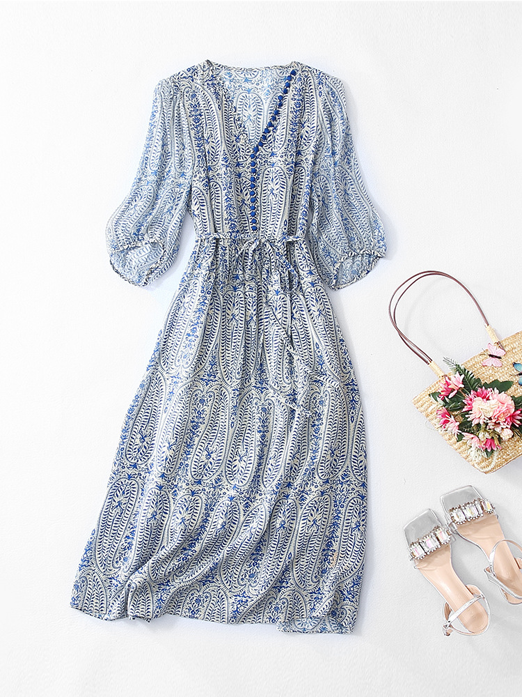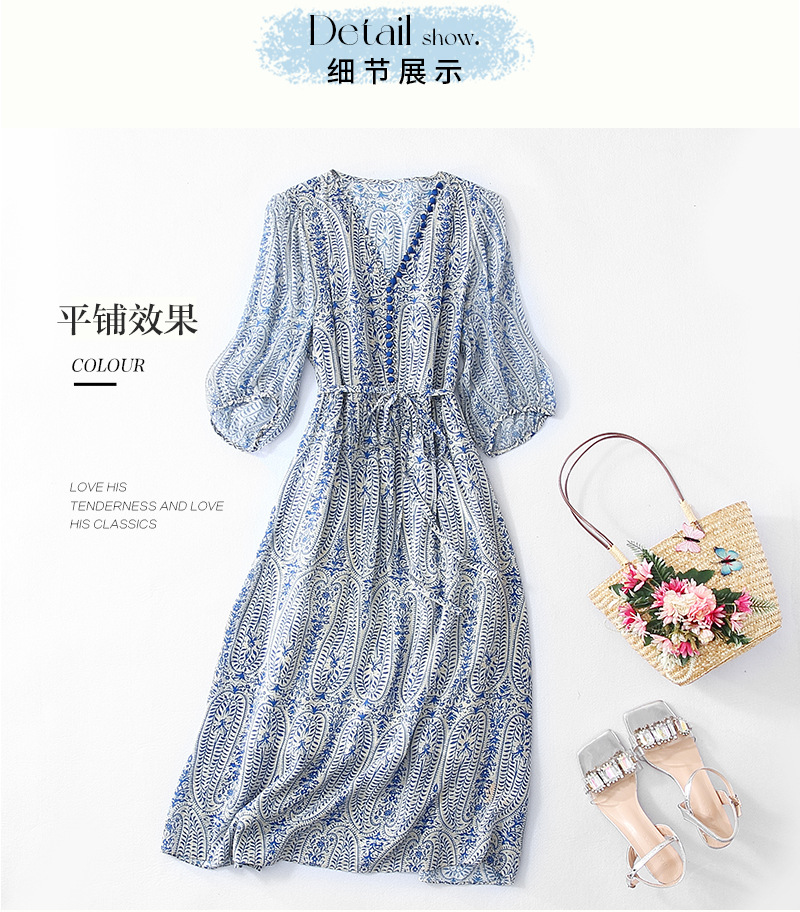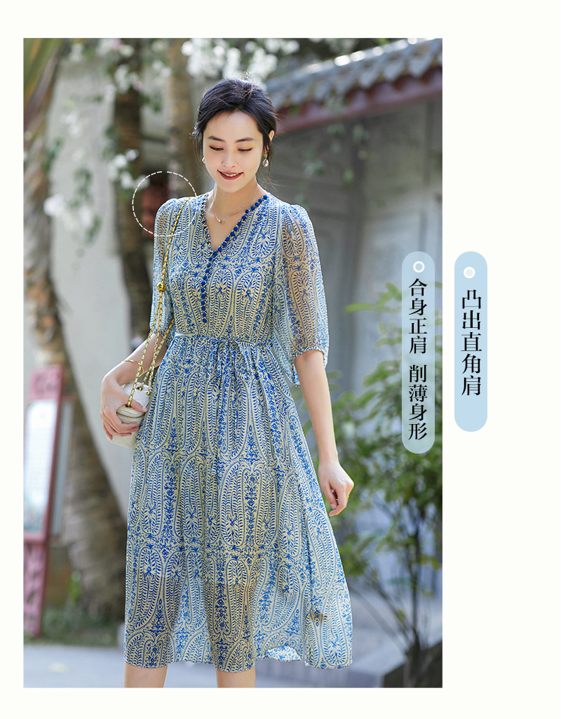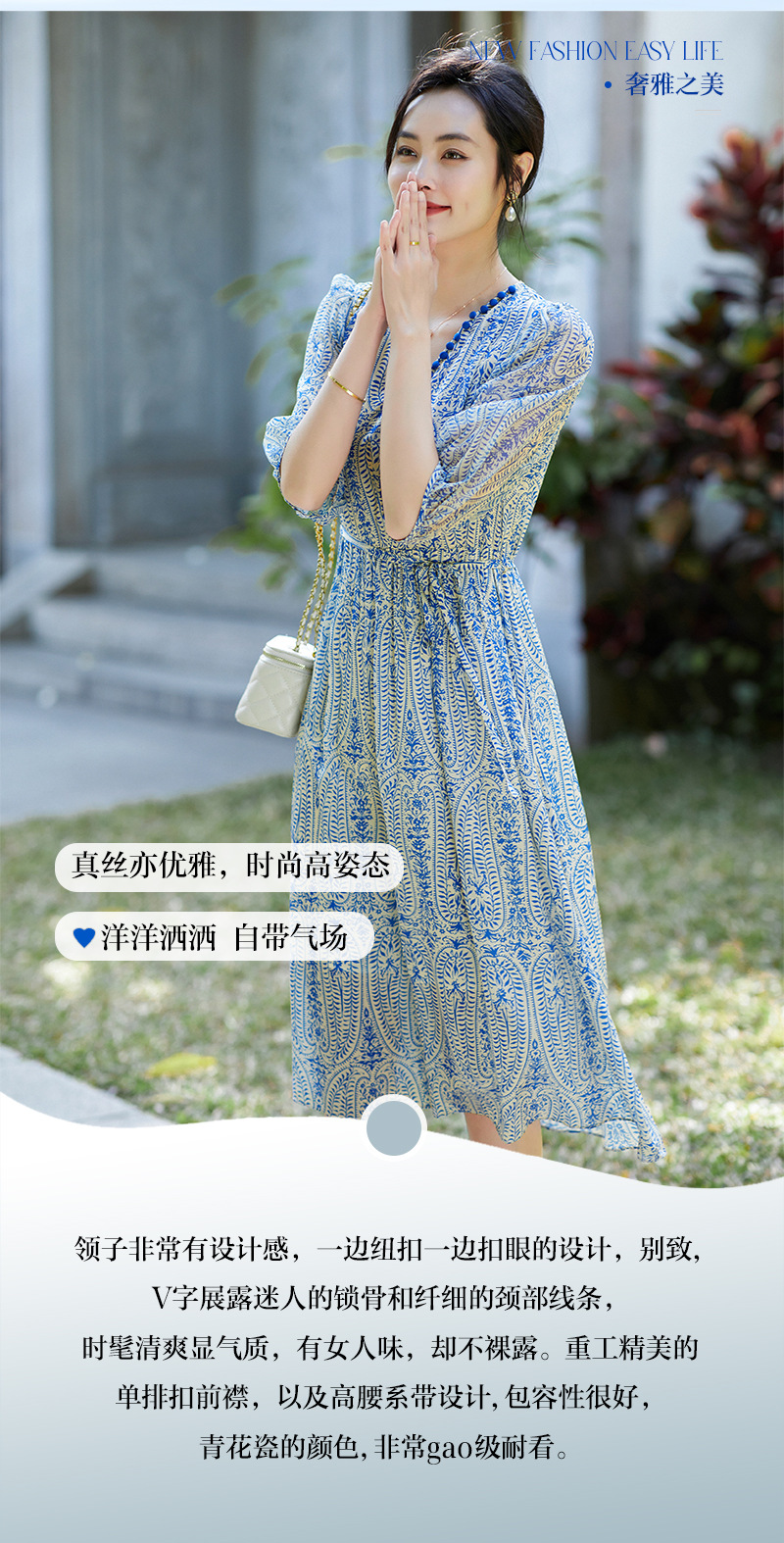 Chiếc đầm dành cho những ngày hè, được làm từ chất liệu lụa mềm mại, thoáng mát. Thiết kế cổ chữ V và tay ngắn tôn lên vẻ nữ tính. Form dáng xòe nhẹ phía dưới giúp che khuyết điểm và dễ dàng di chuyển. Hoa văn trên vải mang cảm hứng từ họa tiết gốm cổ điển, tạo điểm nhấn tinh tế. Sản phẩm phù hợp để mặc đi làm hoặc dự những buổi gặp mặt. | Tên sản phẩm: Váy Đầm Liền Thân Nữ Chất Liệu Lụa Tơ Tằm Dáng Chữ A Họa Tiết Hoa Cổ Chữ V Hàng Mùa Hè - Thời Trang Nữ | Mã sản phẩm: K6981 - Giá: 2.960.000đ | Mã nhà sản xuất: SHDA-G06Hình ảnh sản phẩm