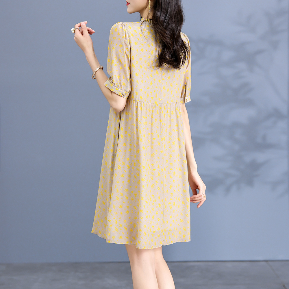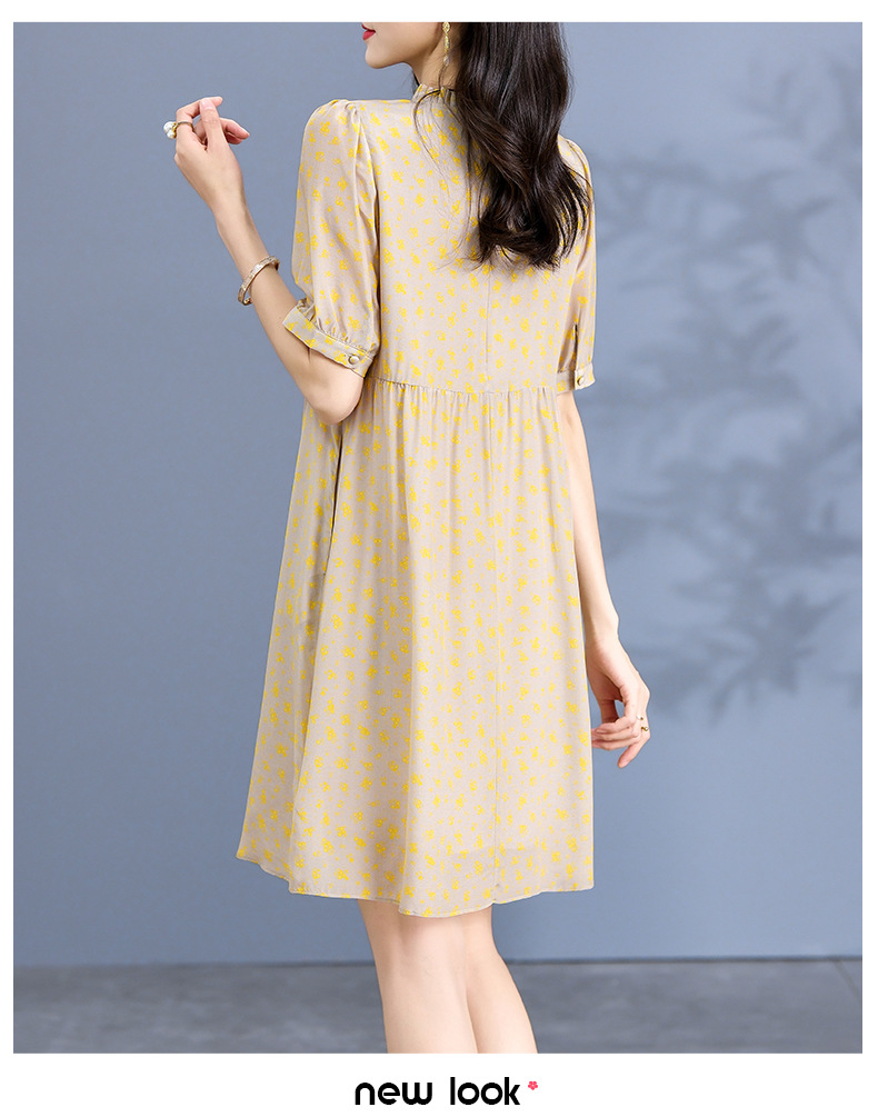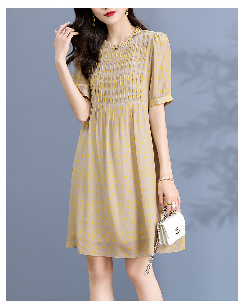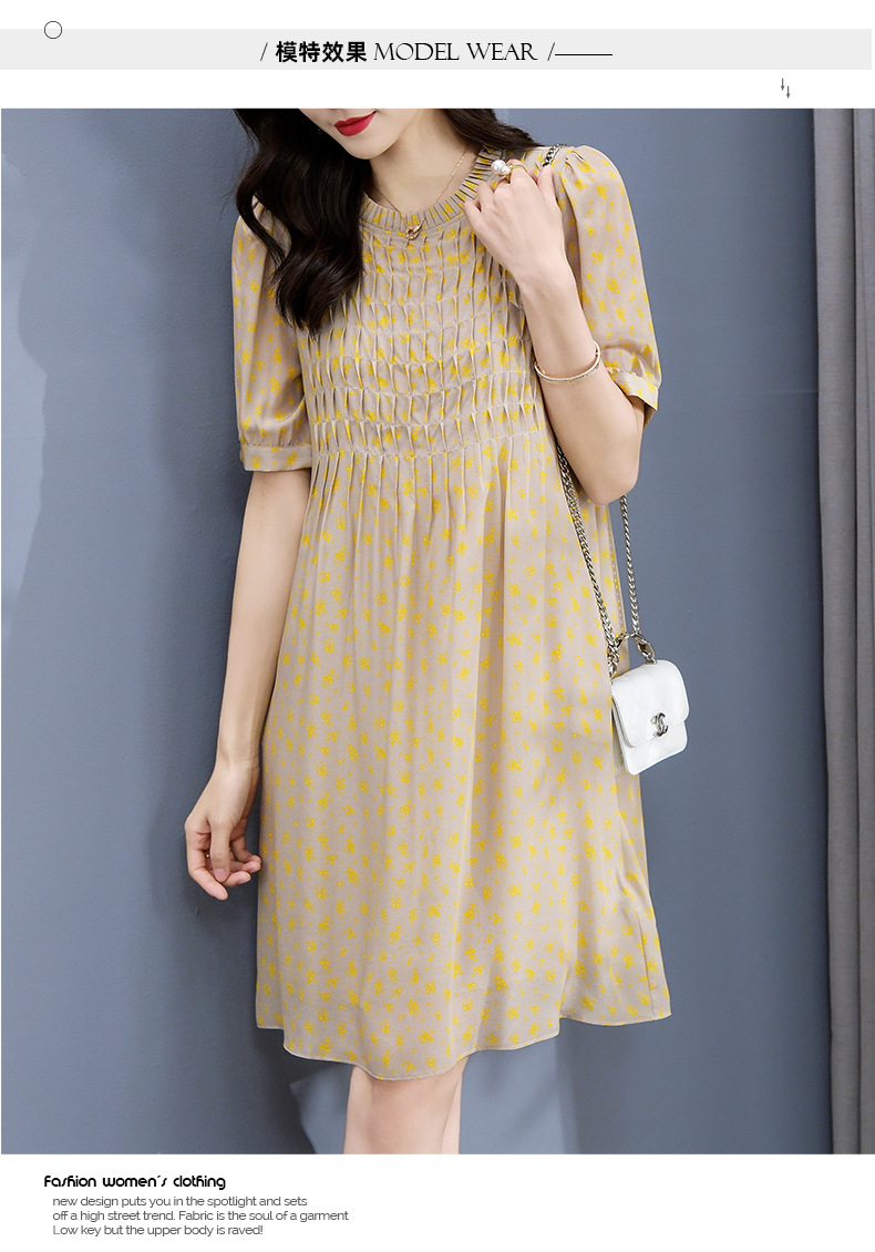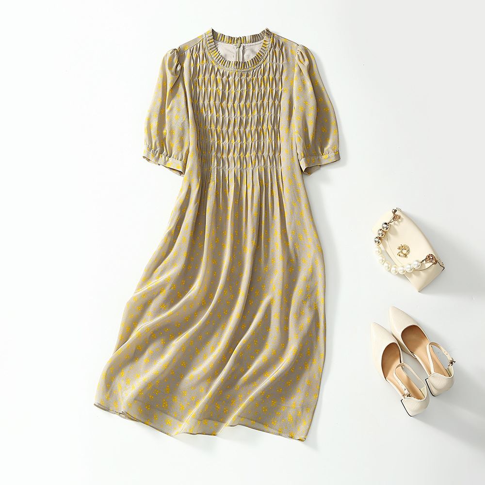 Chiếc váy mùa hè này có điểm nhấn là phần cổ áo và tay áo ngắn được trang trí đường viền hoa văn tinh xảo. Thân váy dáng chữ A với những nếp gấp được dập kỹ thuật, tạo nên vẻ đẹp mềm mại và nữ tính. Chất liệu lụa in họa tiết mang lại cảm giác mát mẻ, nhẹ nhàng và thoải mái khi mặc. Sản phẩm phù hợp để đi làm, dự tiệc hoặc tạo phong cách thanh lịch cho những dịp gặp mặt hàng ngày. | Tên sản phẩm: Váy Đầm Liền Thân Nữ Chất Liệu Lụa Tơ Tằm Dáng Chữ A Ngắn Tay Họa Tiết Hoa Hàng Mùa Hè - Thời Trang Nữ | Mã sản phẩm: K6986 - Giá: 2.760.000đ | Mã nhà sản xuất: SHDA-G06Hình ảnh sản phẩm