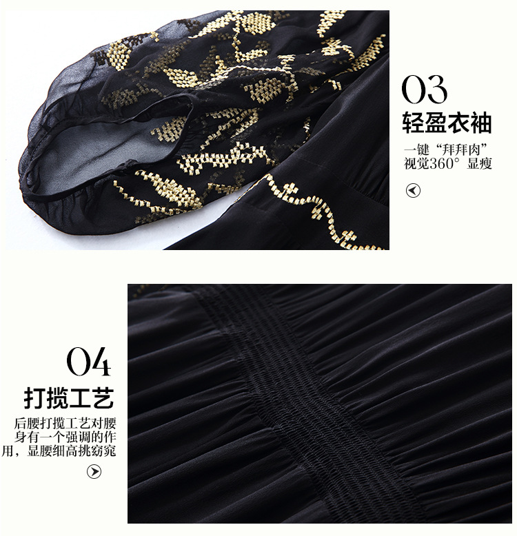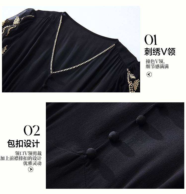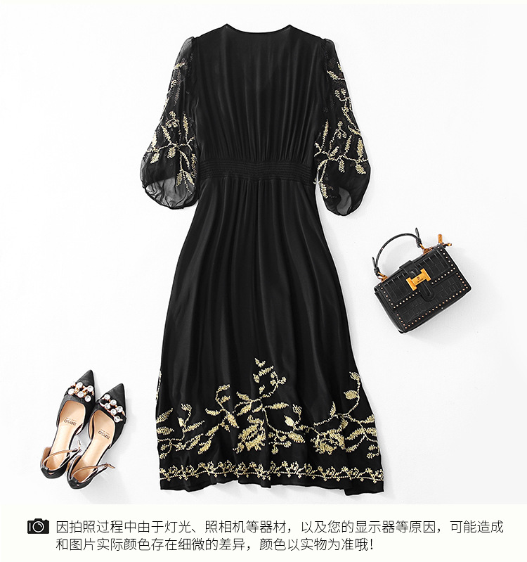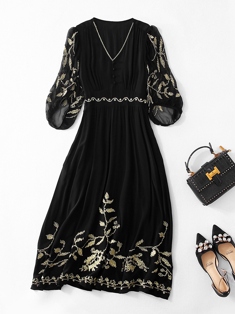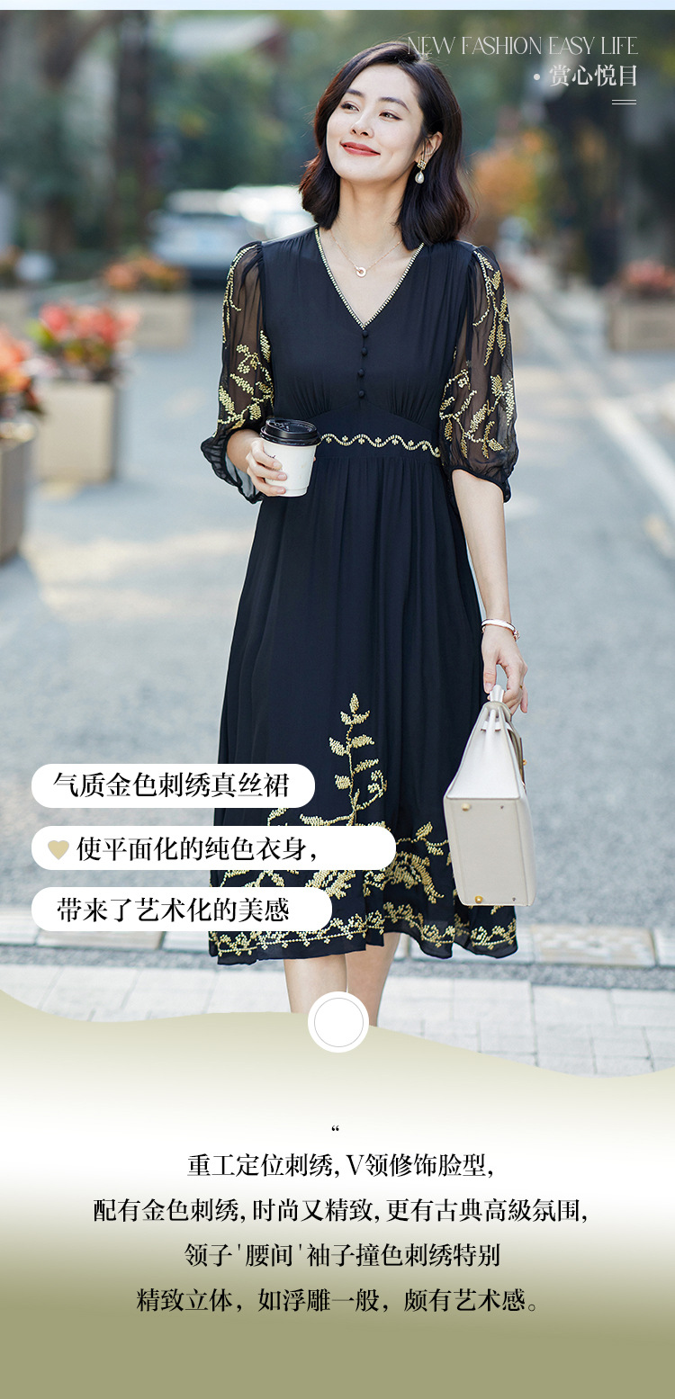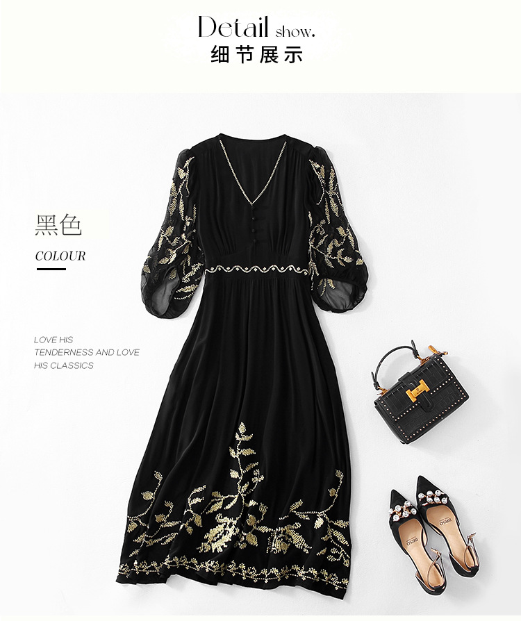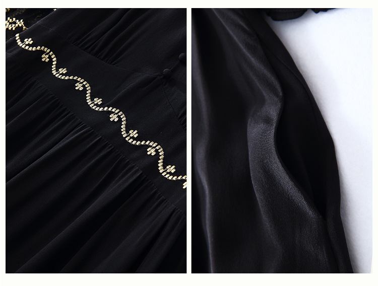 Đầm dáng dài qua gối, tôn dáng cho người mặc. Chất liệu lụa mềm mại, thoáng mát, điểm nhấn là những đường thêu tỉ mỉ tạo nên nét đẹp riêng. Kiểu dáng mang phong cách Pháp nhẹ nhàng, thanh lịch. Sản phẩm có màu đen dễ dàng phối đồ. Mặc kèm giày cao gót hoặc sandal để hoàn thiện set đồ. Giặt tay và phơi trong bóng râm để giữ form vải và độ bền màu. | Tên sản phẩm: Váy Đầm Liền Thân Nữ Chất Liệu Lụa Tơ Tằm Thêu Họa Tiết Hoa Hàng Mùa Hè - Thời Trang Nữ | Mã sản phẩm: K6993 - Giá: 3.690.000đ | Mã nhà sản xuất: SHDA-G06Hình ảnh sản phẩm