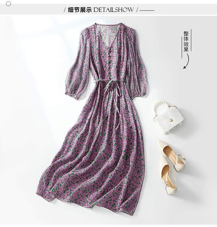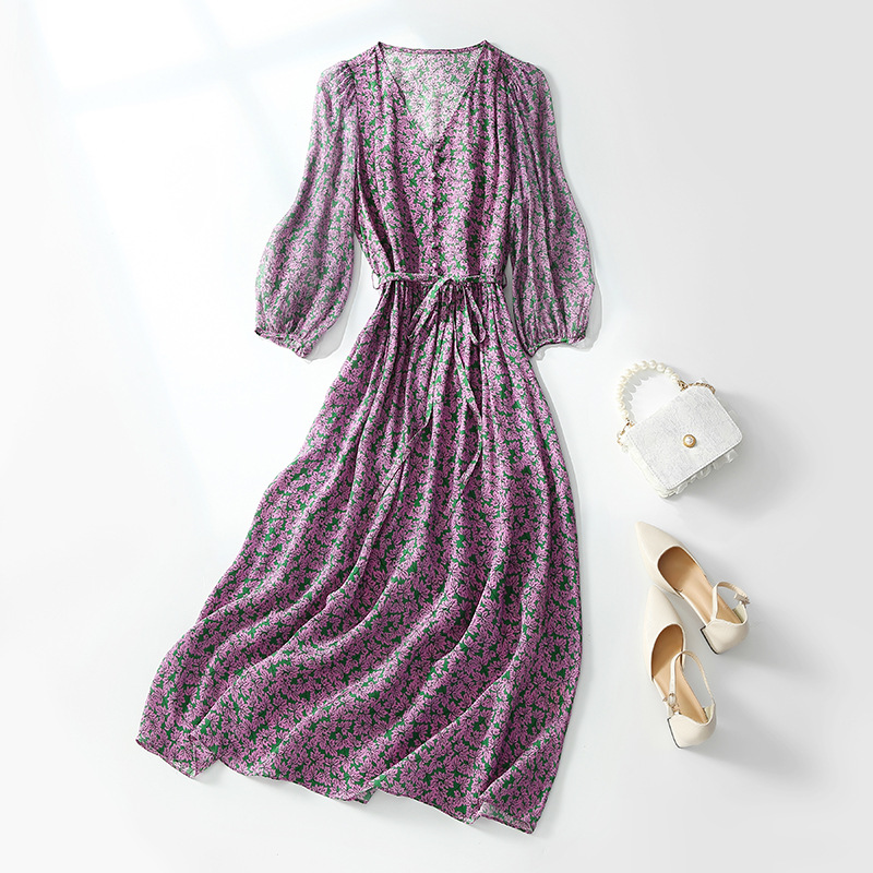Chiếc đầm dáng dài qua gối, điểm nổi bật với họa tiết in tinh tế trên chất liệu lụa tơ tằm mềm mại. Cổ chữ V tôn dáng, màu tím thời thượng dễ dàng kết hợp cùng nhiều loại phụ kiện. Sản phẩm phù hợp cho những dịp đi làm hoặc dạo phố. Khi giặt, nên vò nhẹ nhàng bằng nước lạnh và phơi ở nơi râm mát để giữ form vải và màu sắc được bền đẹp. | Tên sản phẩm: Váy Đầm Liền Thân Nữ Chất Liệu Lụa Tơ Tằm Họa Tiết Hoa Cổ Chữ V - Thời Trang Nữ | Mã sản phẩm: K7006 - Giá: 2.850.000đ | Mã nhà sản xuất: SHDA-G06Hình ảnh sản phẩm