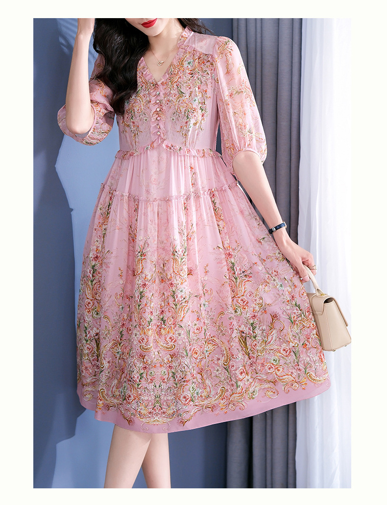 Đầm dáng dài qua gối được dệt từ sợi tự nhiên của tơ tằm, mang đến cảm giác mềm mại và thoáng mát khi mặc. Hoa văn trên váy được in tỉ mỉ, tạo điểm nhấn sinh động và tinh tế. Kiểu dáng ôn hòa, phù hợp cho nhiều dịp đi chơi hay gặp mặt. Sản phẩm dễ dàng phối cùng giày sandal hoặc giày bệt. Giặt nhẹ nhàng bằng tay với nước lạnh và phơi trong bóng râm để giữ form váy và màu sắc bền đẹp. | Tên sản phẩm: Váy Đầm Liền Thân Nữ Chất Liệu Lụa Tơ Tằm Họa Tiết Hoa - Thời Trang Nữ | Mã sản phẩm: K7014 - Giá: 3.420.000đ | Mã nhà sản xuất: SHDA-G06Hình ảnh sản phẩm