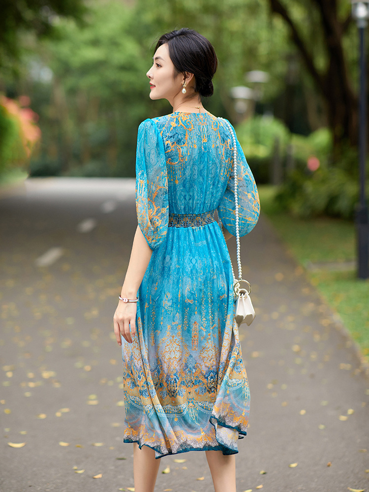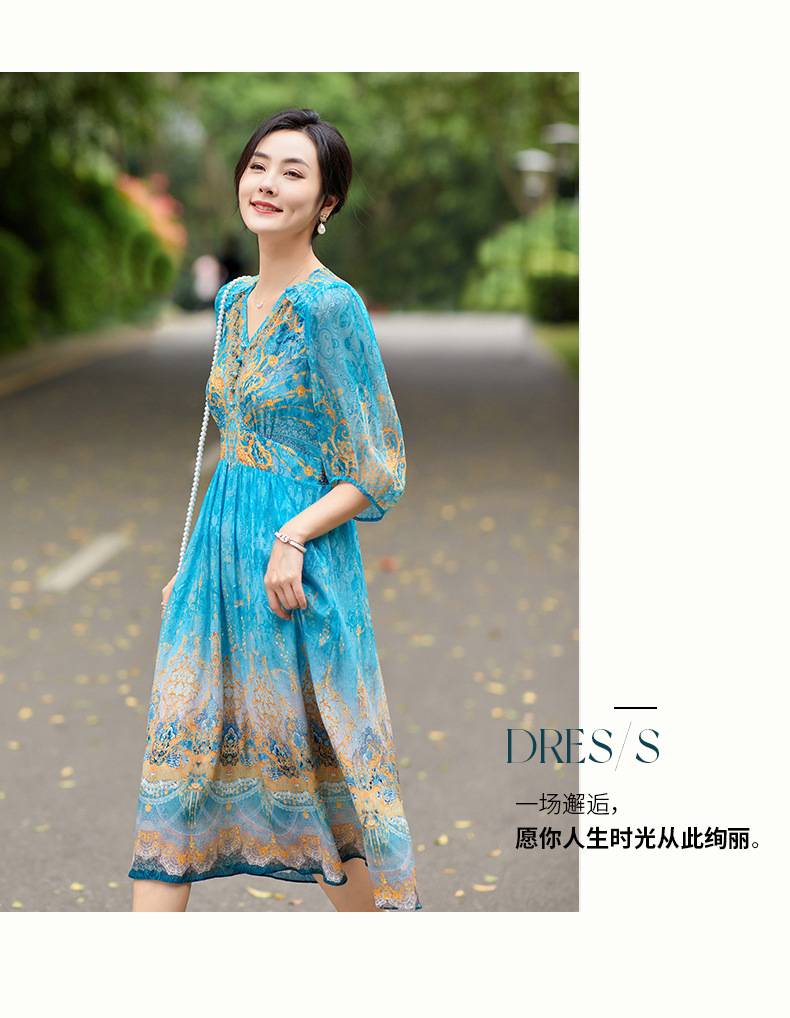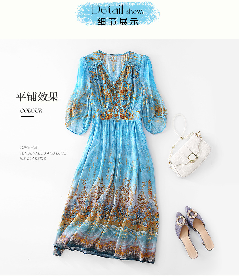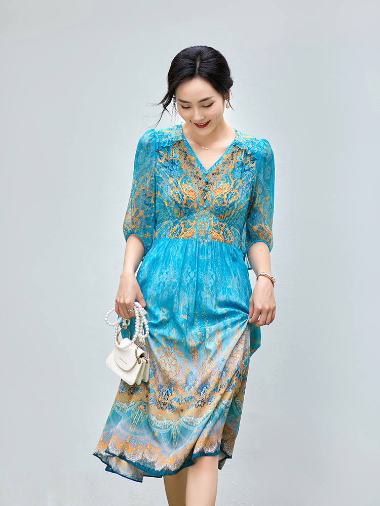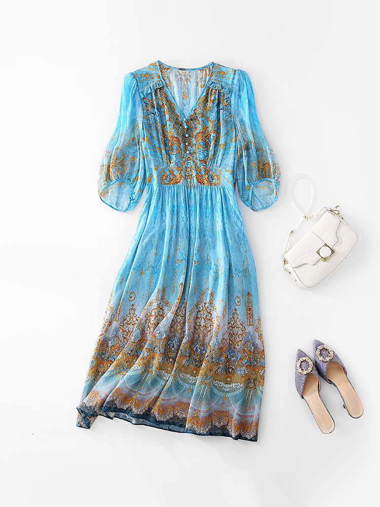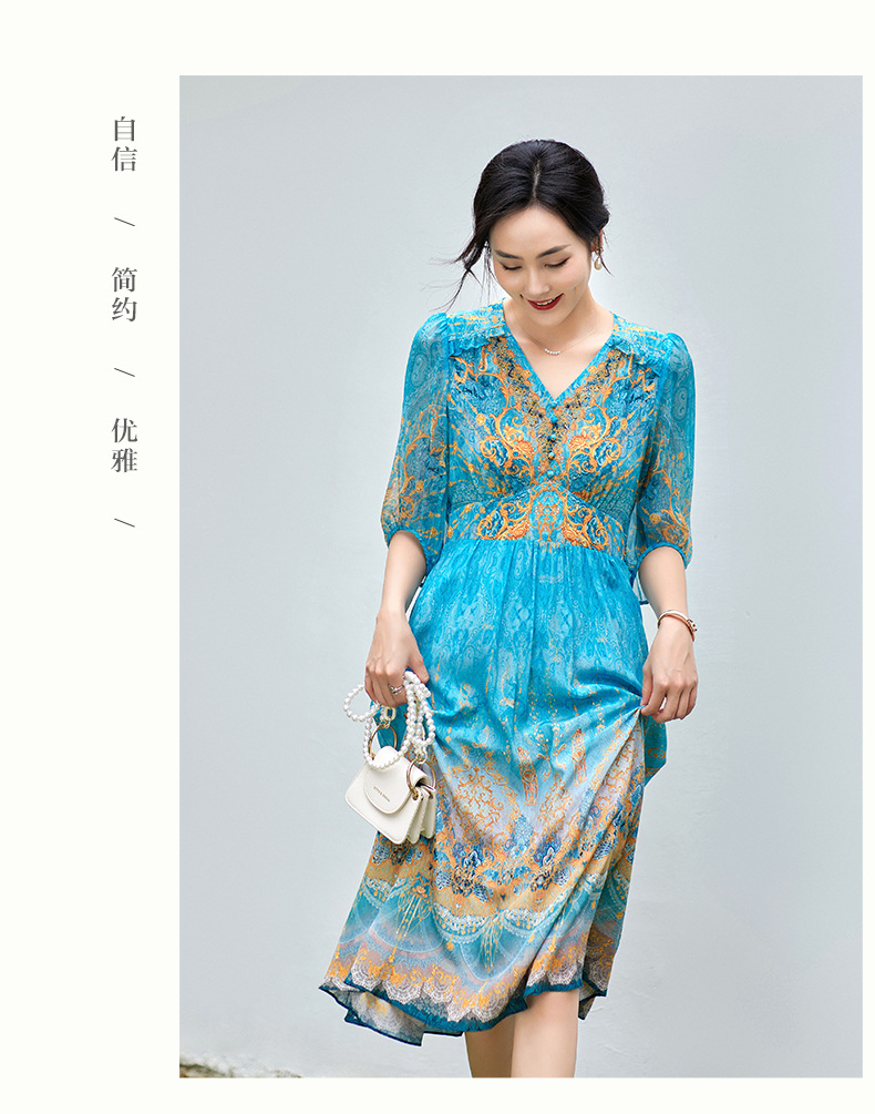 Chiếc váy mỏng nhẹ cho mùa hè, được dệt từ sợi tơ tằm tự nhiên, mang đến cảm giác mát mẻ và dễ chịu khi mặc. Thiết kế có phần eo ôn tôn dáng, kết hợp cùng những đường viền hoa văn xinh xắn ở cổ và tay áo. Hoa văn trên váy được in rõ nét với màu sắc tươi tắn. Sản phẩm phù hợp để đi làm, dự tiệc nhẹ hoặc dạo phố. Giặt tay trong nước lạnh và phơi trong bóng râm để giữ chất vải được bền lâu. | Tên sản phẩm: Váy Đầm Liền Thân Nữ Chất Liệu Lụa Tơ Tằm Họa Tiết Hoa Hàng Mùa Hè - Thời Trang Nữ | Mã sản phẩm: K7033 - Giá: 3.190.000đ | Mã nhà sản xuất: SHDA-G06Hình ảnh sản phẩm