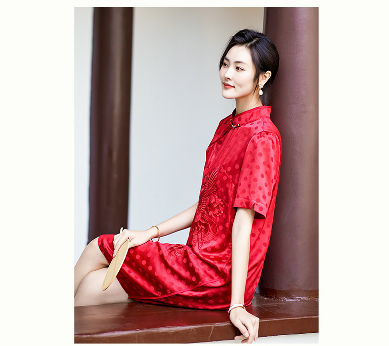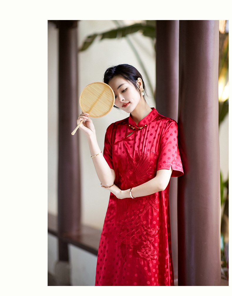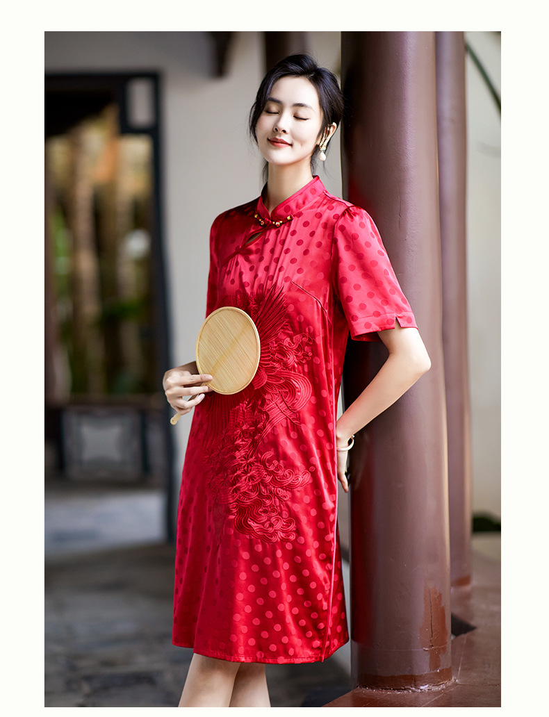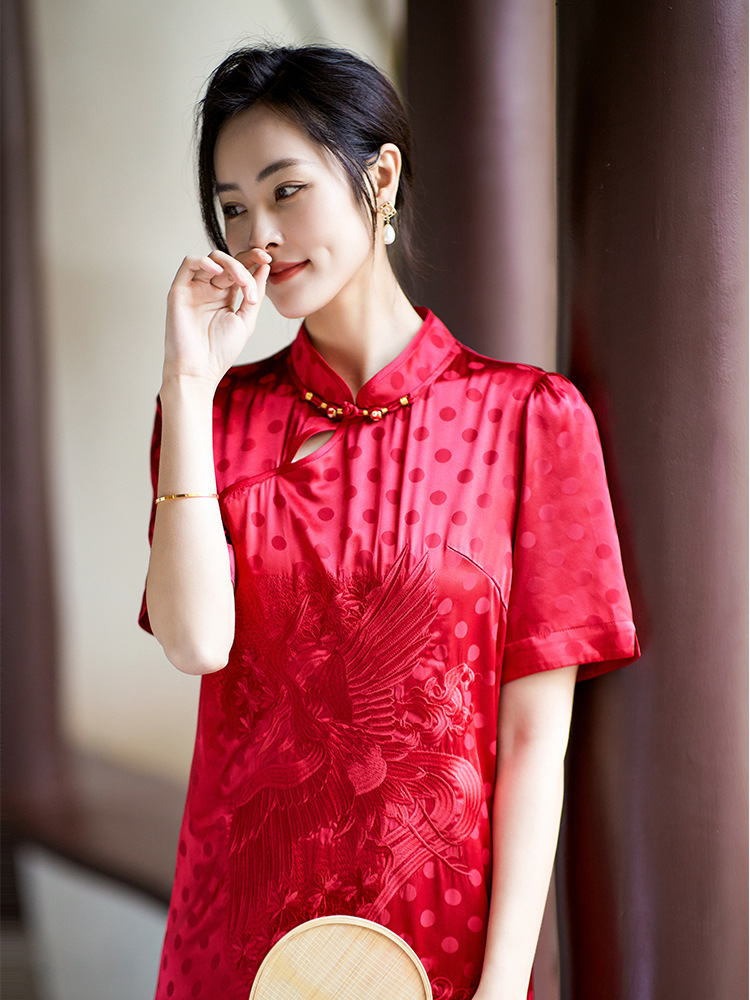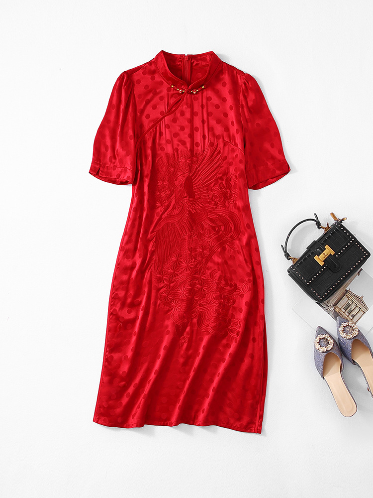 Chiếc đầm dáng A mang phong cách dân tộc, in họa tiết chấm bi cùng hình chim phượng được thêu tinh tế. Chất liệu lụa mềm mại, nhẹ nhàng giúp người mặc cảm thấy dễ chịu trong mùa hè. Kiểu dáng ôn nữ tính, phù hợp cho nhiều dịp khác nhau. Sản phẩm mặc kèm với giày guốc thấp đều phù hợp. Giặt tay và bảo quản nơi khô ráo để giữ form áo được bền lâu. | Tên sản phẩm: Váy Đầm Liền Thân Nữ Chất Liệu Lụa Tơ Tằm Dáng Chữ A Thêu Họa Tiết Hoa Hàng Mùa Hè - Thời Trang Nữ | Mã sản phẩm: K7044 - Giá: 3.560.000đ | Mã nhà sản xuất: SHDA-G06Hình ảnh sản phẩm