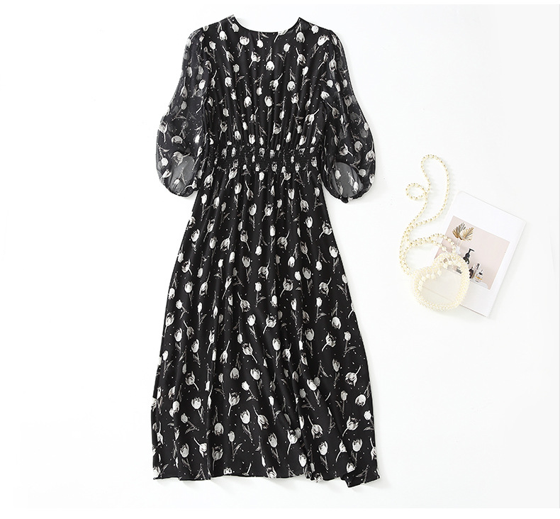 Chiếc đầm được dệt hoàn toàn từ chất liệu tơ lụa mềm mại, mang đến cảm giác dễ chịu khi mặc. Họa tiết hoa hồng kết hợp hai màu đen trắng tinh tế, điểm xuyết trên nền vải tạo nên vẻ đẹp thanh lịch. Thiết kế ôm nhẹ vòng eo giúp tôn dáng người mặc. Sản phẩm phù hợp cho những buổi gặp mặt hoặc sự kiện nhẹ nhàng. Có thể giặt tay nhẹ nhàng và phơi trong bóng mát để giữ form vải lâu bền. | Tên sản phẩm: Váy Đầm Liền Thân Nữ Chất Liệu Lụa Tơ Tằm Họa Tiết Hoa - Thời Trang Nữ | Mã sản phẩm: K7045 - Giá: 2.960.000đ | Mã nhà sản xuất: SHDA-G06Hình ảnh sản phẩm