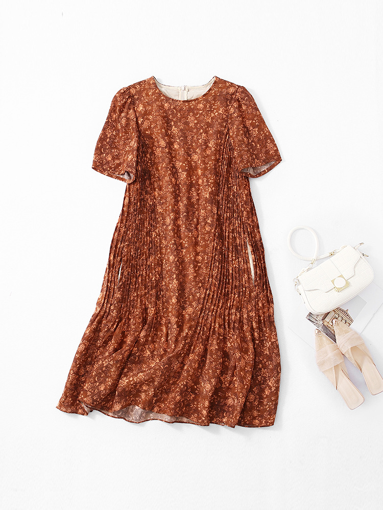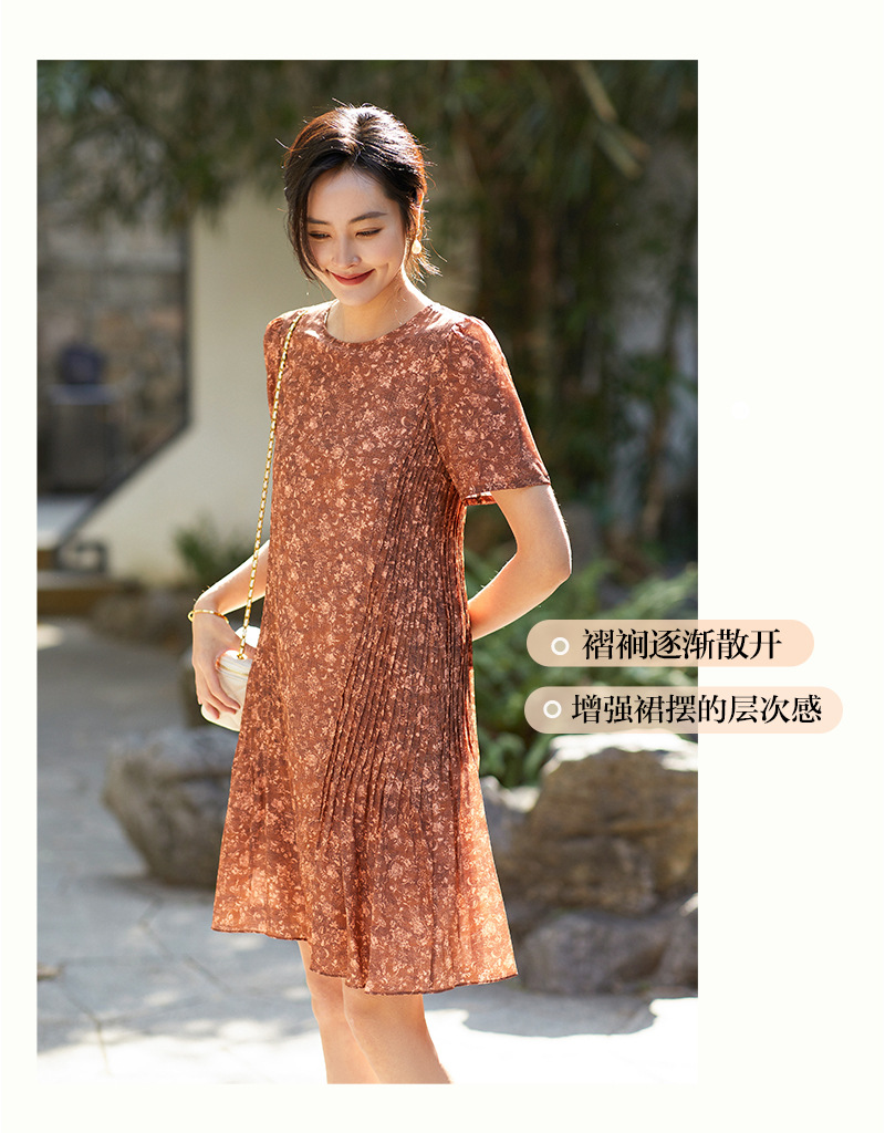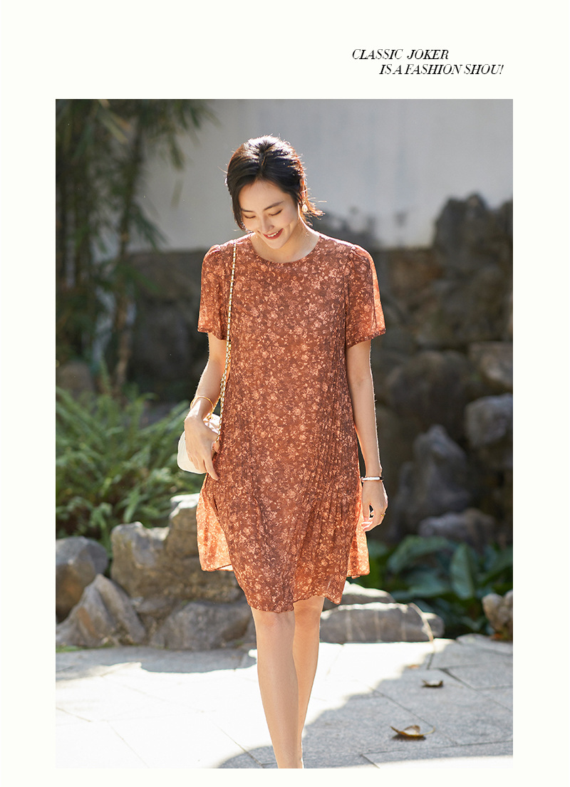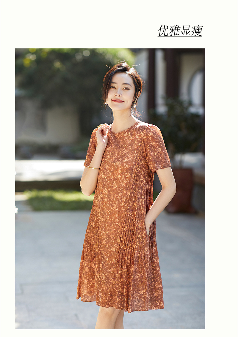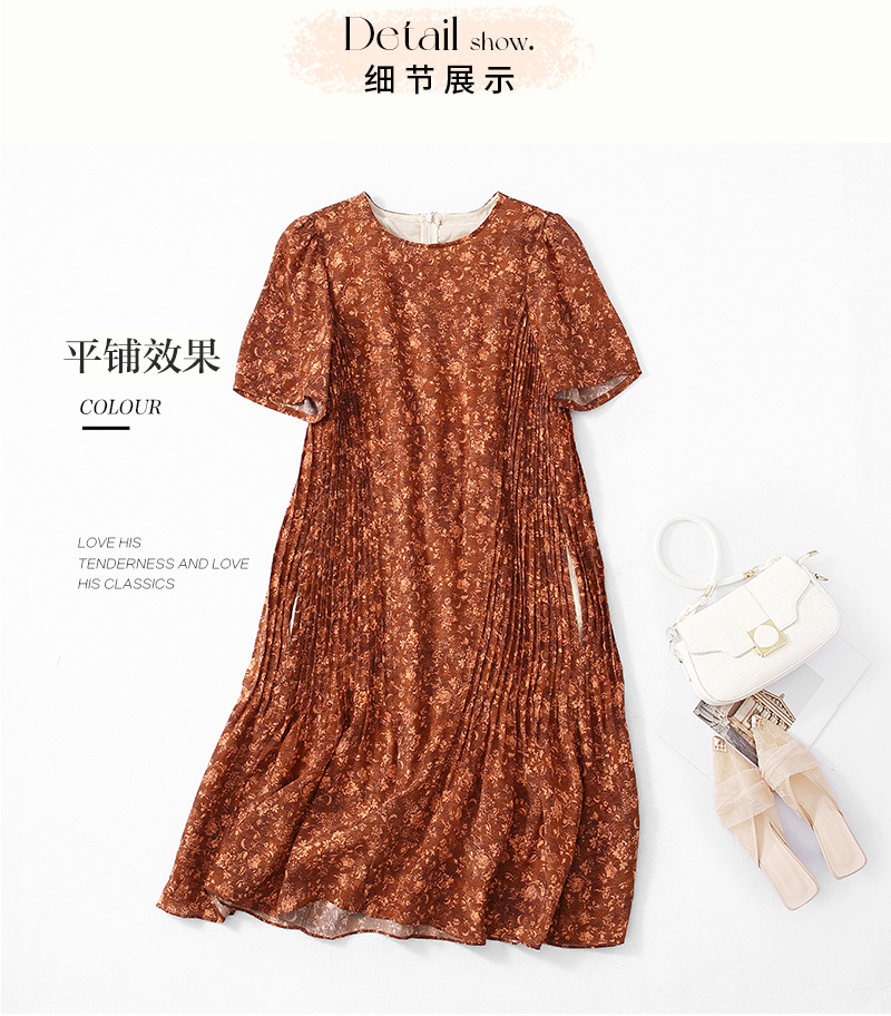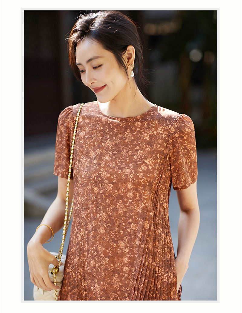 Chiếc đầm này được tạo nên từ chất liệu lụa mềm mại, in họa tiết độc đáo. Điểm nhấn đặc biệt đến từ những đường xếp ly được ép kỹ thuật, tạo nên kết cấu dày dặn và form dáng đầm suôn thanh lịch. Sản phẩm phù hợp để mặc đi làm hoặc dự những buổi gặp mặt. Bạn chỉ cần giặt nhẹ và phơi khô tự nhiên để giữ vẻ đẹp lâu bền cho trang phục. | Tên sản phẩm: Váy Đầm Liền Thân Nữ Chất Liệu Lụa Tơ Tằm Họa Tiết Hoa - Thời Trang Nữ | Mã sản phẩm: K7046 - Giá: 3.610.000đ | Mã nhà sản xuất: SHDA-G06Hình ảnh sản phẩm