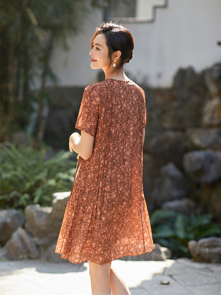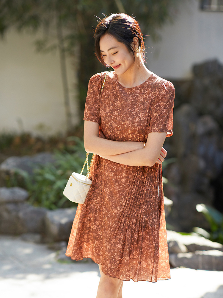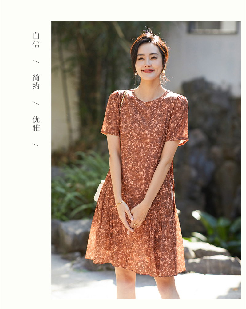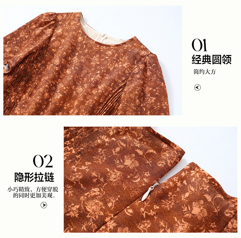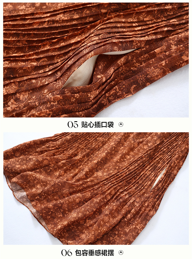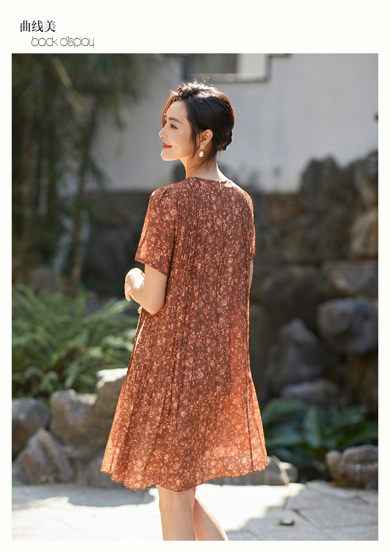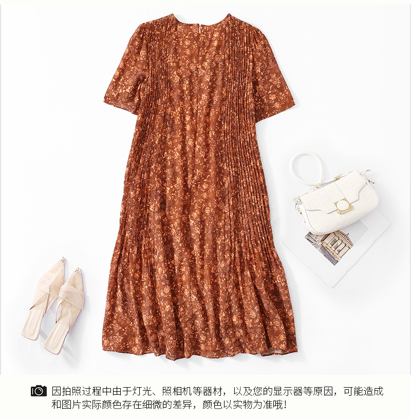 Chiếc đầm này được tạo nên từ chất liệu lụa mềm mại, in họa tiết độc đáo. Điểm nhấn đặc biệt đến từ những đường xếp ly được ép kỹ thuật, tạo nên kết cấu dày dặn và form dáng đầm suôn thanh lịch. Sản phẩm phù hợp để mặc đi làm hoặc dự những buổi gặp mặt. Bạn chỉ cần giặt nhẹ và phơi khô tự nhiên để giữ vẻ đẹp lâu bền cho trang phục. | Tên sản phẩm: Váy Đầm Liền Thân Nữ Chất Liệu Lụa Tơ Tằm Họa Tiết Hoa - Thời Trang Nữ | Mã sản phẩm: K7046 - Giá: 3.610.000đ | Mã nhà sản xuất: SHDA-G06Hình ảnh sản phẩm
