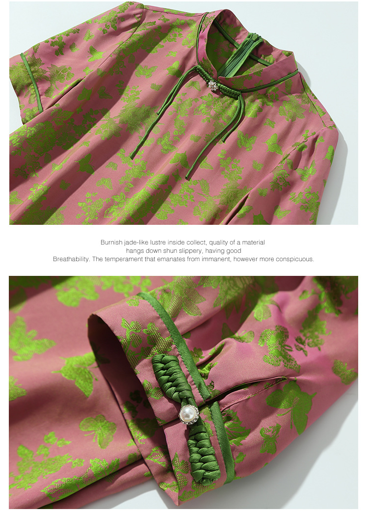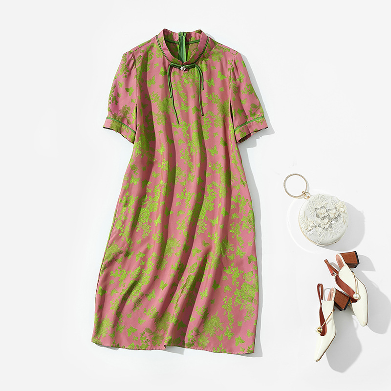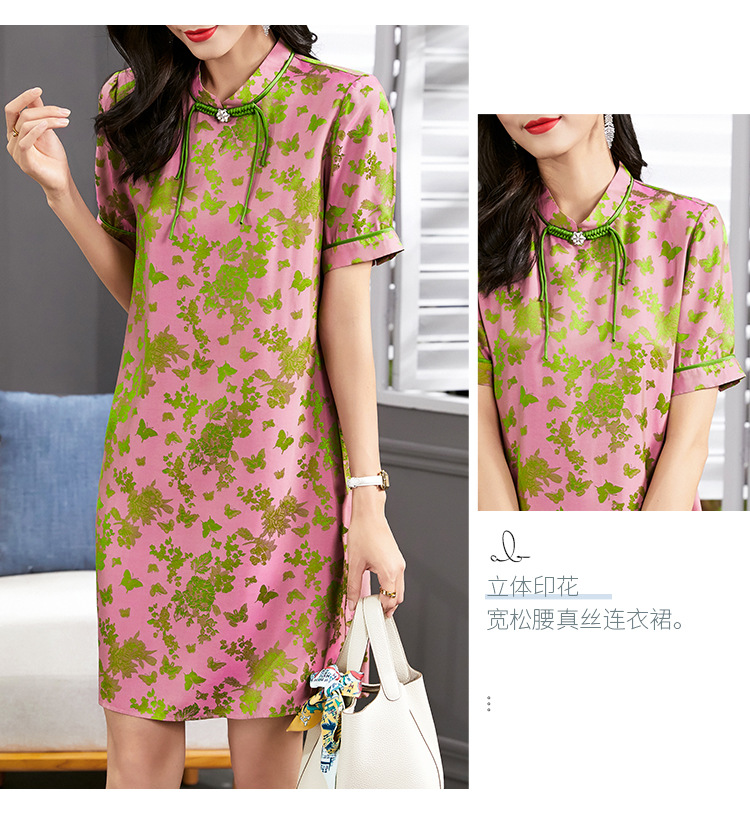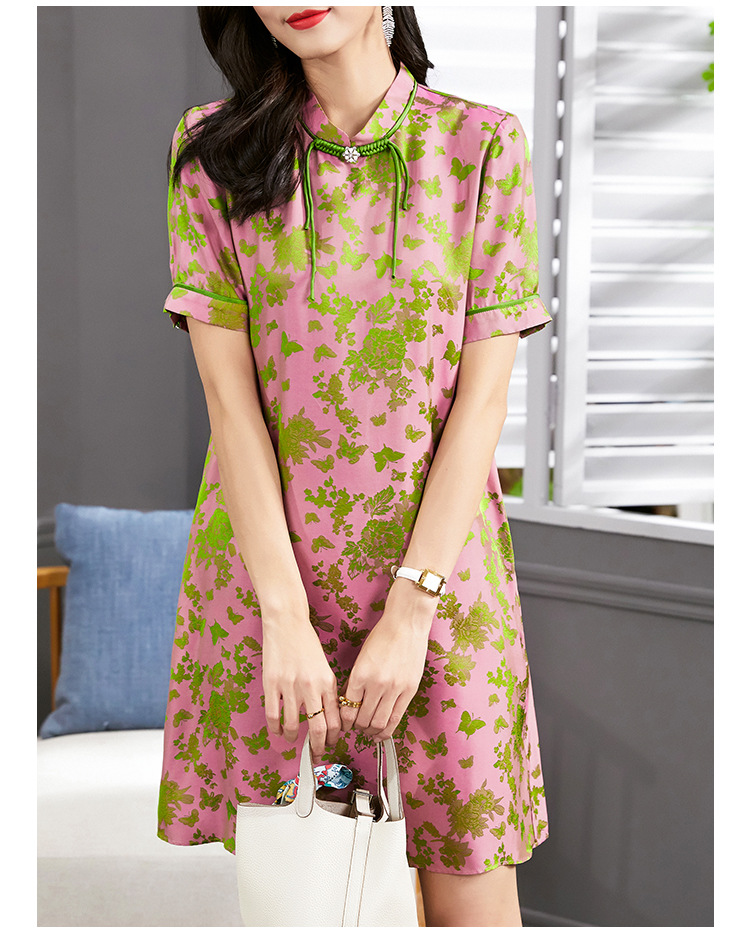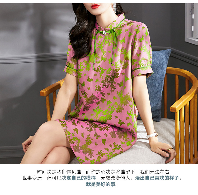 Chiếc áo dài ngắn tay này mang nét đẹp cổ điển, được dệt từ chất liệu tơ tằm tự nhiên tạo nên những hoa văn nổi rất tinh xảo. Thiết kế cổ đứng ôm nhẹ, điểm nhấn là hàng cúc bấm thủ công đậm chất truyền thống. Form áo rộng rãi thoải mái, mang lại cảm giác mát mẻ, nhẹ nhàng khi mặc. Sản phẩm phù hợp cho những dịp thường ngày hoặc khi bạn muốn tìm một phong cách nhẹ nhàng, thanh lịch. | Tên sản phẩm: Váy Đầm Liền Thân Nữ Chất Liệu Lụa Tơ Tằm Ngắn Tay Họa Tiết Hoa Phục Cổ Cổ Điển - Thời Trang Nữ | Mã sản phẩm: K7053 - Giá: 2.640.000đ | Mã nhà sản xuất: SHDA-G06Hình ảnh sản phẩm