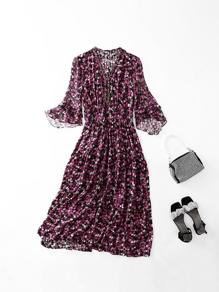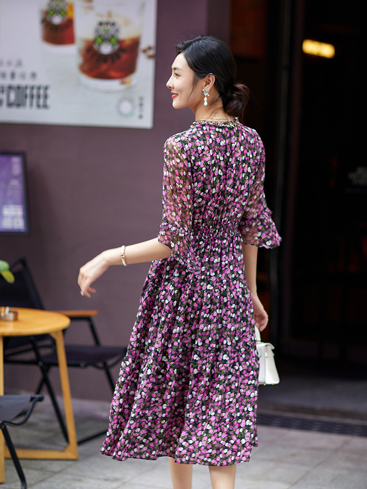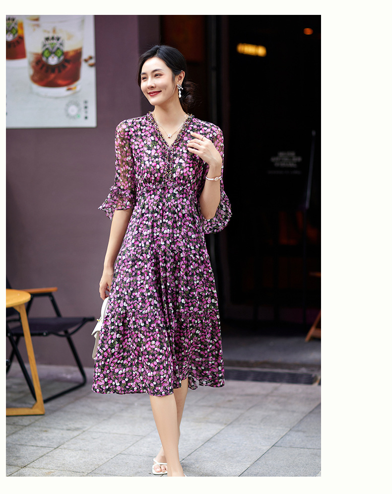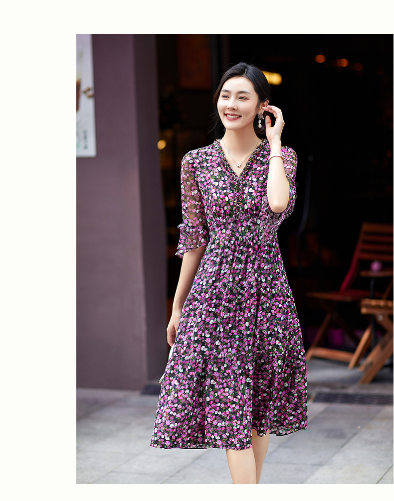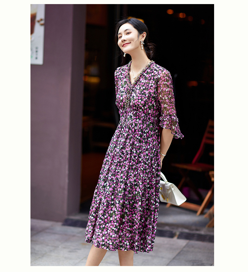 Chiếc đầm thời trang này mang phong cách châu Âu hiện đại. Chất liệu lụa mềm mại có họa tiết hoa nhỏ tinh tế. Thiết kế ôm eo giúp tôn dáng người mặc, kết hợp tay áo ngắn kiểu cánh sen duyên dáng. Sản phẩm phù hợp cho nhiều dịp khác nhau như dạo phố, gặp gỡ bạn bè. Có thể giặt tay nhẹ nhàng và phơi trong bóng mát để giữ form áo và màu sắc lâu bền. | Tên sản phẩm: Váy Đầm Liền Thân Nữ Chất Liệu Lụa Tơ Tằm Họa Tiết Hoa - Thời Trang Nữ | Mã sản phẩm: K7056 - Giá: 3.690.000đ | Mã nhà sản xuất: SHDA-G06Hình ảnh sản phẩm