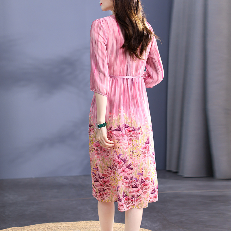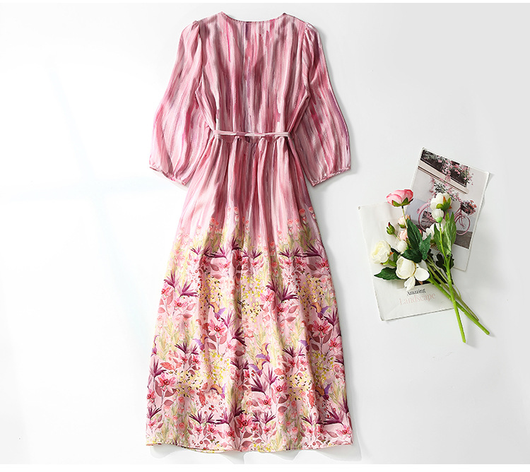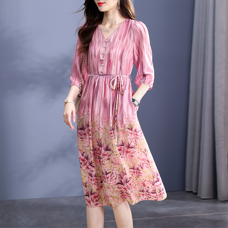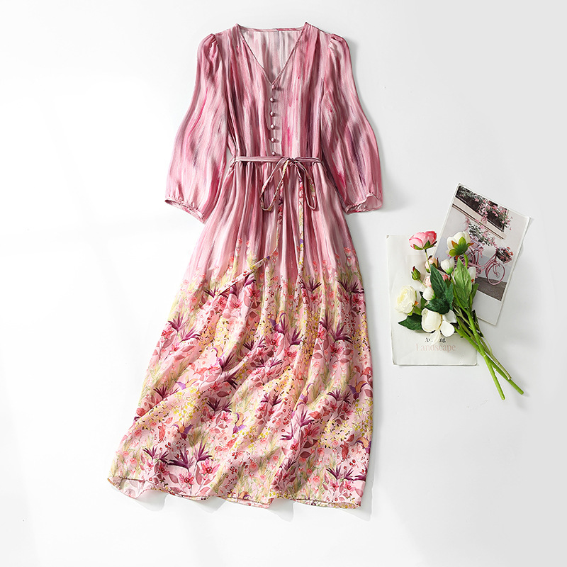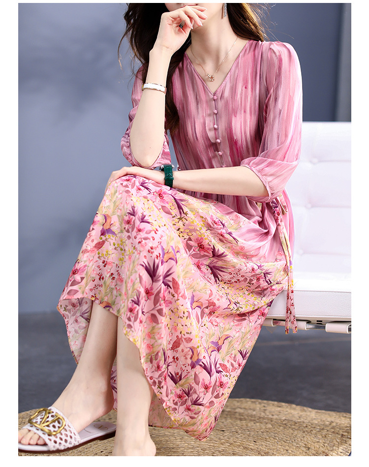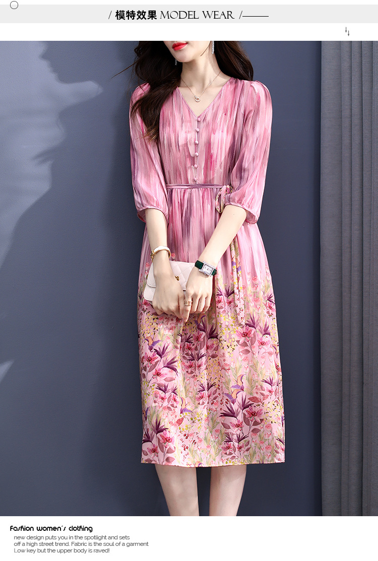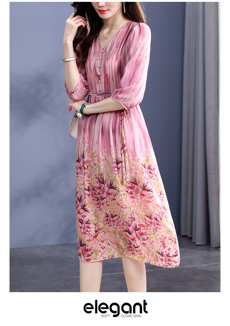 Chiếc váy dành cho nữ với chất liệu lụa mềm mại, thoáng mát, thích hợp cho thời tiết ấm áp. Thiết kế có phần cổ chữ V tạo cảm giác thanh thoát, kết hợp eo thắt dây giúp tôn lên đường nét cơ thể. Tay áo dài ba phần tay mang đến vẻ ngoại hình lịch sự và nhẹ nhàng. Kiểu dáng dáng dài vừa phải, phù hợp cho nhiều dịp sinh hoạt hằng ngày. Có thể mặc kèm với giày dép đơn giản để tạo nên một bộ trang phục hoàn chỉnh. | Tên sản phẩm: Váy Đầm Liền Thân Nữ Chất Liệu Lụa Tơ Tằm Cổ Chữ V Hàng Mùa Hè - Thời Trang Nữ | Mã sản phẩm: K7100 - Giá: 2.850.000đ | Mã nhà sản xuất: SHDA-G06Hình ảnh sản phẩm
