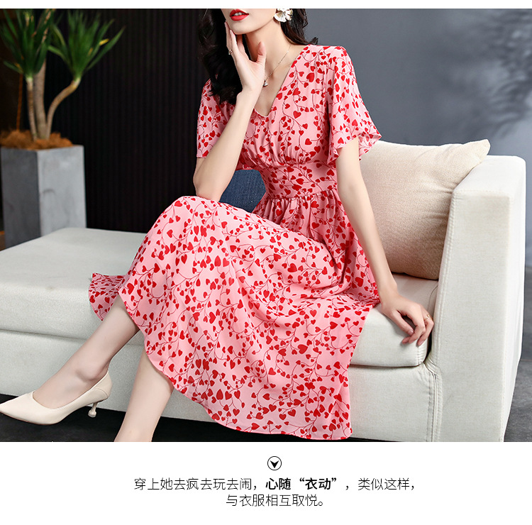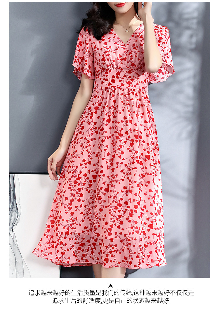 Chiếc đầm dáng dài qua gối này có điểm nhấn là họa tiết hình trái tim xinh xắn in khắp thân váy. Chất vải mềm mại, tạo cảm giác dễ chịu khi mặc. Kiểu dáng ôn hòa, phù hợp cho nhiều dịp đi chơi hay gặp gỡ hằng ngày. Cách phối đồ đơn giản, bạn có thể kết hợp cùng giày bệt hoặc sandal để có vẻ ngoại hình tươi tắn và thoải mái. | Tên sản phẩm: Váy Đầm Liền Thân Nữ Họa Tiết Hoa - Thời Trang Nữ | Mã sản phẩm: K7102 - Giá: 1.680.000đ | Mã nhà sản xuất: SHDA-G05Hình ảnh sản phẩm