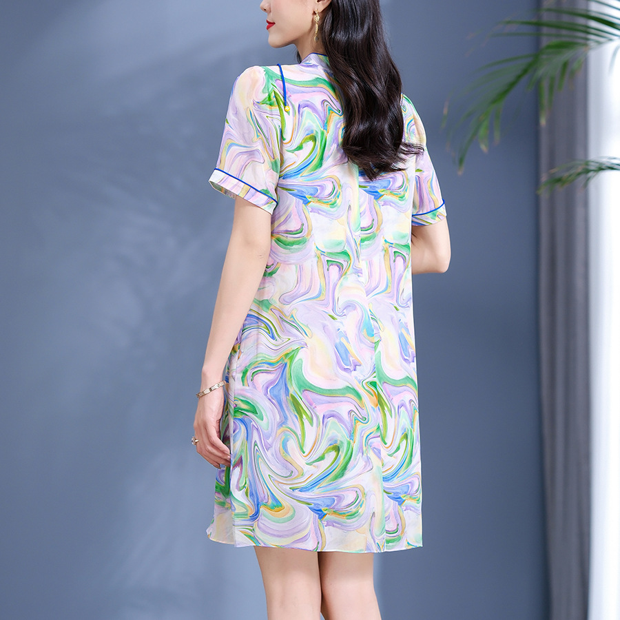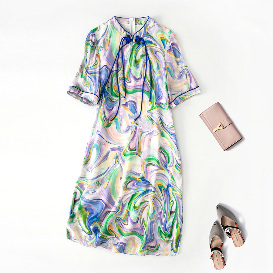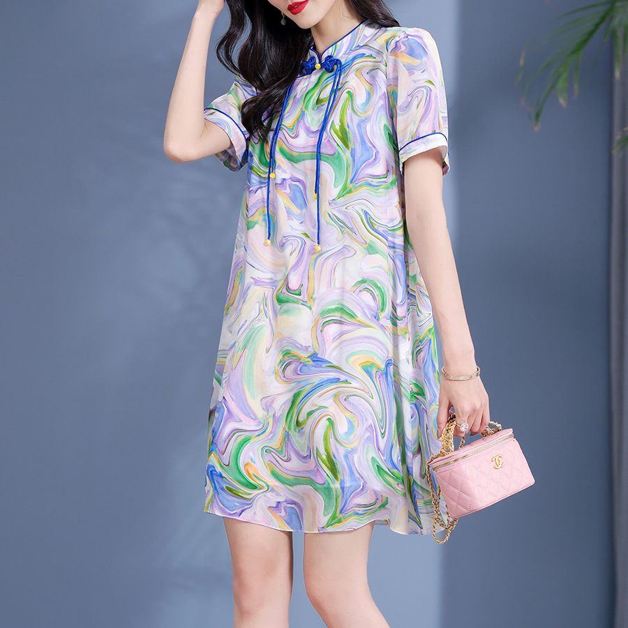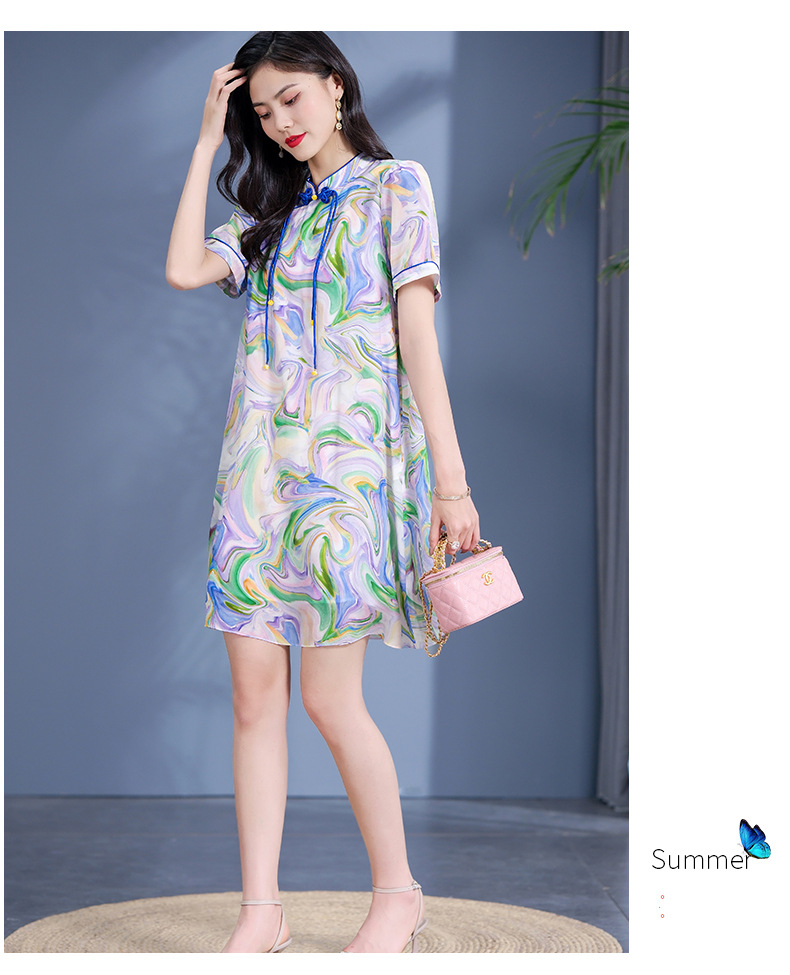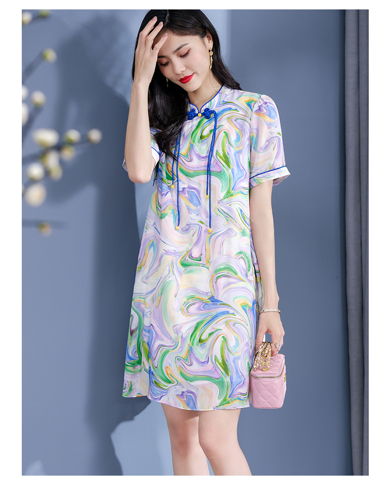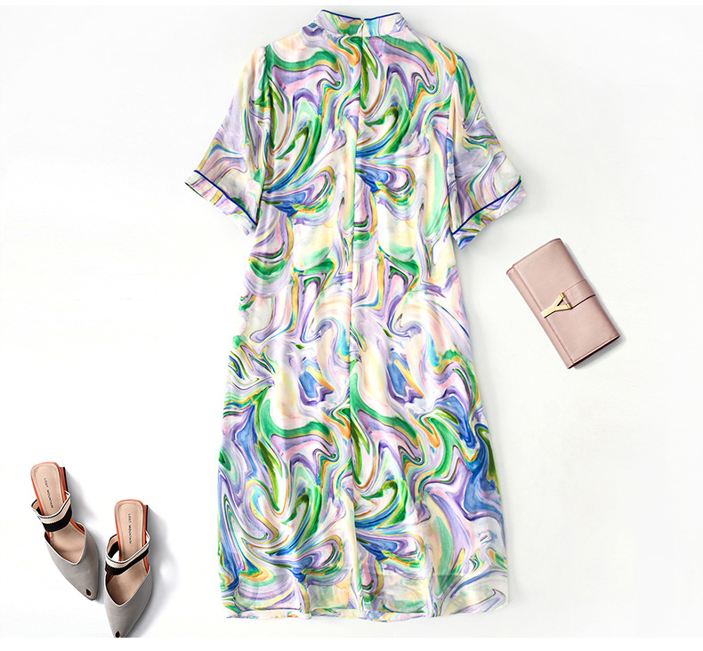Áo dài cách tân với điểm nhấn là hàng khuy cài cổ xinh xắn. Chất vải lụa mềm mại tạo nên những đường vân sóng nước màu hồng phớt và xanh nhạt hài hòa. Kiểu dáng ôn nữ tính, tôn lên đường nét cơ thể. Sản phẩm phù hợp để mặc trong các buổi tiệc nhẹ hoặc sự kiện. Giặt tay nhẹ nhàng và phơi nơi râm mát để giữ dáng áo và màu sắc được bền đẹp. | Tên sản phẩm: Váy Đầm Liền Thân Nữ Chất Liệu Lụa Tơ Tằm - Thời Trang Nữ | Mã sản phẩm: K7122 - Giá: 2.650.000đ | Mã nhà sản xuất: SHDA-G06Hình ảnh sản phẩm
