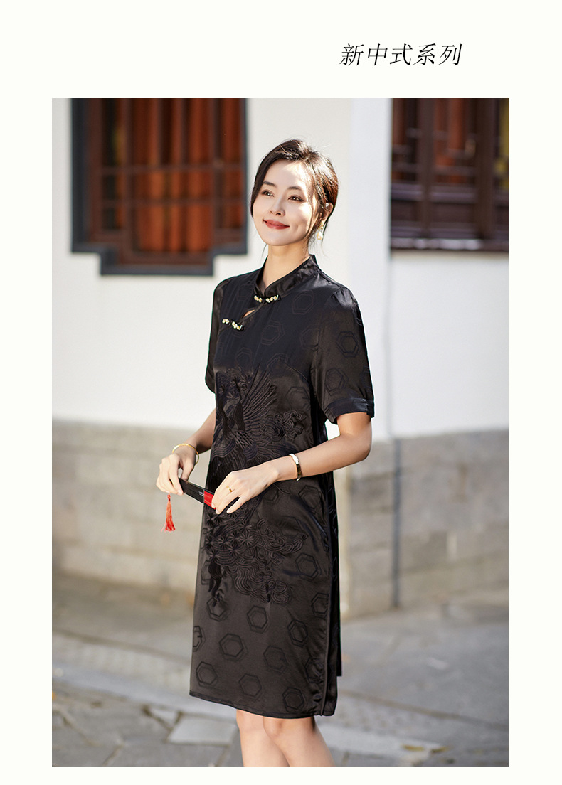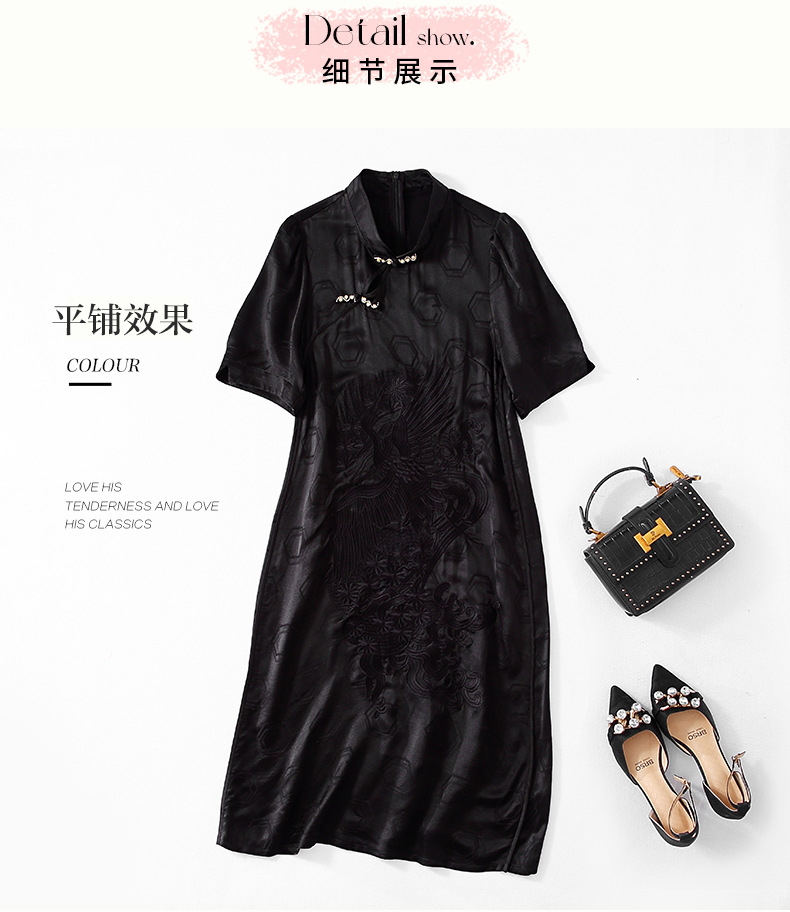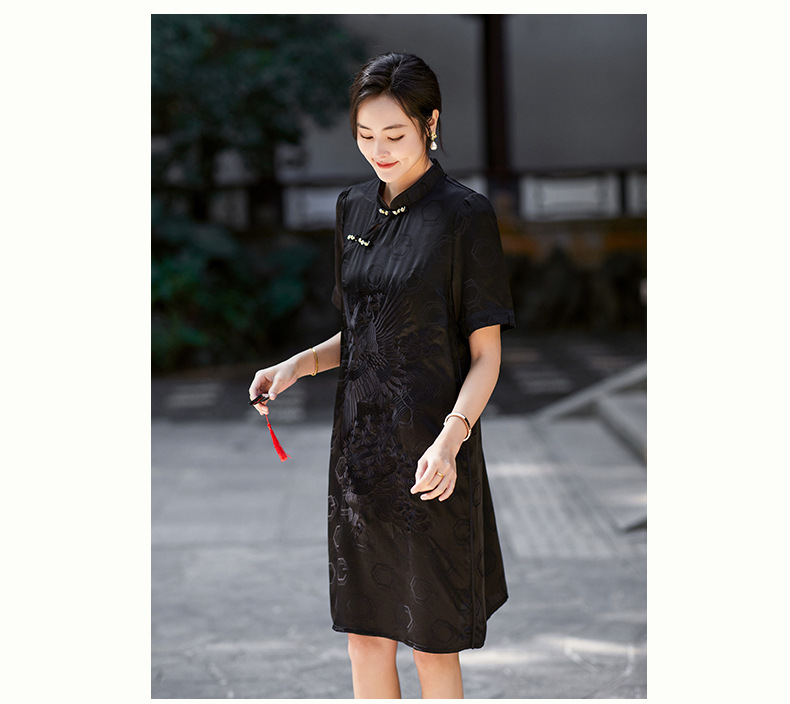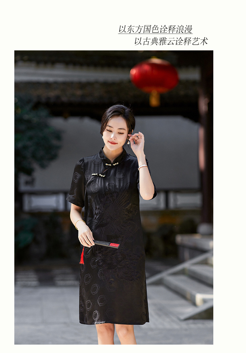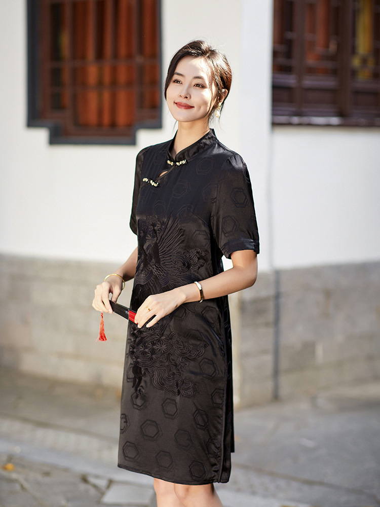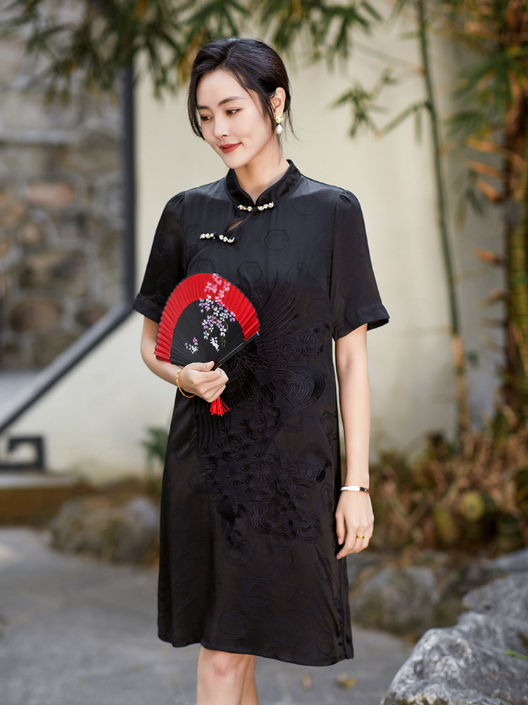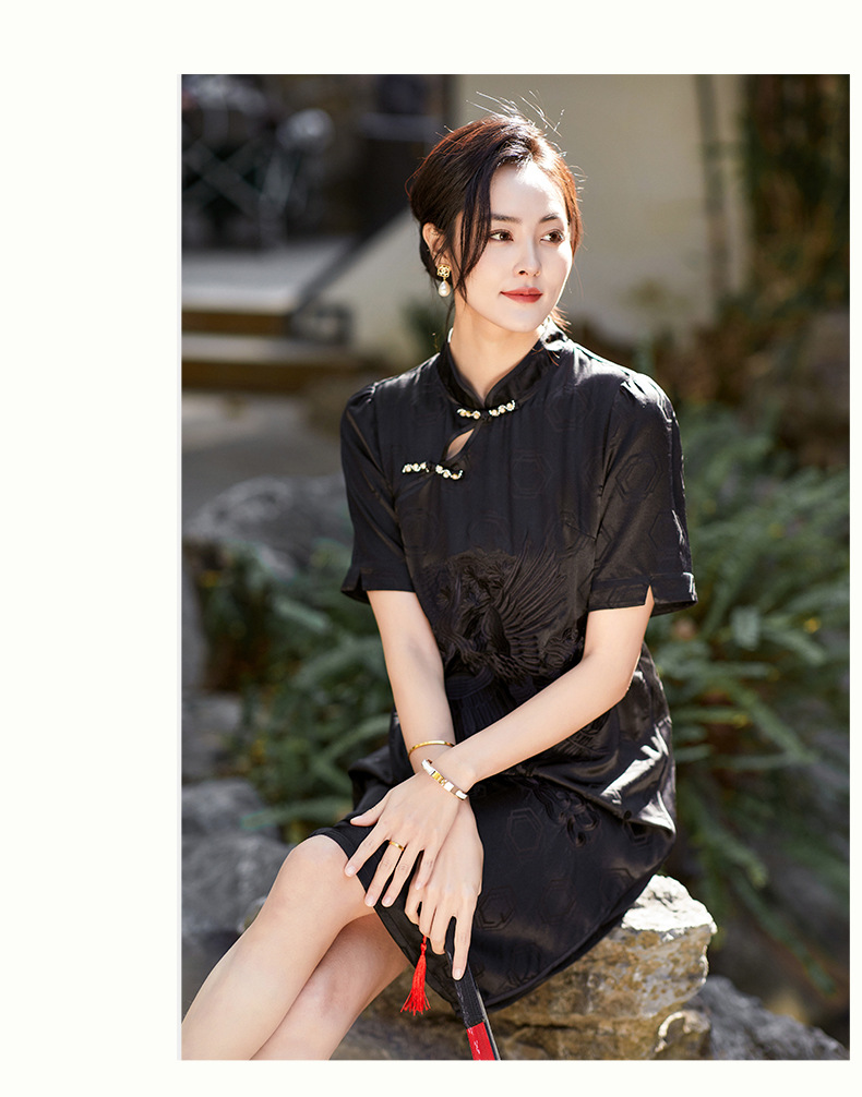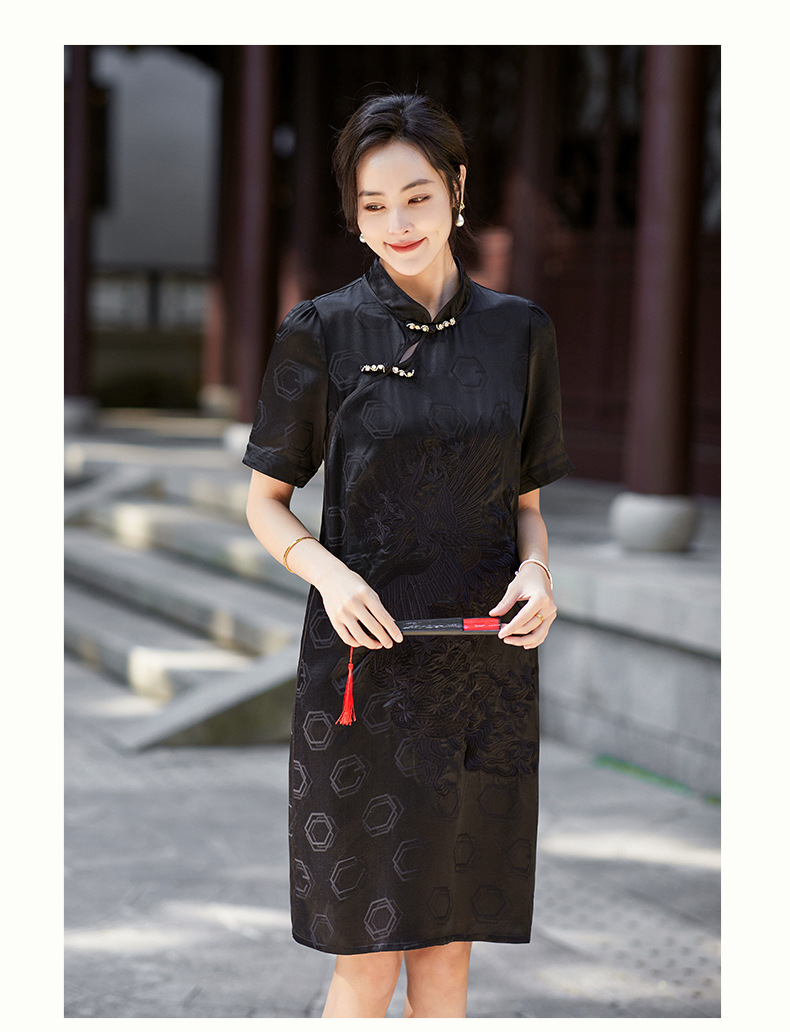 Chiếc áo dài cách tân mang phong cách dân tộc, điểm nhấn là họa tiết chim phượng được thêu tinh xảo cùng hàng cúc bấm duyên dáng. Chất vải dệt dày dặn, mát mẻ, thích hợp mặc trong mùa hè. Kiểu dáng ôm nhẹ, tay ngắn, giúp tôn lên vẻ đẹp dịu dàng. Sản phẩm phù hợp để mặc trong các dịp gặp mặt, chụp ảnh. Có thể giặt tay nhẹ nhàng và phơi nơi râm mát để giữ form áo và màu sắc lâu bền. | Tên sản phẩm: Váy Đầm Liền Thân Nữ Chất Liệu Lụa Tơ Tằm Ngắn Tay Thêu Họa Tiết Hoa Hàng Mùa Hè - Thời Trang Nữ | Mã sản phẩm: K7147 - Giá: 3.560.000đ | Mã nhà sản xuất: SHDA-G06Hình ảnh sản phẩm