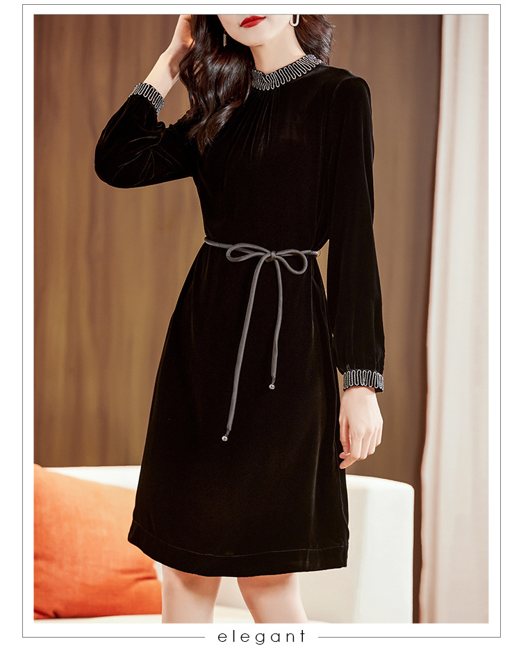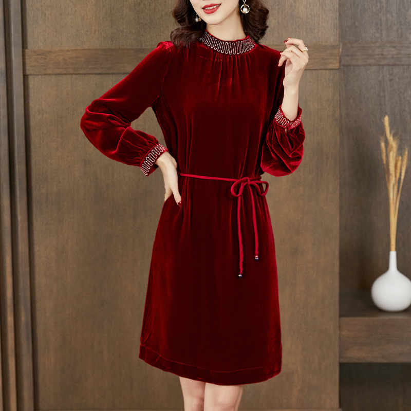 Chiếc đầm dành cho mùa thu với chất liệu lụa tơ tằm mềm mại, cho cảm giác mặc thoải mái. Cổ áo kiểu nửa cao tôn lên vẻ thanh lịch, điểm nhấn là những hạt ngọc tr được đính tinh xảo. Thiết kế thân đầm rộng rãi, eo có dây thắt nhẹ nhàng giúp tôn dáng người mặc. Mẫu đầm trơn màu dễ dàng phối hợp với nhiều loại phụ kiện, phù hợp cho nhiều dịp khác nhau. | Tên sản phẩm: Váy Đầm Liền Thân Nữ Chất Liệu Lụa Tơ Tằm Hàng Mùa Xuân Thu Đông - Thời Trang Nữ | Mã sản phẩm: K7159 - Giá: 2.310.000đ | Mã nhà sản xuất: SHDA-G05Hình ảnh sản phẩm