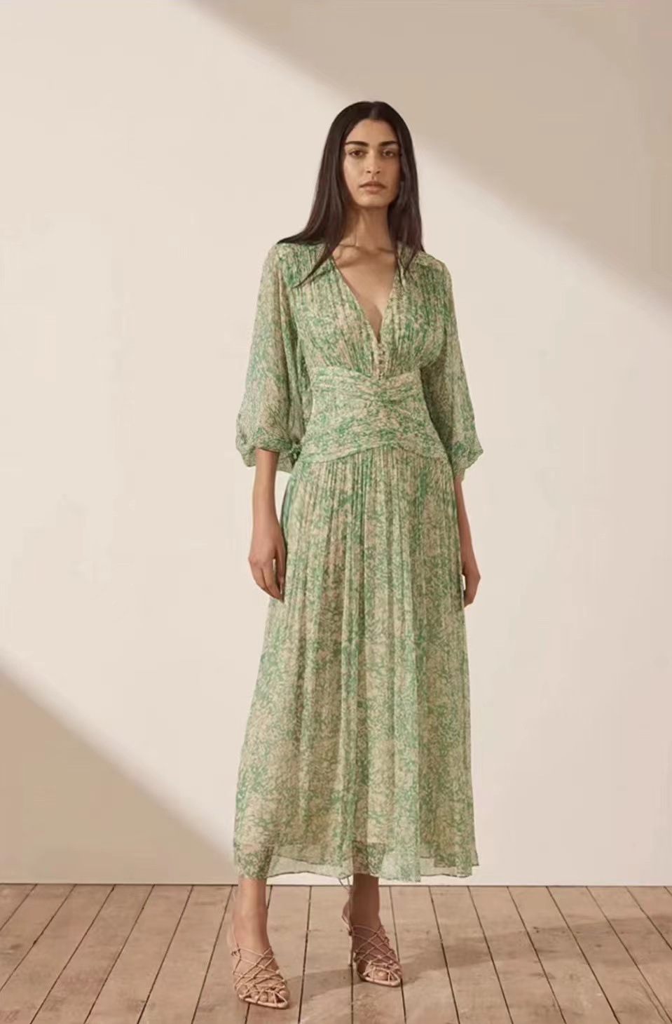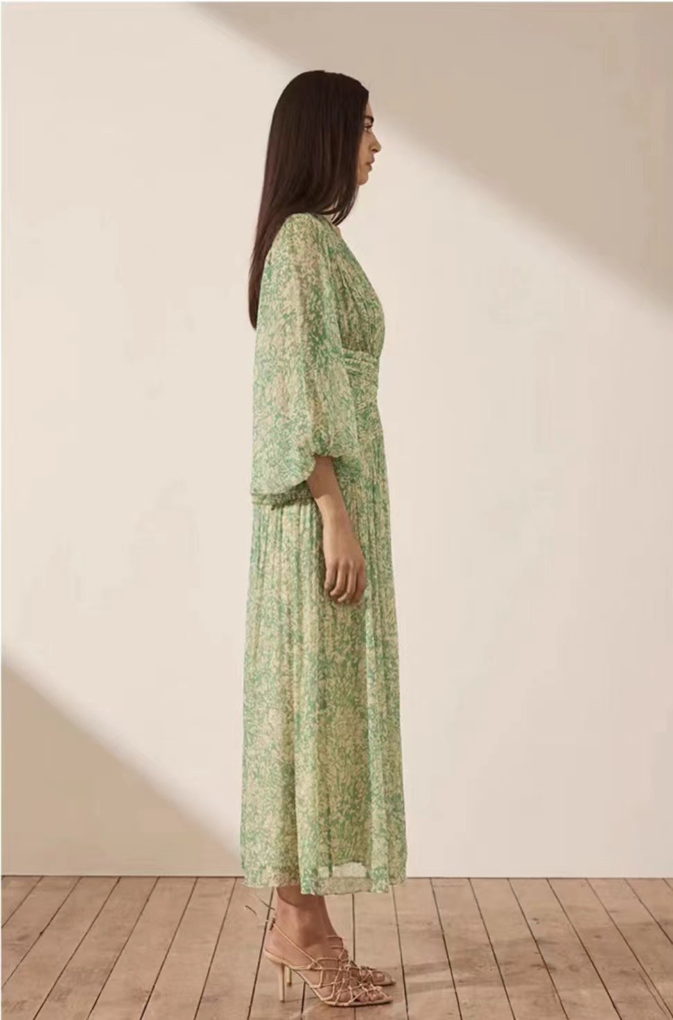 Chiếc đầm dài dành cho nữ với kiểu dáng mới mẻ. Cổ chữ V tôn dáng, kết hợp tay bồng duyên dáng. Chất vải mỏng nhẹ tạo kiểu xếp ly linh hoạt. Họa tiết in hoa nhỏ nhắn, nữ tính. Sản phẩm phù hợp cho nhiều dịp đi chơi, dạo phố. Có thể giặt bằng tay hoặc máy ở chế độ nhẹ, bảo quản nơi khô ráo. | Tên sản phẩm: Váy Đầm Liền Thân Nữ Chất Liệu Vải Voan Tay Phồng Họa Tiết Hoa Cổ Chữ V Hàng Mùa Xuân Thu Đông - Thời Trang Nữ | Mã sản phẩm: K7407 - Giá: 1.590.000đ | Mã nhà sản xuất: GUDG-G04Hình ảnh sản phẩm