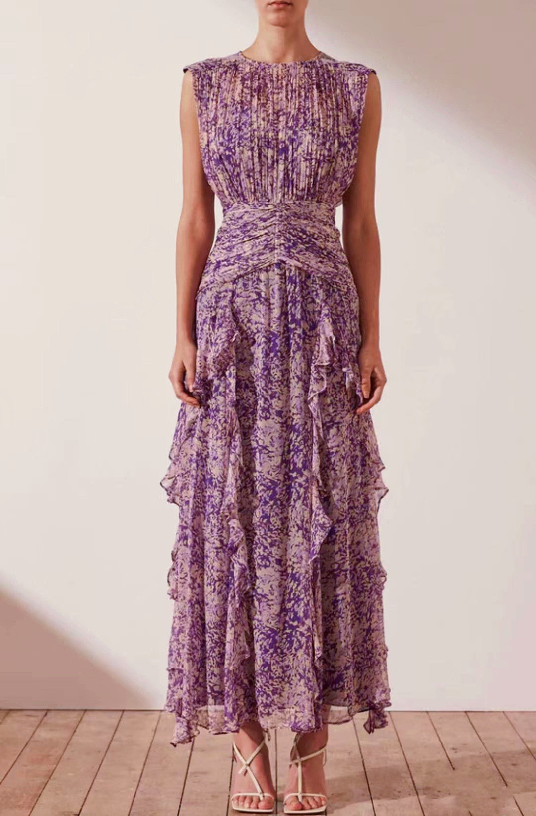 Chiếc đầm dáng dài mới ra mắt, chất liệu voan mỏng nhẹ in họa tiết tinh tế. Thiết kế không tay cùng cổ tròn ôm vừa vặn, điểm nhấn là đường eo thắt nơ eo tạo dáng thanh thoát. Phần viền tà áo cách điệu như những cánh sen tung bay nhẹ nhàng. Sản phẩm phù hợp cho những dịp dạo phố hay gặp mặt thân mật. Có thể kết hợp cùng giày bệt và túi xách để tạo phong cách tự nhiên. | Tên sản phẩm: Váy Đầm Liền Thân Nữ Chất Liệu Vải Voan Họa Tiết Hoa Hàng Mùa Xuân Thu Đông - Thời Trang Nữ | Mã sản phẩm: K7416 - Giá: 1.660.000đ | Mã nhà sản xuất: GUDG-G05Hình ảnh sản phẩm