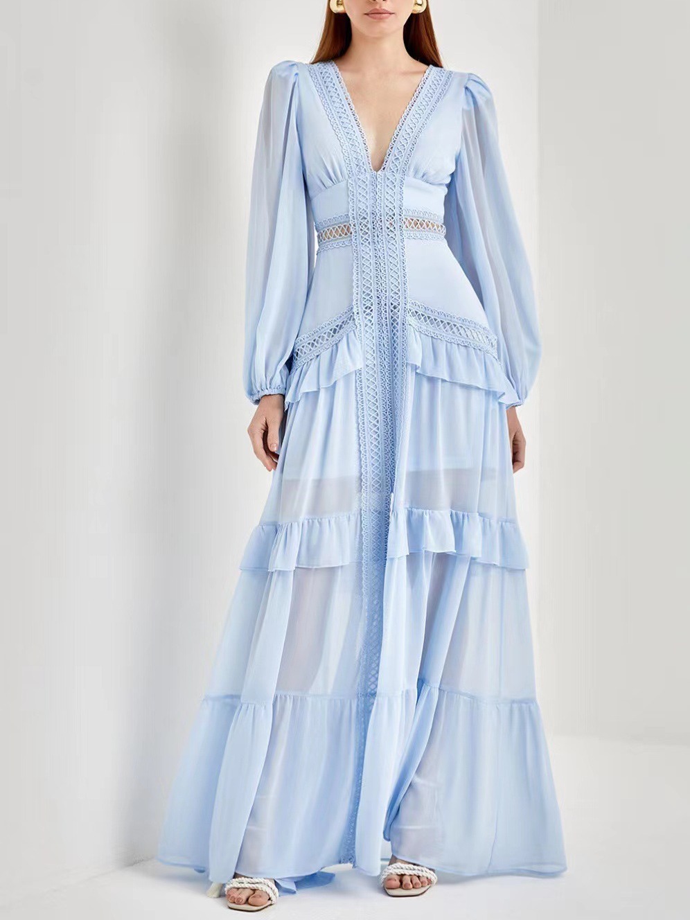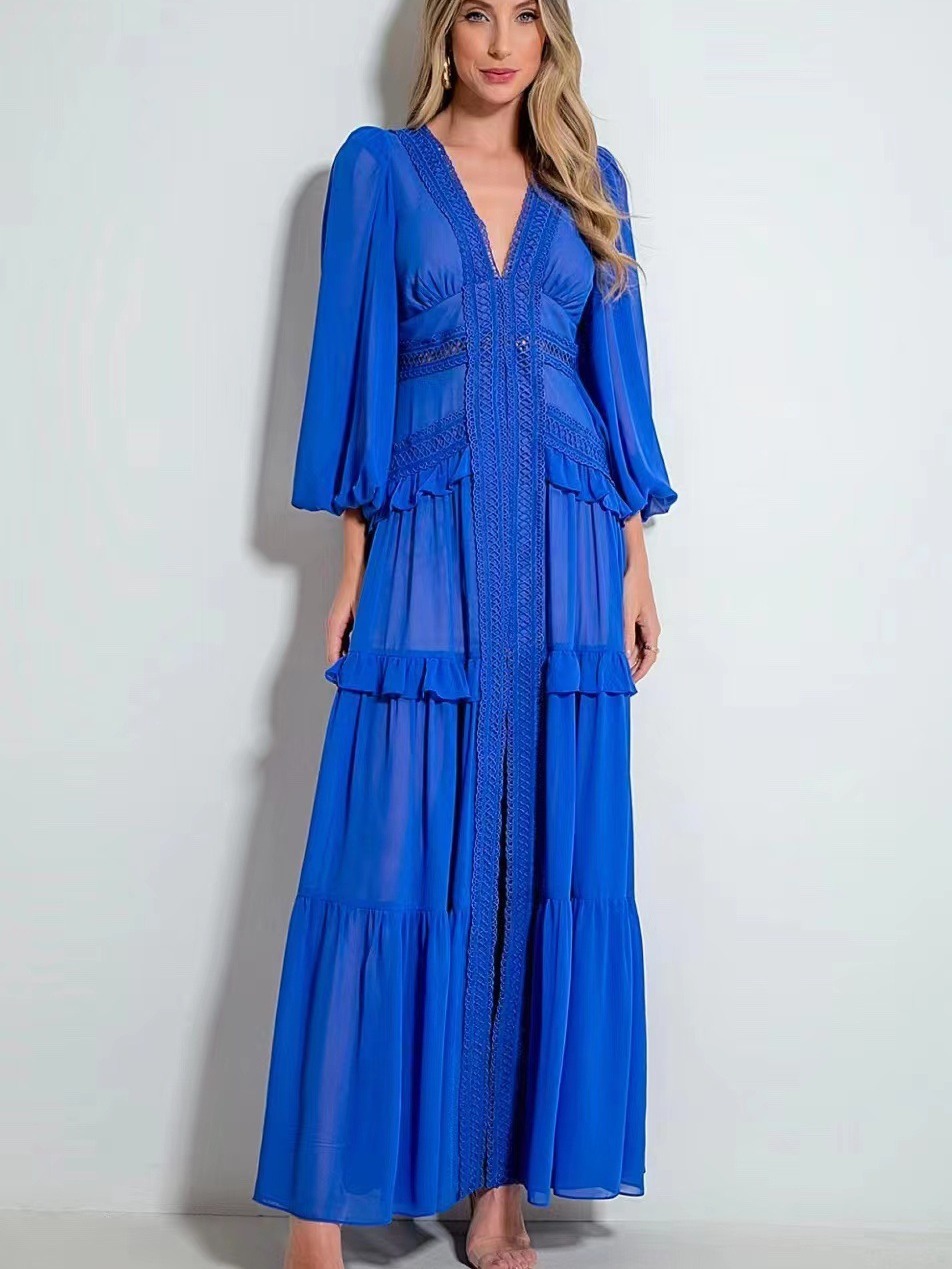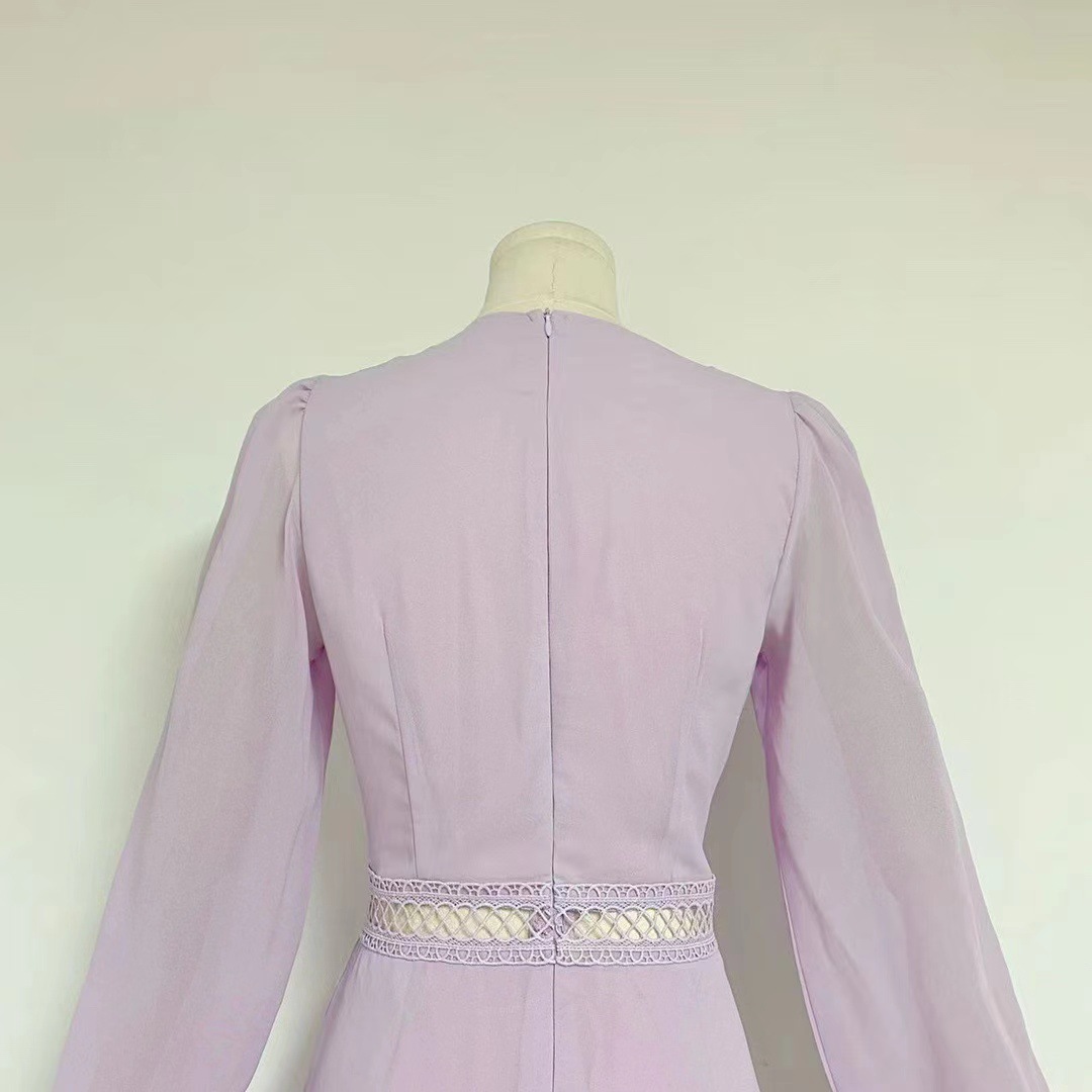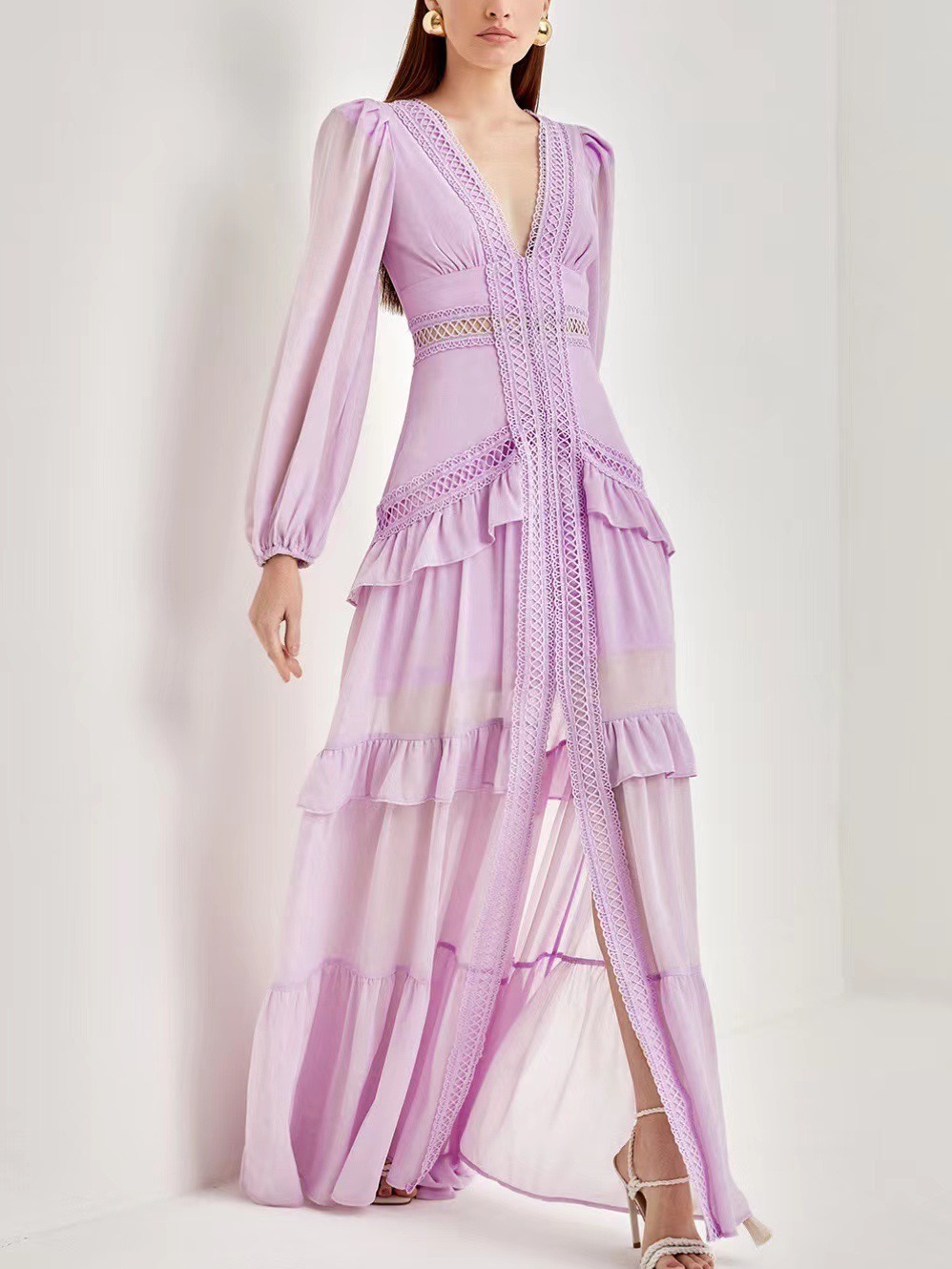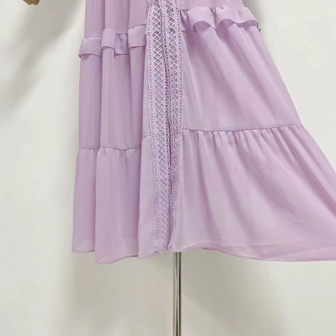 Chiếc đầm dài mang sắc tím dịu dàng, được may từ chất liệu voan mềm mại giúp tôn dáng người mặc. Thiết kế có cổ chữ V, kết hợp đường viền tay và phần chân váy xòe rộng tạo điểm nhấn duyên dáng. Điểm cộng là chi tiết đăng ten nơi ngực và đường xẻ nhẹ ở phần thân dưới, giúp tăng thêm nét nữ tính và thoải mái khi di chuyển. Sản phẩm phù hợp để mặc trong nhiều dịp khác nhau. | Tên sản phẩm: Váy Đầm Liền Thân Dáng Dài Nữ Chất Liệu Vải Voan Cổ Chữ V Hàng Mùa Xuân Thu Đông Phong Cách Âu Mỹ - Thời Trang Nữ | Mã sản phẩm: K7419 - Giá: 1.880.000đ | Mã nhà sản xuất: GUDG-G05Hình ảnh sản phẩm