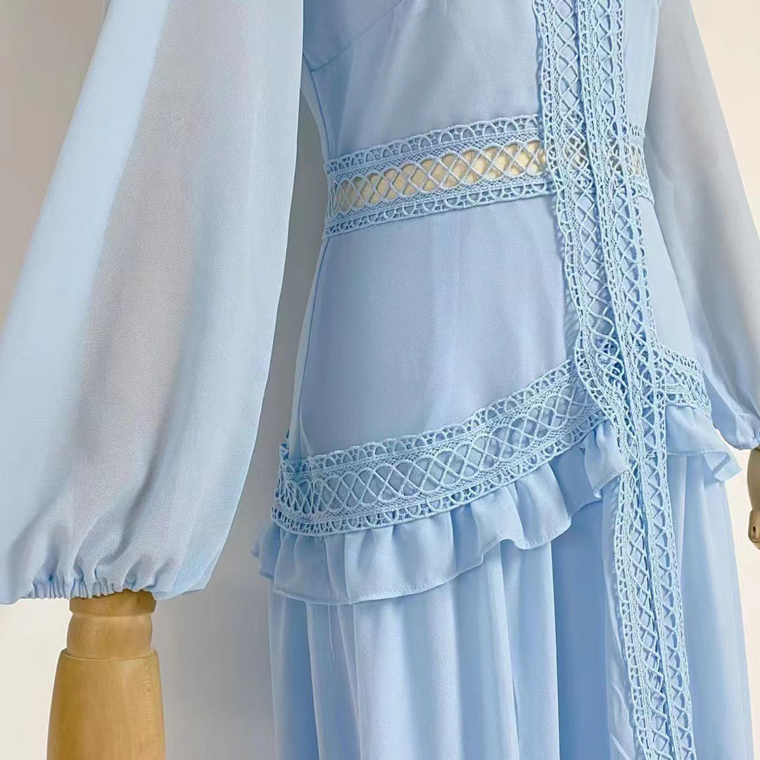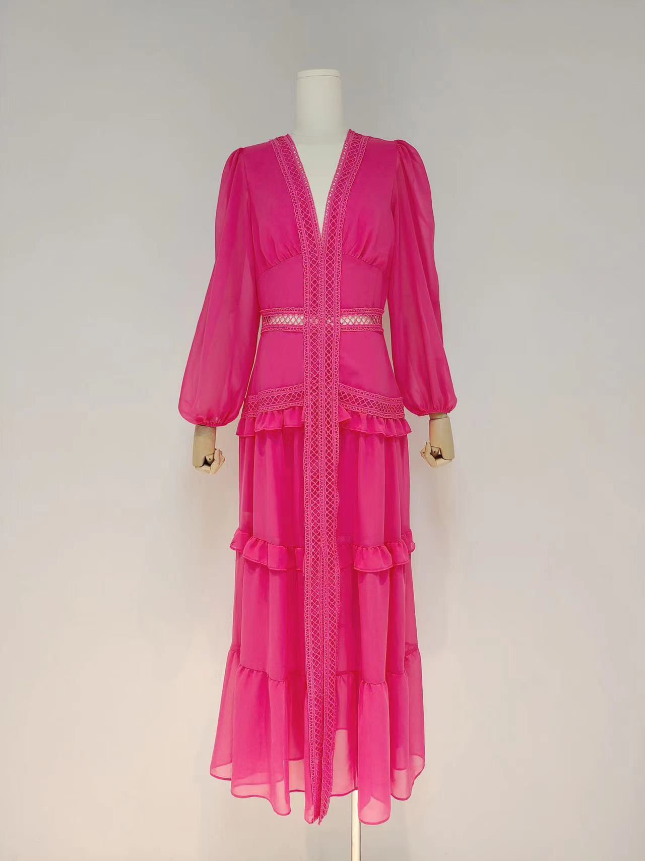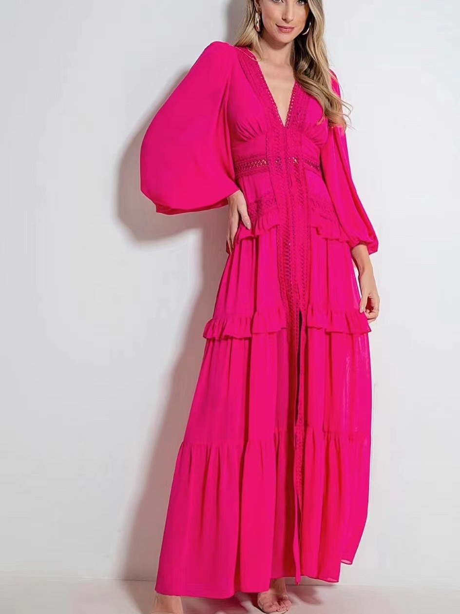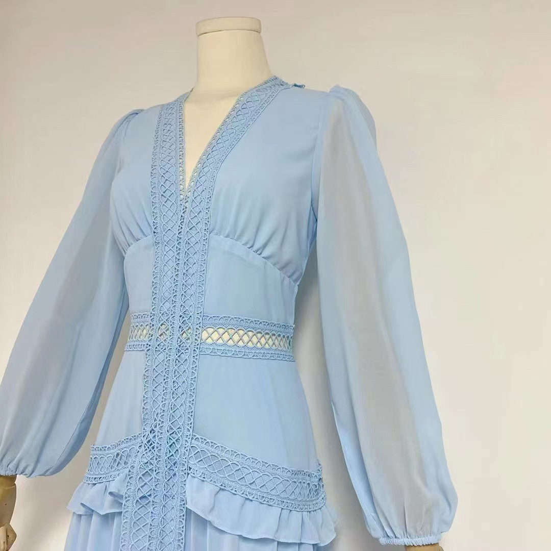 Chiếc đầm dài mang sắc tím dịu dàng, được may từ chất liệu voan mềm mại giúp tôn dáng người mặc. Thiết kế có cổ chữ V, kết hợp đường viền tay và phần chân váy xòe rộng tạo điểm nhấn duyên dáng. Điểm cộng là chi tiết đăng ten nơi ngực và đường xẻ nhẹ ở phần thân dưới, giúp tăng thêm nét nữ tính và thoải mái khi di chuyển. Sản phẩm phù hợp để mặc trong nhiều dịp khác nhau. | Tên sản phẩm: Váy Đầm Liền Thân Dáng Dài Nữ Chất Liệu Vải Voan Cổ Chữ V Hàng Mùa Xuân Thu Đông Phong Cách Âu Mỹ - Thời Trang Nữ | Mã sản phẩm: K7419 - Giá: 1.880.000đ | Mã nhà sản xuất: GUDG-G05Hình ảnh sản phẩm