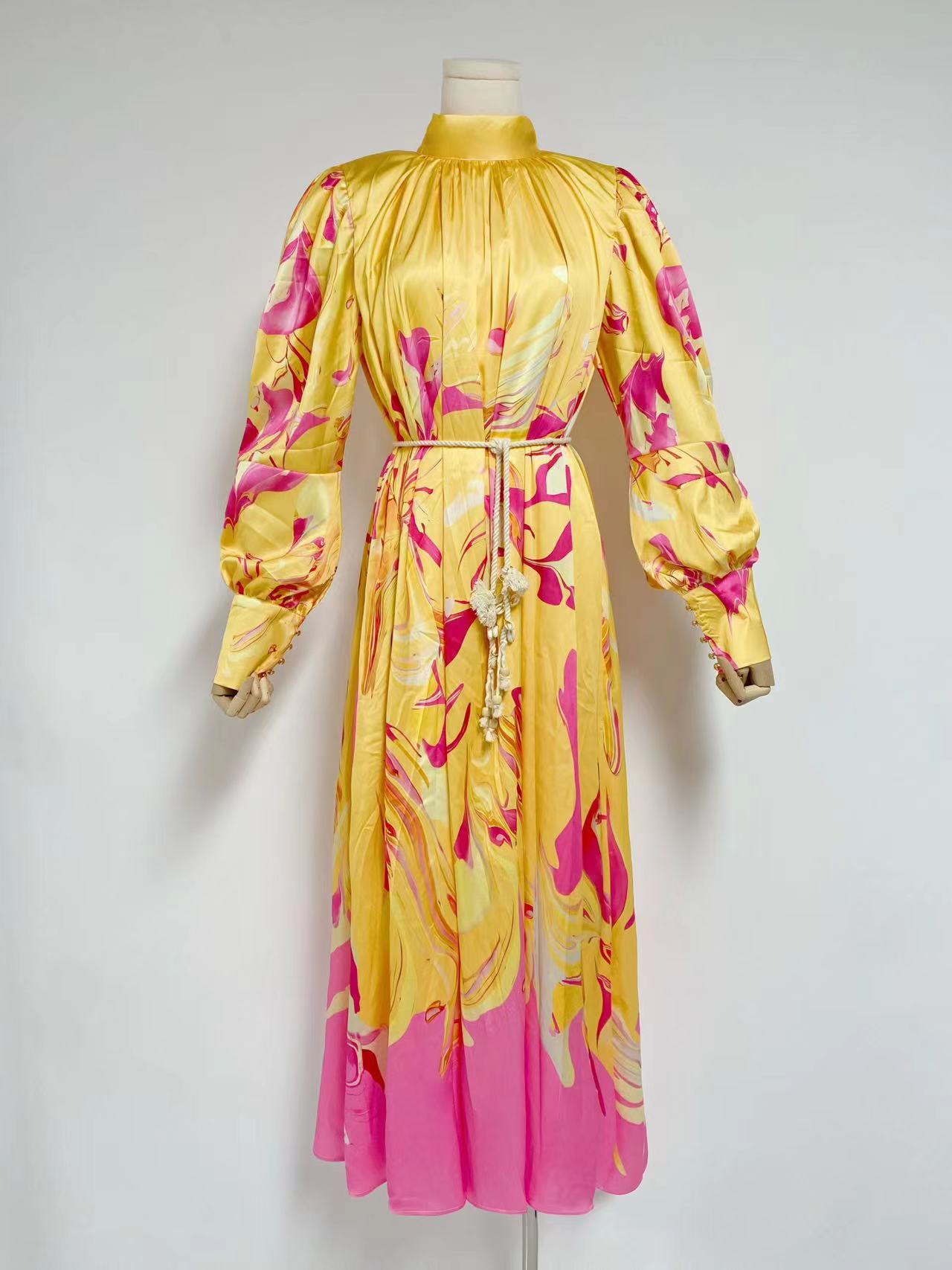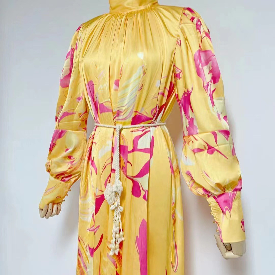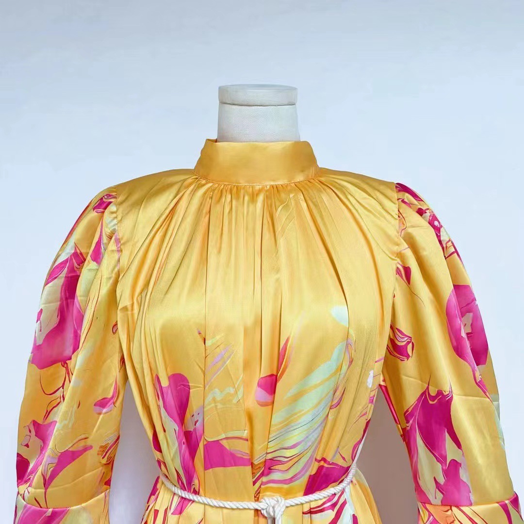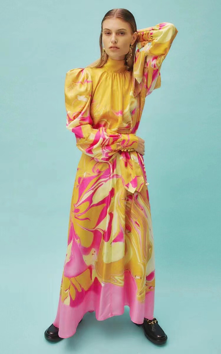 Chiếc đầm dáng dài cho nàng thêm phần duyên dáng với kiểu tay bồng và cổ đứng thanh lịch. Họa tiết in mang phong cách hoài cổ, kết hợp cùng dây thắt lưng tôn lên vòng eo thon gọn. Chất vải mềm mại giúp người mặc cảm thấy dễ chịu. Sản phẩm phù hợp cho những ngày thu mát mẻ, có thể phối cùng giày bệt hoặc giày có qu. Mặc kèm áo khoác mỏng khi tiết trời se lạnh. | Tên sản phẩm: Váy Đầm Liền Thân Nữ Họa Tiết Hoa Hàng Mùa Xuân Thu Đông Phong Cách Âu Mỹ - Thời Trang Nữ | Mã sản phẩm: K7458 - Giá: 1.710.000đ | Mã nhà sản xuất: GUDG-G05Hình ảnh sản phẩm