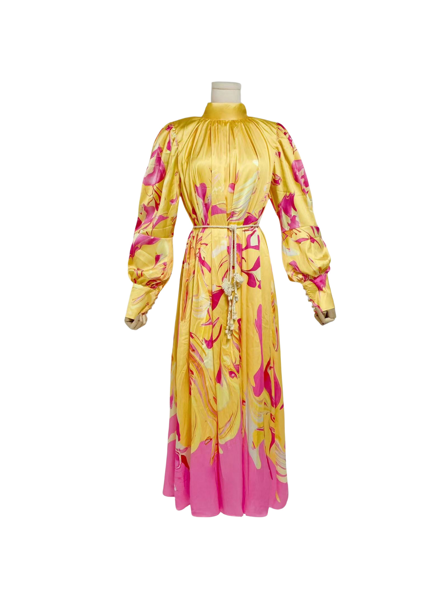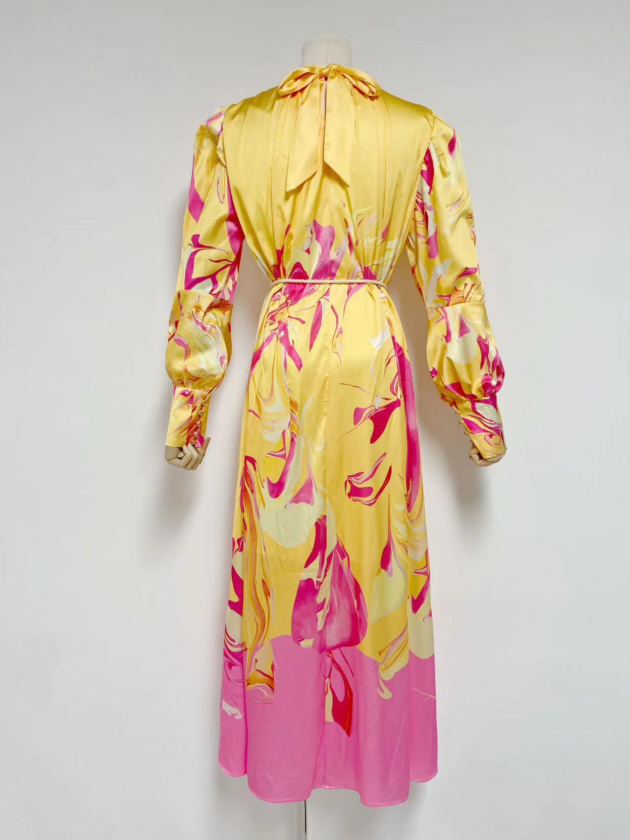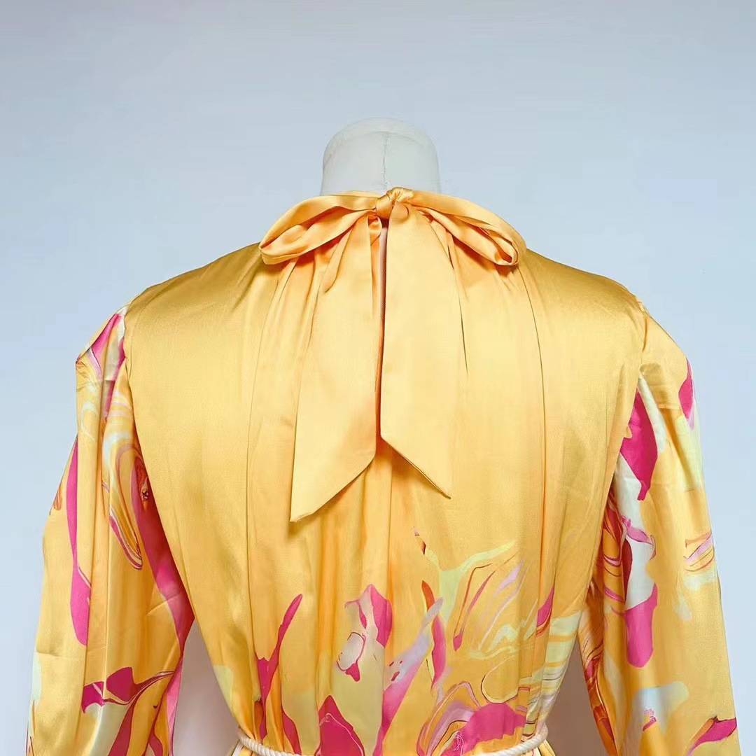Chiếc đầm dáng dài cho nàng thêm phần duyên dáng với kiểu tay bồng và cổ đứng thanh lịch. Họa tiết in mang phong cách hoài cổ, kết hợp cùng dây thắt lưng tôn lên vòng eo thon gọn. Chất vải mềm mại giúp người mặc cảm thấy dễ chịu. Sản phẩm phù hợp cho những ngày thu mát mẻ, có thể phối cùng giày bệt hoặc giày có qu. Mặc kèm áo khoác mỏng khi tiết trời se lạnh. | Tên sản phẩm: Váy Đầm Liền Thân Nữ Họa Tiết Hoa Hàng Mùa Xuân Thu Đông Phong Cách Âu Mỹ - Thời Trang Nữ | Mã sản phẩm: K7458 - Giá: 1.710.000đ | Mã nhà sản xuất: GUDG-G05Hình ảnh sản phẩm