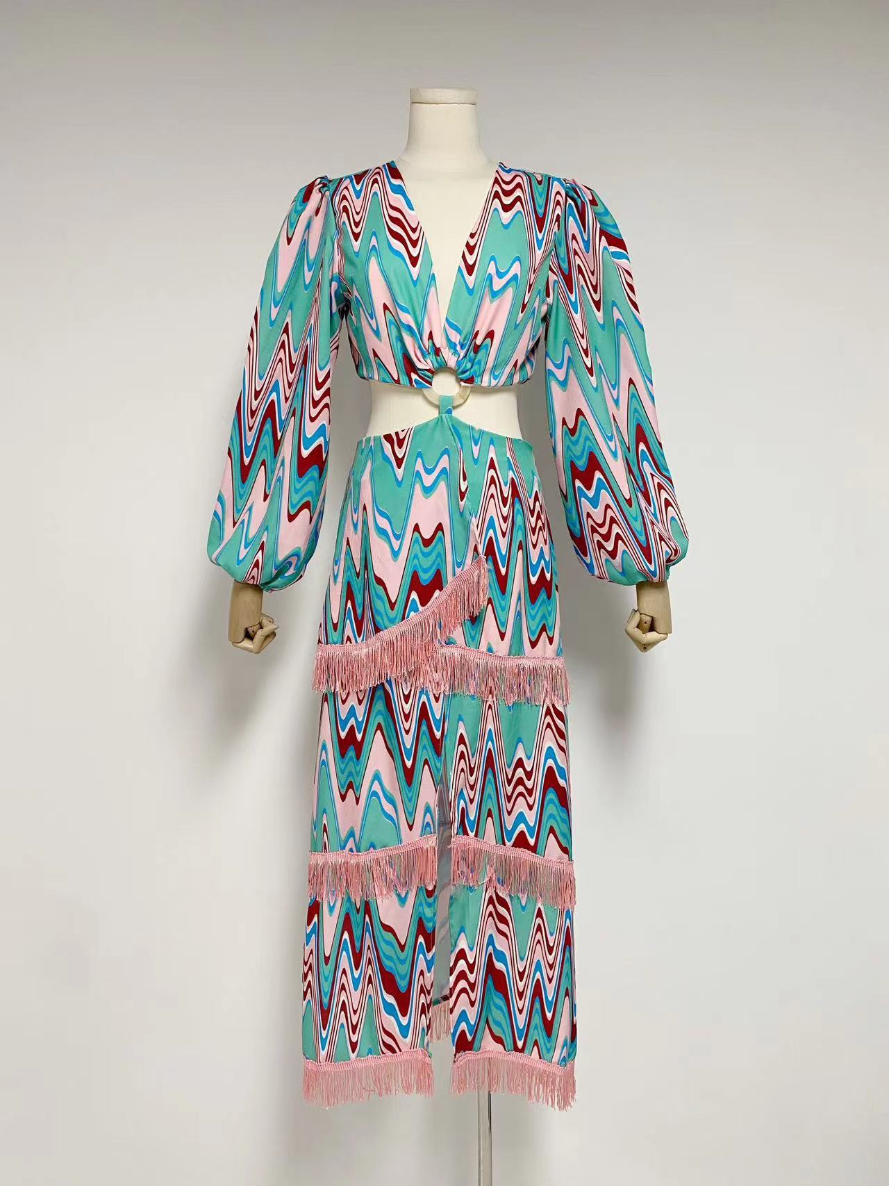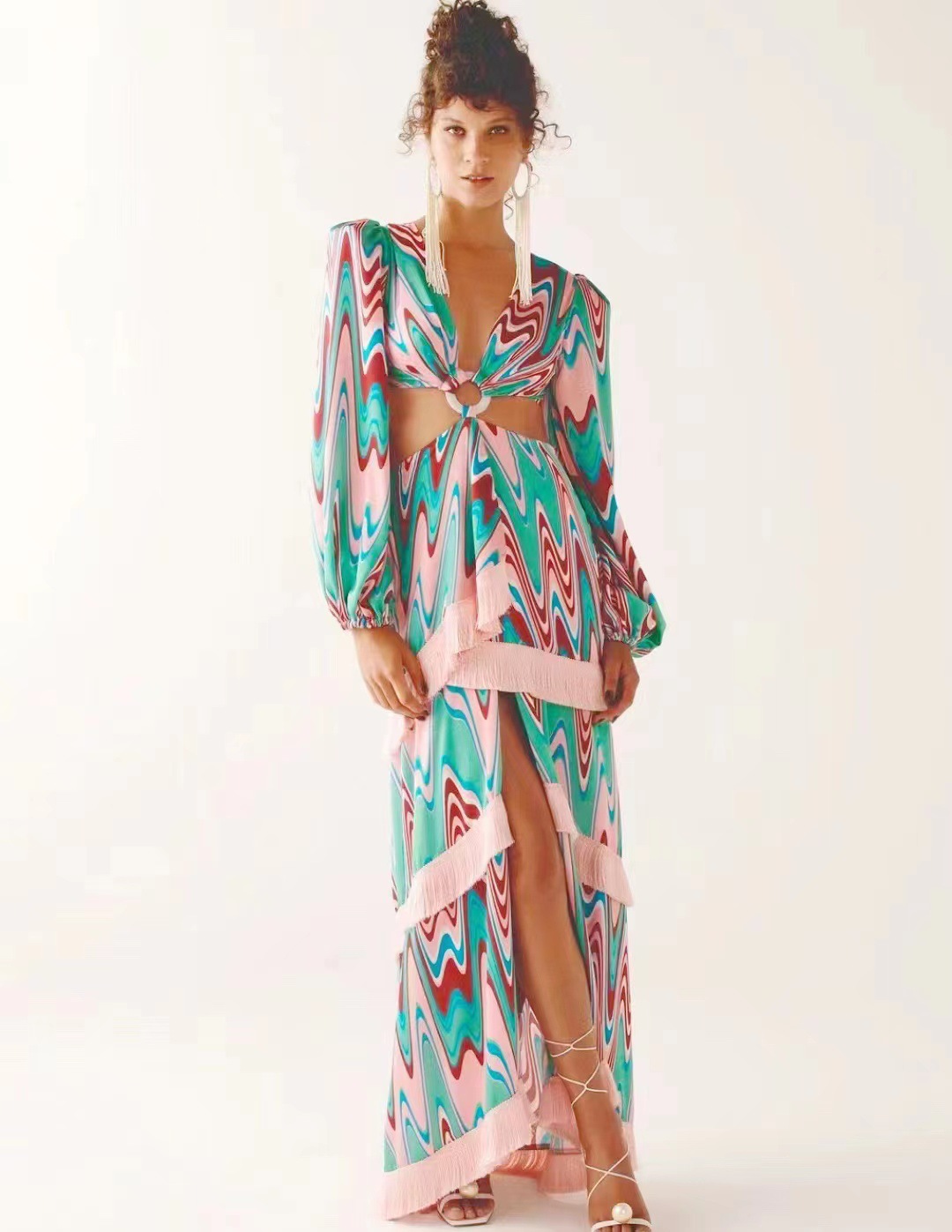 Đầm dáng dài cho mùa thu với thiết kế ôm tôn dáng. Cổ chữ V nhẹ nhàng kết hợp cùng phần tay bồng nhẹ ở cổ tay tạo điểm nhấn. Điểm đặc biệt là phần eo được cách điệu khéo léo, phối cùng diềm trang trí rủ mềm mại dọc thân áo. Chất vải mềm, mặc thoải mái cho những buổi gặp mặt hoặc dạo phố. Phù hợp khi kết hợp cùng giày cao gót hoặc bệt. | Tên sản phẩm: Váy Đầm Liền Thân Nữ Cổ Chữ V Hàng Mùa Xuân Thu Đông Phong Cách Âu Mỹ - Thời Trang Nữ | Mã sản phẩm: K7469 - Giá: 2.000.000đ | Mã nhà sản xuất: GUDG-G05Hình ảnh sản phẩm