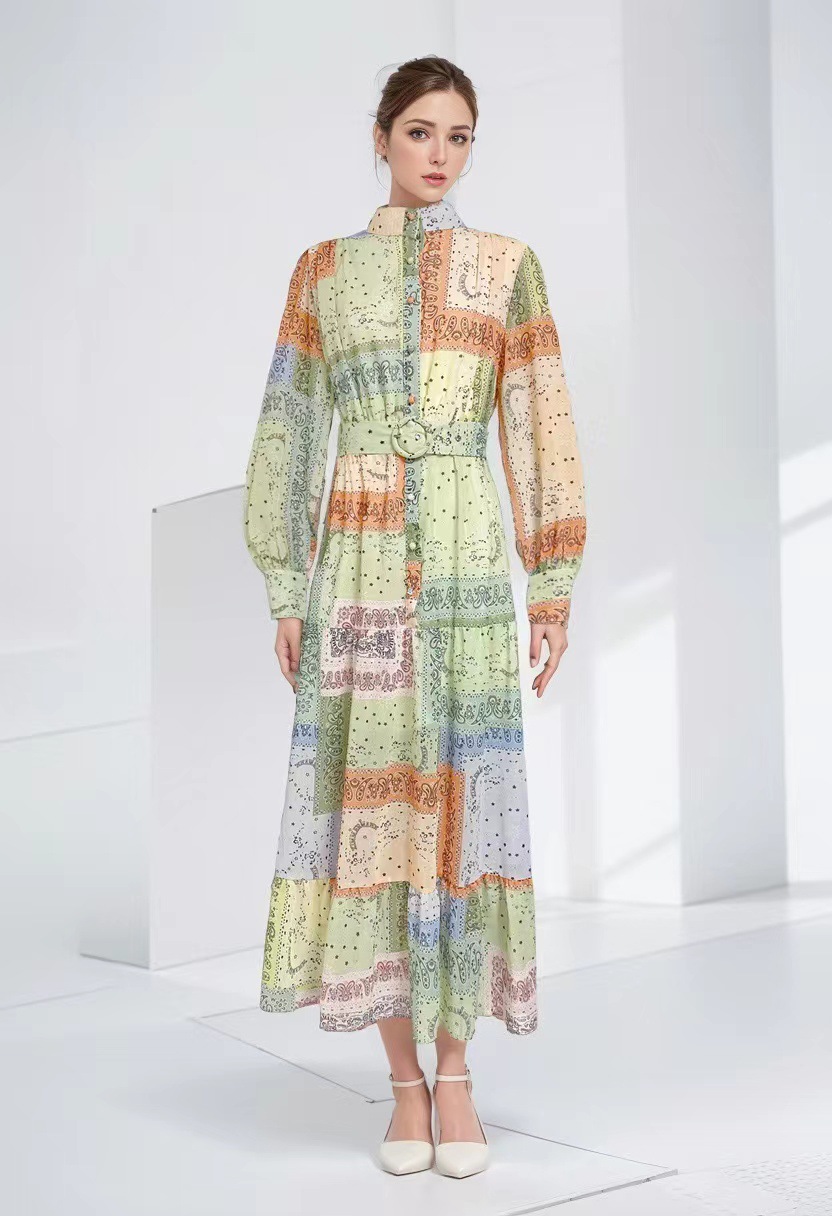 Chiếc đầm dáng dài mới ra mắt, điểm nhấn là phần cổ dựng thanh lịch cùng hàng cúc đơn giản. Thiết kế kết hợp các mảng màu tinh tế, eo được viền thắt nơ tạo dáng người đồng hồ cát. Tay bồng phong cách đèn lồng cách điệu cùng chi tiết xuyên thấu nhẹ nhàng trên chất vải. Mẫu đầm dễ mặc, phù hợp cho nhiều dịp đi chơi hoặc gặp mặt bạn bè. | Tên sản phẩm: Váy Đầm Liền Thân Nữ Hàng Mùa Xuân Thu Đông - Thời Trang Nữ | Mã sản phẩm: K7473 - Giá: 1.620.000đ | Mã nhà sản xuất: GUDG-G05Hình ảnh sản phẩm
