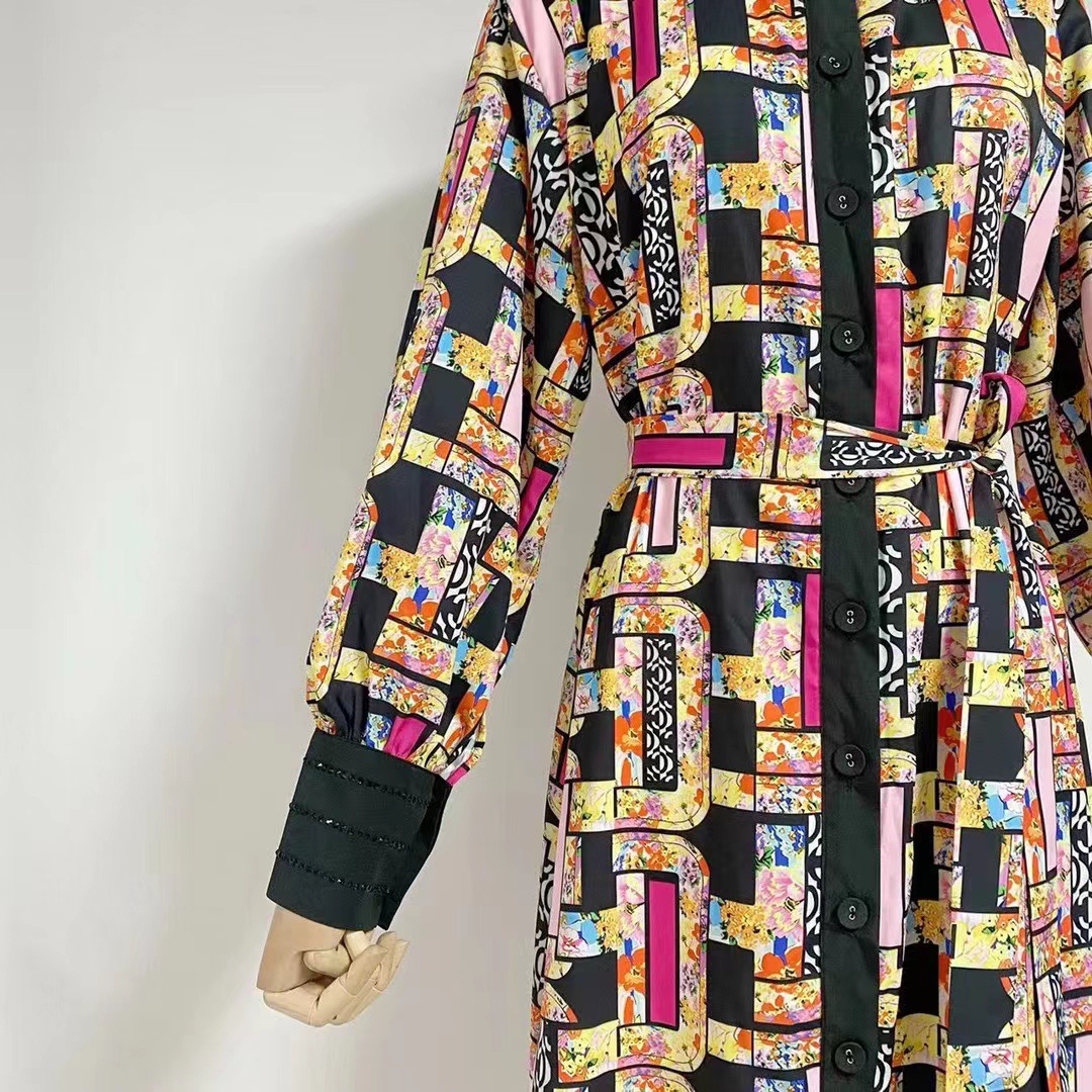Chiếc đầm dáng dài cho mùa thu, điểm nhấn là chiếc thắt lưng đi kèm giúp tôn lên vòng eo. Chất liệu vải mềm mại, thoải mái khi mặc. Trên nền vải là những họa tiết in hình cùng đường nét đính hạt cầu kỳ, tạo nên vẻ đẹp nổi bật và tinh tế. Sản phẩm dễ dàng phối cùng giày cao gót hoặc giày bệt để đi làm, dự tiệc hoặc gặp mặt bạn bè. | Tên sản phẩm: Váy Đầm Liền Thân Nữ Họa Tiết Hoa Hàng Mùa Xuân Thu Đông Phong Cách Âu Mỹ - Thời Trang Nữ | Mã sản phẩm: K7474 - Giá: 1.620.000đ | Mã nhà sản xuất: GUDG-G05Hình ảnh sản phẩm