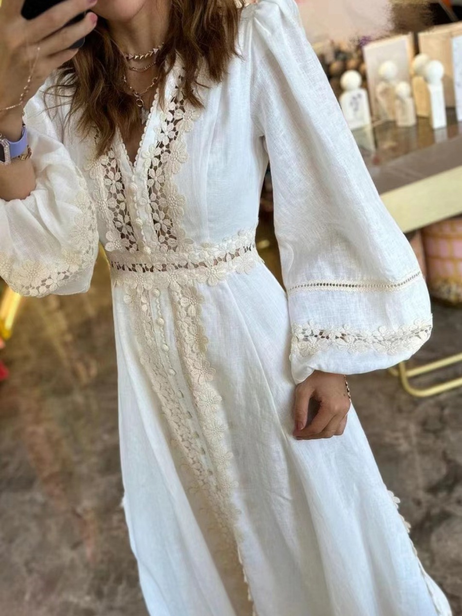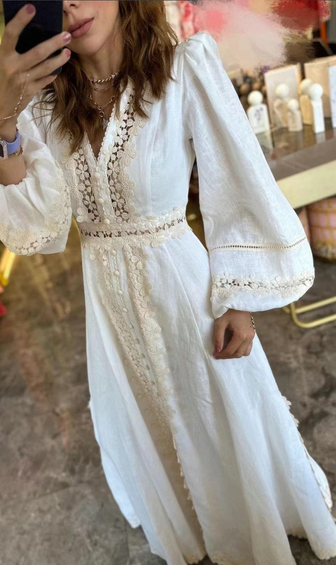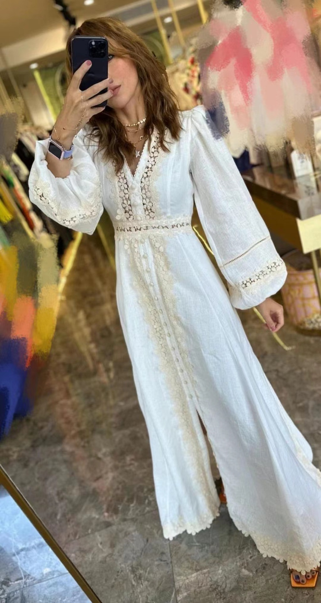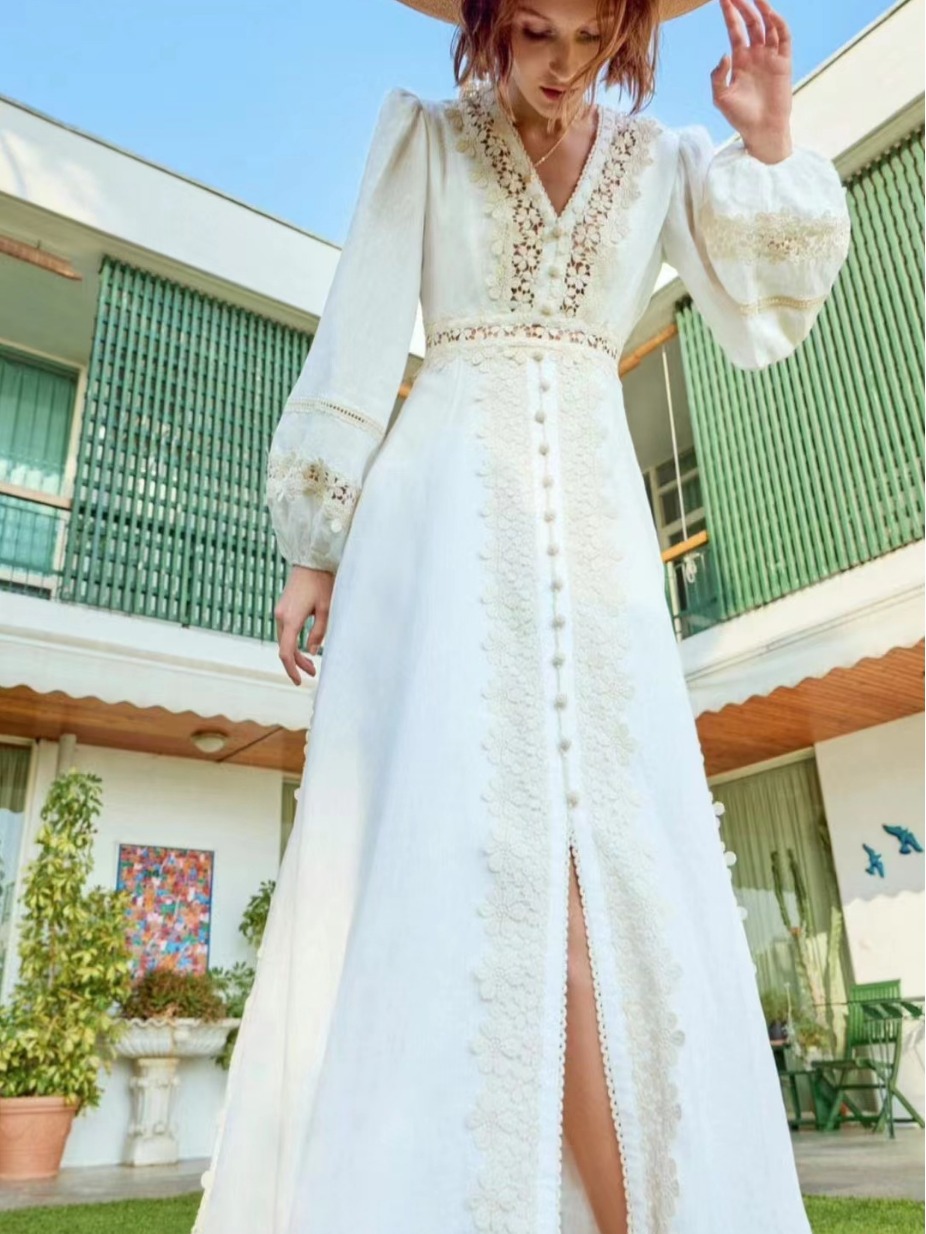 Chiếc đầm dáng dài mang phong cách cổ điển Pháp, điểm nhấn là phần tay bồng nhẹ nhàng và đường viền ren tinh tế. Thiết kế có hàng cúc đơn phía trước, tạo dáng thanh lịch và dễ mặc. Chất vải mềm mại giúp bạn thoải mái trong các hoạt động thường ngày. Sản phẩm phù hợp để đi làm, dạo phố hay dự những buổi gặp mặt. Bạn chỉ cần mặc vào và kết hợp với một đôi giày nhẹ là đã có vẻ ngoài chỉn chu. | Tên sản phẩm: Váy Đầm Liền Thân Nữ Họa Tiết Hoa Hàng Mùa Xuân Thu Đông Phục Cổ Cổ Điển - Thời Trang Nữ | Mã sản phẩm: K7477 - Giá: 1.720.000đ | Mã nhà sản xuất: GUDG-G05Hình ảnh sản phẩm