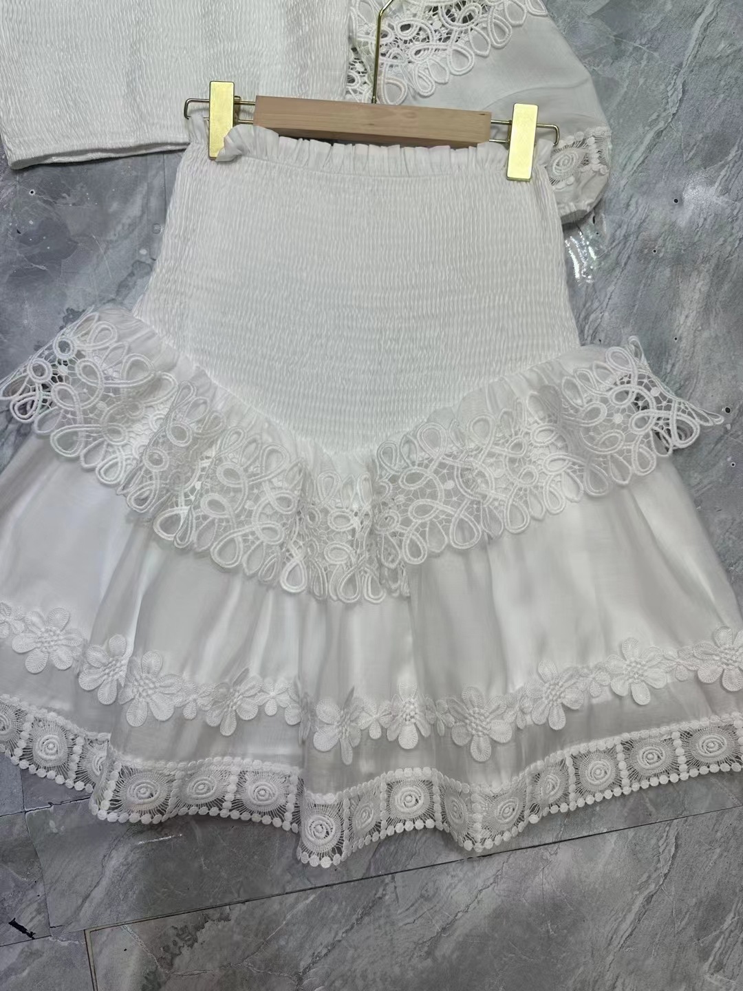Bộ trang phục này có phần áo cổ chữ U cùng tay phồng cách điệu, tạo điểm nhấn nổi bật. Đi kèm là chiếc đầm với phần eo được may thun ôm nhẹ, giúp tôn dáng người mặc. Các chi tiết viền ren được kết hợp tinh tế, mang đến vẻ đẹp dịu dàng và nữ tính. Sản phẩm phù hợp cho những dịp dạo phố hay gặp gỡ bạn bè. Bạn có thể phối cùng giày bệt và túi xách để hoàn thiện bộ trang phục. | Tên sản phẩm: Đồ Bộ Nữ Họa Tiết Hoa Hàng Mùa Hè - Thời Trang Nữ | Mã sản phẩm: K7480 - Giá: 1.620.000đ | Mã nhà sản xuất: GUDG-G05Hình ảnh sản phẩm