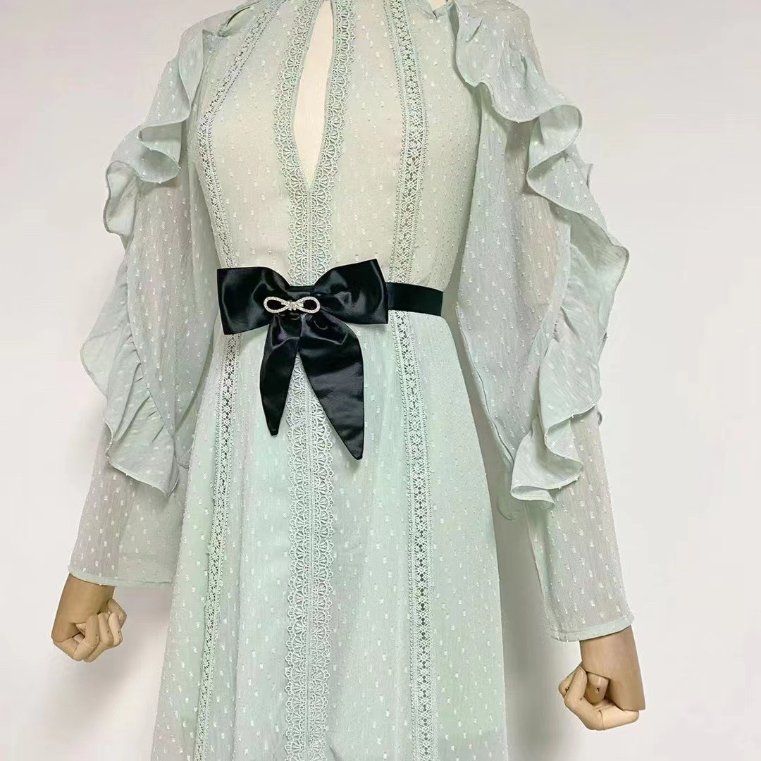 Chiếc đầm mới nhất, mang phong cách lãng mạn với điểm nhấn là thiết kế khoét lỗ tinh tế. Tay dài được kết hợp cùng đường viền ren và dây rút ở eo, giúp tôn lên vóc dáng một cách nhẹ nhàng. Chất vải mềm mại mang lại sự thoải mái cho người mặc. Sản phẩm phù hợp để đi làm, dự tiệc hoặc tạo điểm nhấn trong những dịp gặp mặt. Có thể giặt bằng máy và phơi nơi thoáng mát. | Tên sản phẩm: Váy Đầm Liền Thân Nữ Dài Tay Họa Tiết Hoa Hàng Mùa Xuân Thu Đông - Thời Trang Nữ | Mã sản phẩm: K7484 - Giá: 2.370.000đ | Mã nhà sản xuất: GUDG-G05Hình ảnh sản phẩm