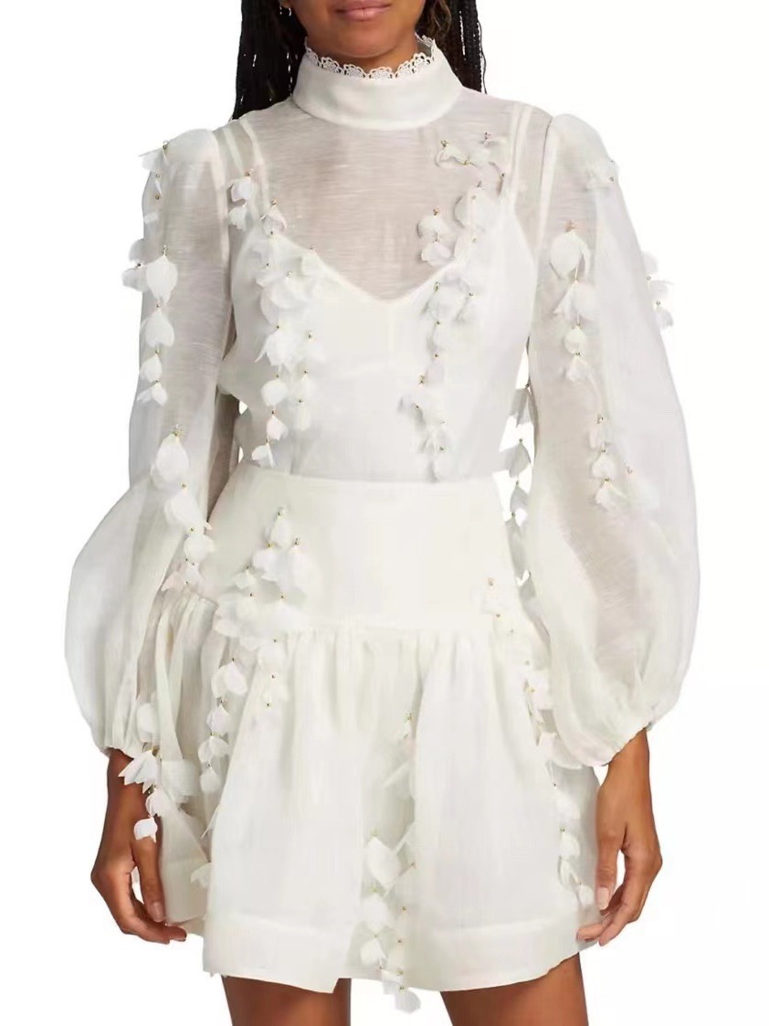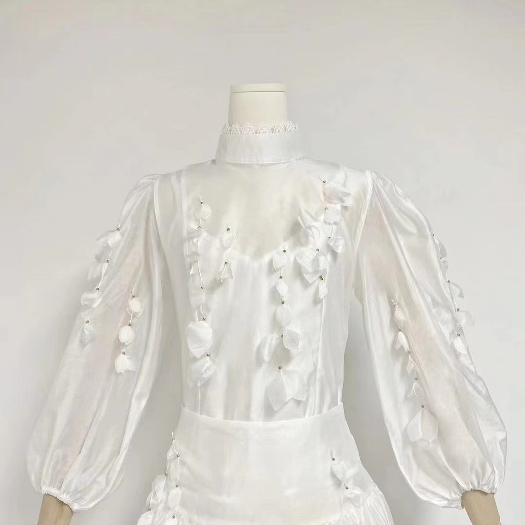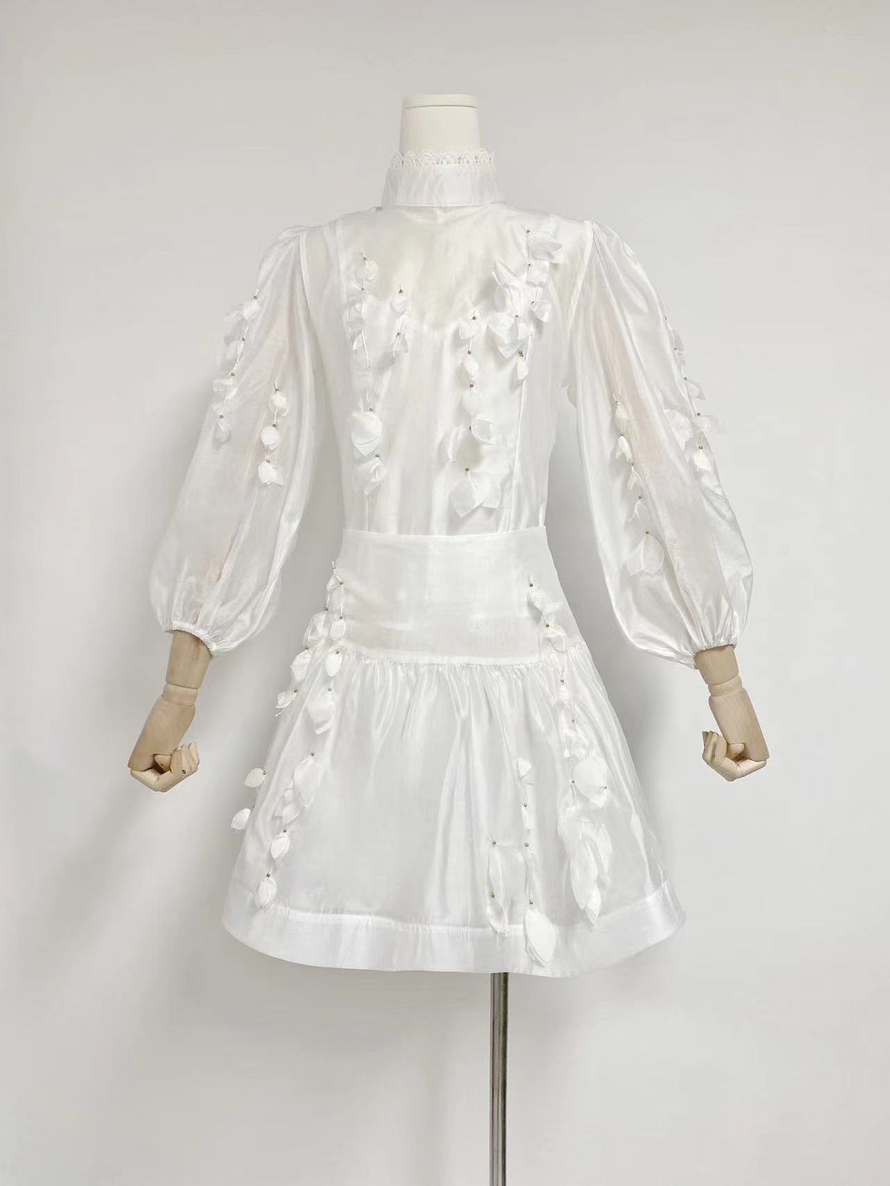 Bộ trang phục này có kiểu dáng cổ đứng, tay phồng nhẹ nhàng như đèn lồng, kết hợp cùng chiếc váy ngắn ôn eo. Trên áo được trang trí tỉ mỉ bằng những bông hoa nhỏ được đính thủ công, tạo điểm nhấn tinh tế. Chất vải mềm mại, thoáng mát, rất phù hợp cho thời tiết mùa xuân và mùa thu. Bạn có thể mặc nguyên bộ để tạo vẻ chỉnh chu, hoặc phối riêng từng món với các trang phục khác. Đây là lựa chọn nhẹ nhàng, nữ tính cho những dịp gặp gỡ hàng ngày. | Tên sản phẩm: Đồ Bộ Nữ Họa Tiết Hoa Hàng Mùa Xuân Thu Đông - Thời Trang Nữ | Mã sản phẩm: K7508 - Giá: 2.190.000đ | Mã nhà sản xuất: GUDG-G05Hình ảnh sản phẩm