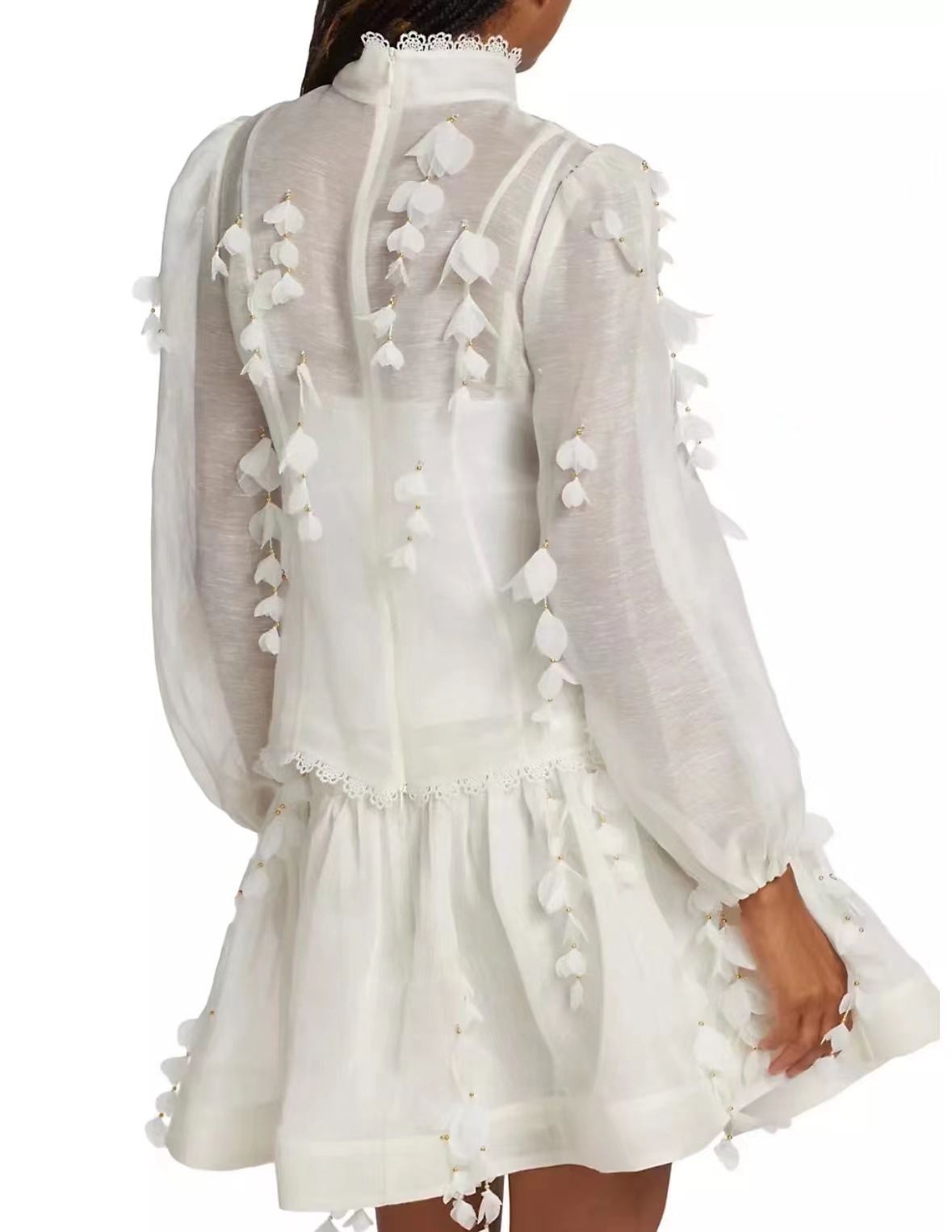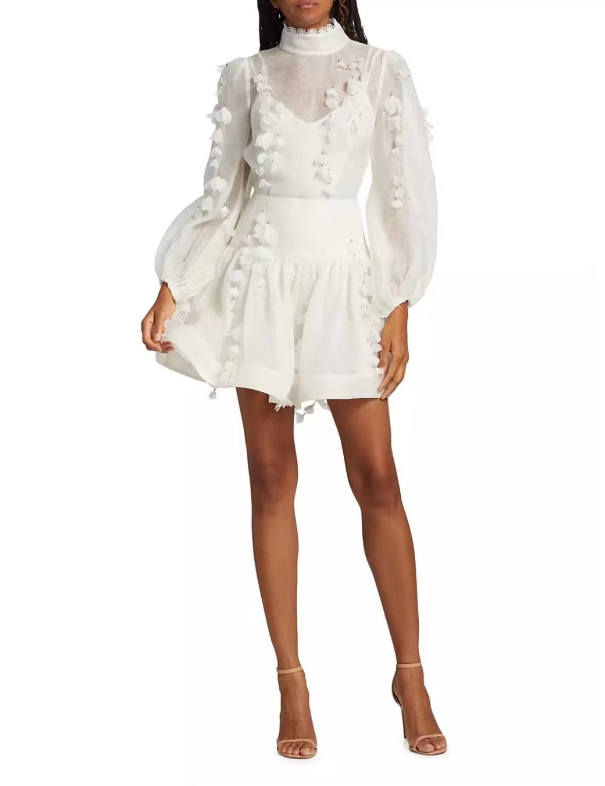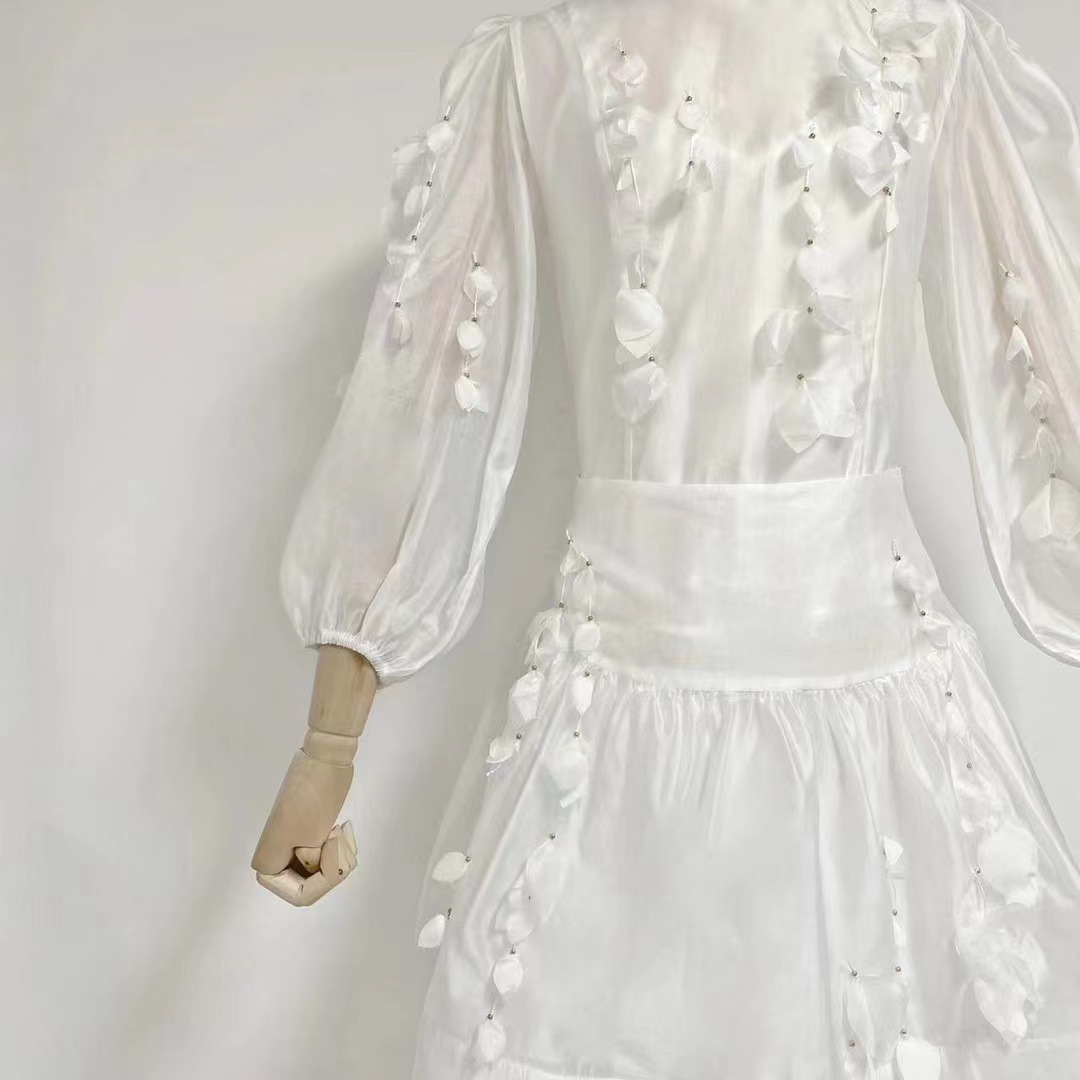 Bộ trang phục này có kiểu dáng cổ đứng, tay phồng nhẹ nhàng như đèn lồng, kết hợp cùng chiếc váy ngắn ôn eo. Trên áo được trang trí tỉ mỉ bằng những bông hoa nhỏ được đính thủ công, tạo điểm nhấn tinh tế. Chất vải mềm mại, thoáng mát, rất phù hợp cho thời tiết mùa xuân và mùa thu. Bạn có thể mặc nguyên bộ để tạo vẻ chỉnh chu, hoặc phối riêng từng món với các trang phục khác. Đây là lựa chọn nhẹ nhàng, nữ tính cho những dịp gặp gỡ hàng ngày. | Tên sản phẩm: Đồ Bộ Nữ Họa Tiết Hoa Hàng Mùa Xuân Thu Đông - Thời Trang Nữ | Mã sản phẩm: K7508 - Giá: 2.190.000đ | Mã nhà sản xuất: GUDG-G05Hình ảnh sản phẩm