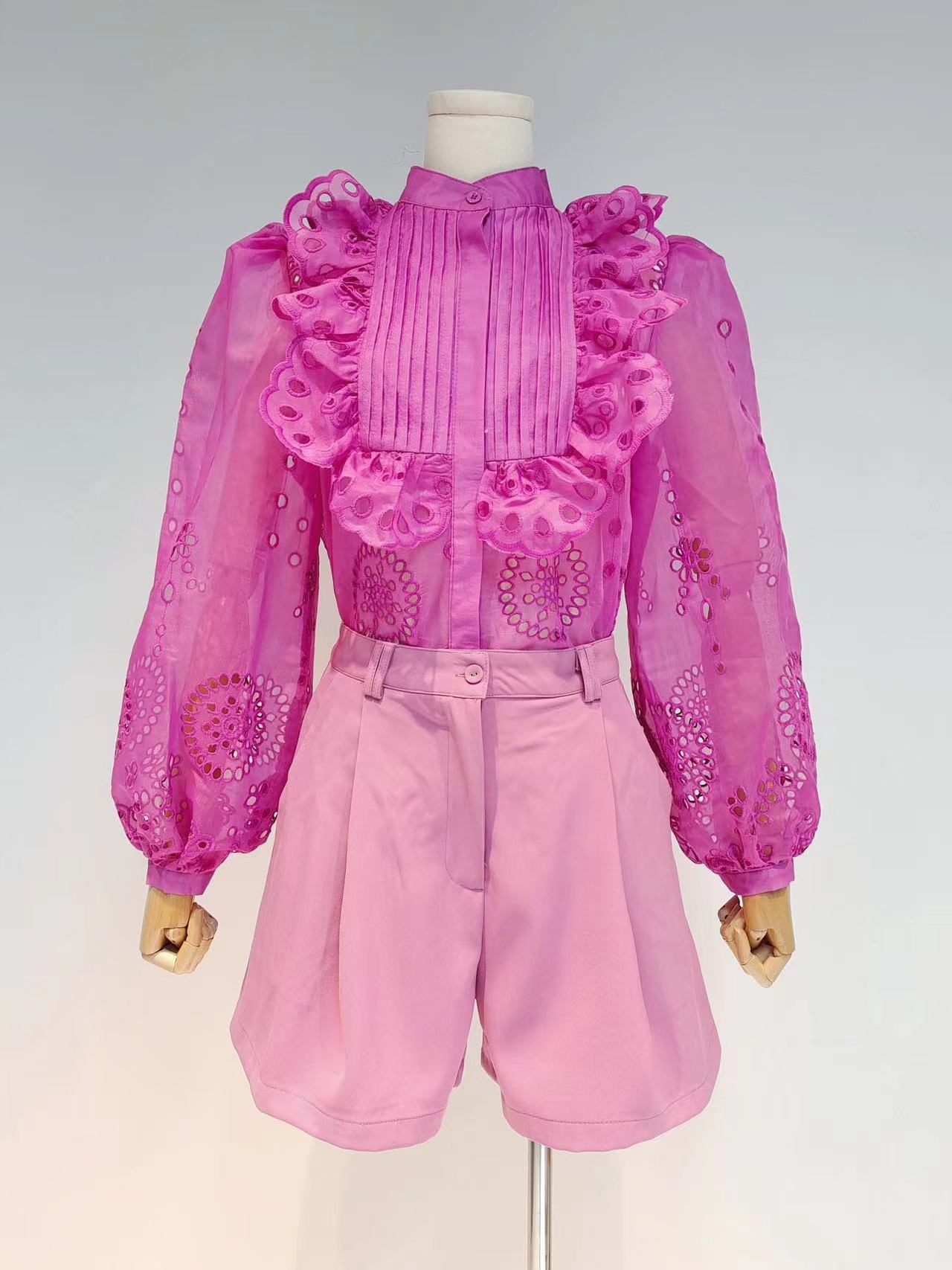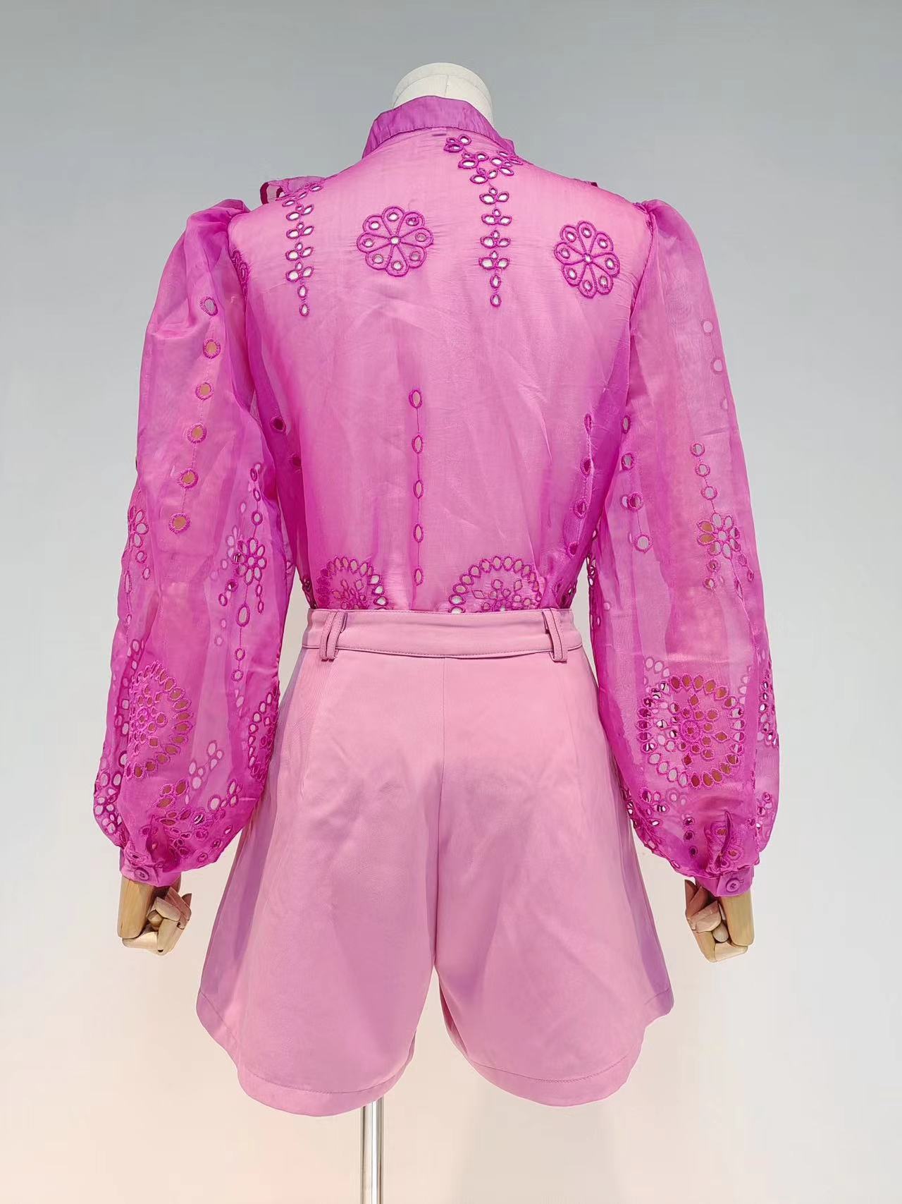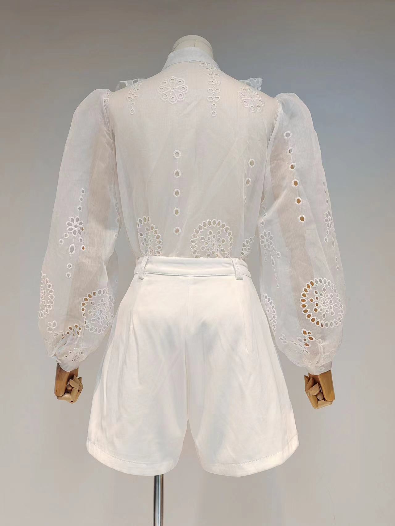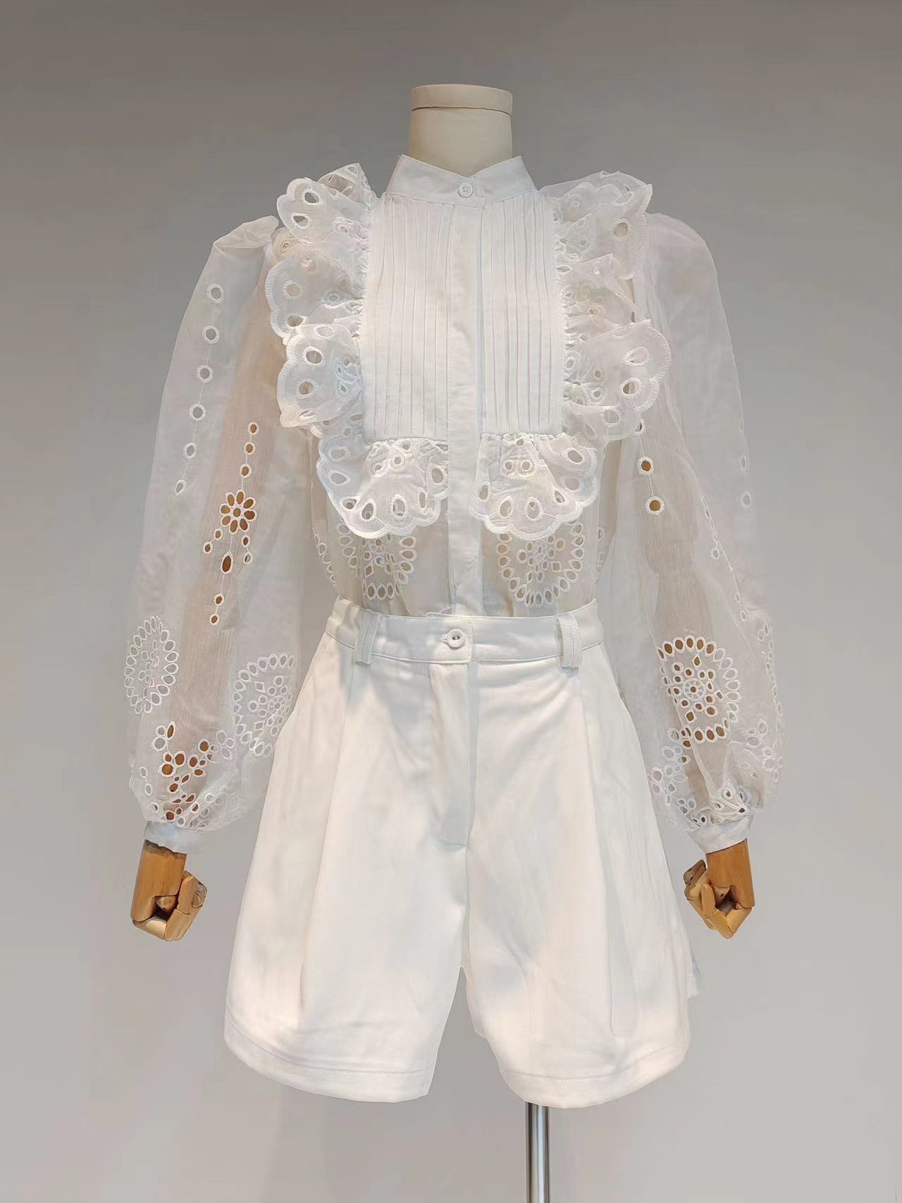 Bộ trang phục thời trang mới cho mùa xuân ấm áp. Áo kiểu dáng cổ đứng, cài cúc đơn phối cùng chi tiết viền lượn sóng mềm mại ở tà và tay áo phồng cách điệu. Kết hợp với quần short có phần eo ôm nhẹ nhàng tạo điểm nhấn. Chất vải mềm nhẹ, thoáng mát, phù hợp cho các hoạt động thường ngày. Dễ dàng phối cùng giày thể thao hoặc giày bệt để tạo nên những bộ trang phục năng động, tiện lợi. | Tên sản phẩm: Đồ Bộ Nữ Hàng Mùa Xuân Thu Đông - Thời Trang Nữ | Mã sản phẩm: K7519 - Giá: 2.190.000đ | Mã nhà sản xuất: GUDG-G05Hình ảnh sản phẩm